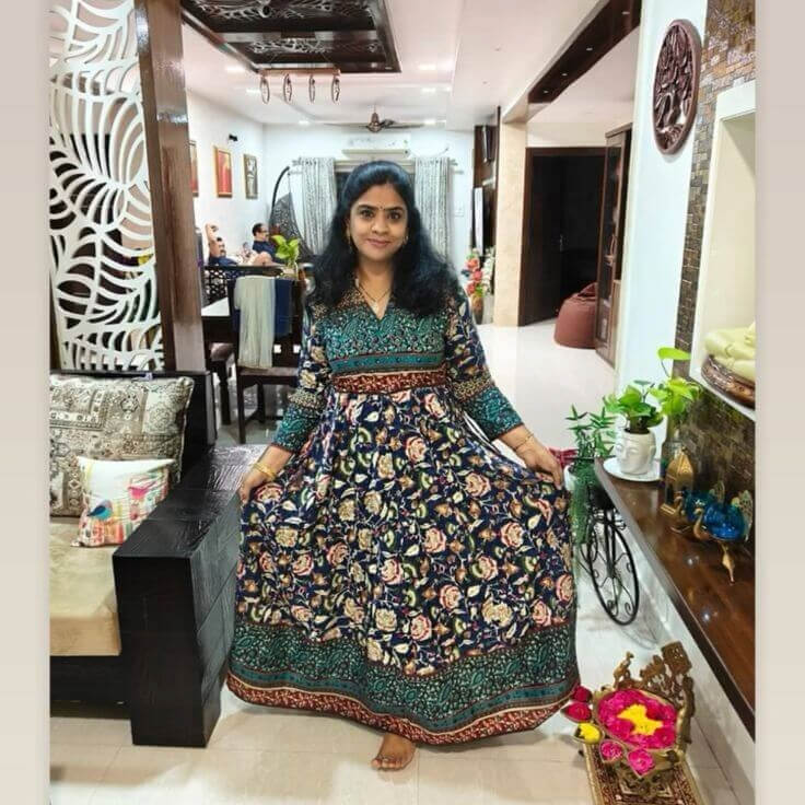 Niraa cotton angrakha kurti- Navy
