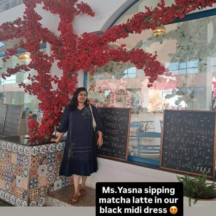 Black katha cotton midi dress
