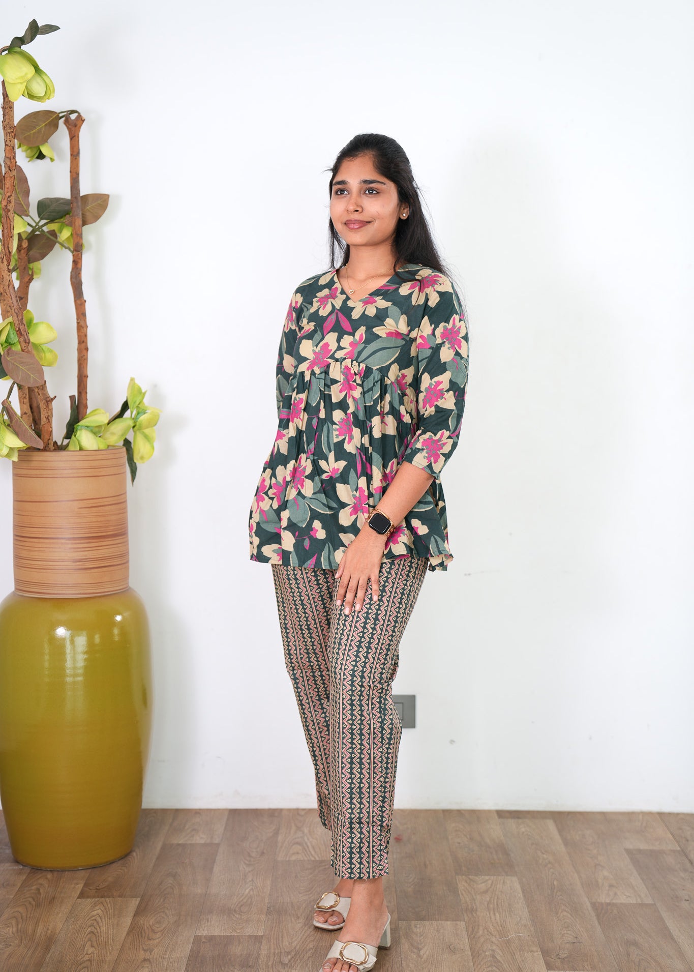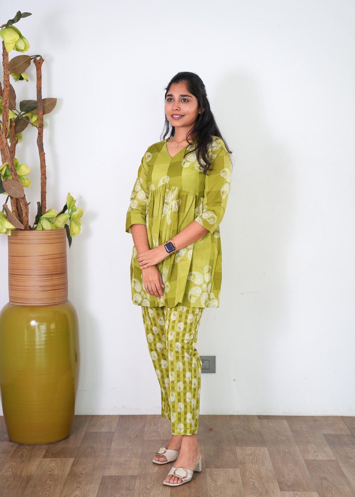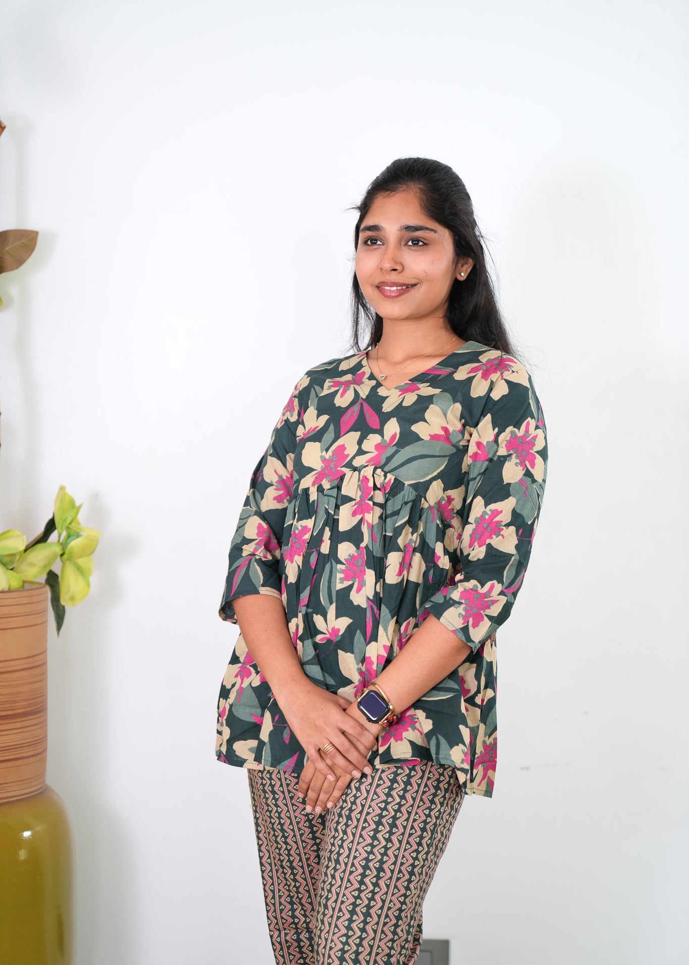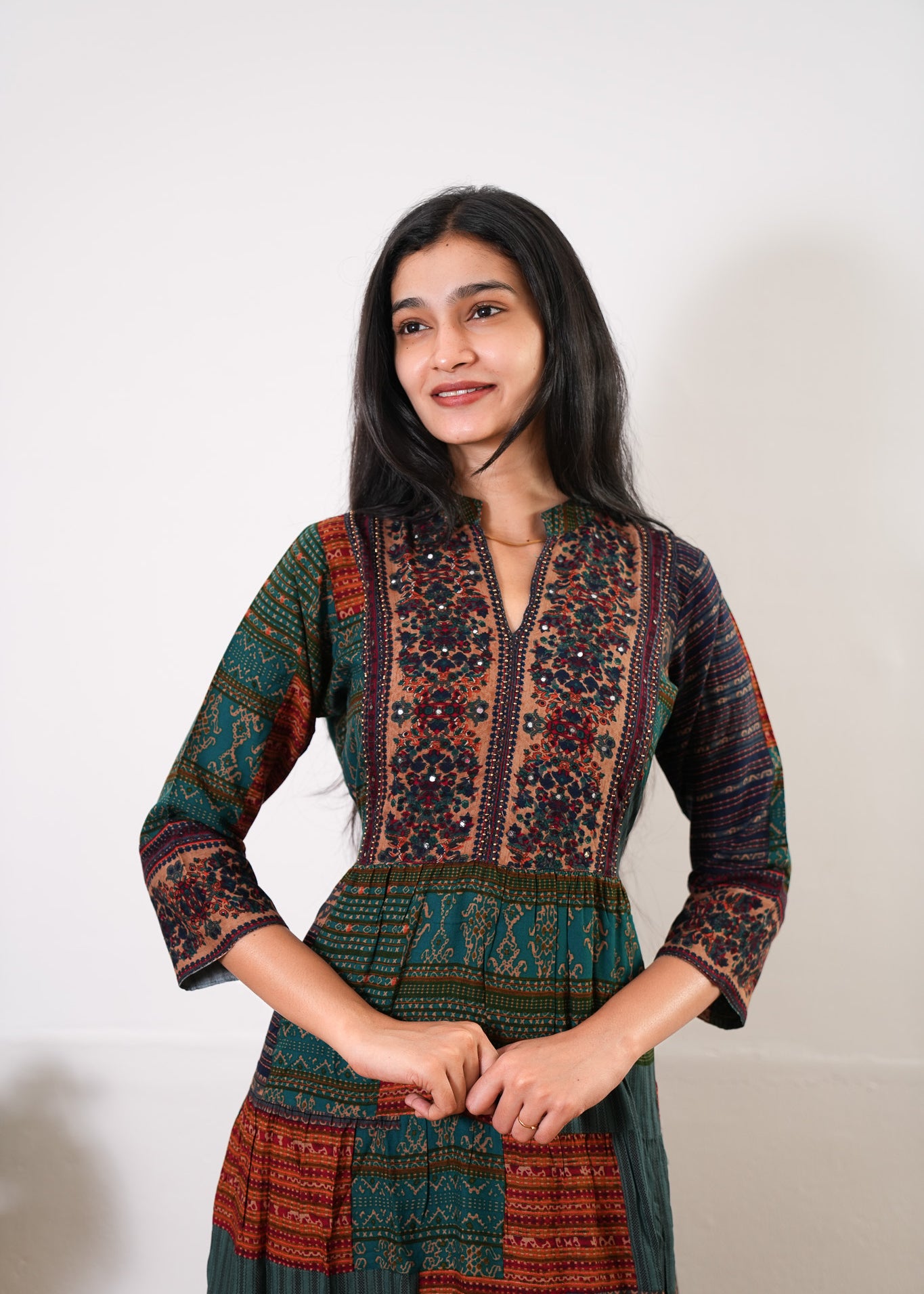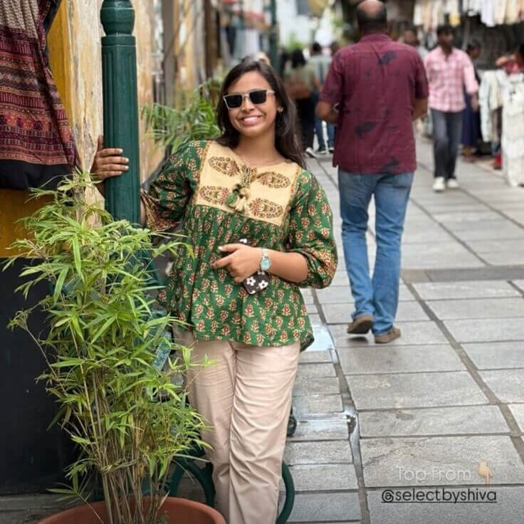 Niraa cotton angrakha kurti- Forest green