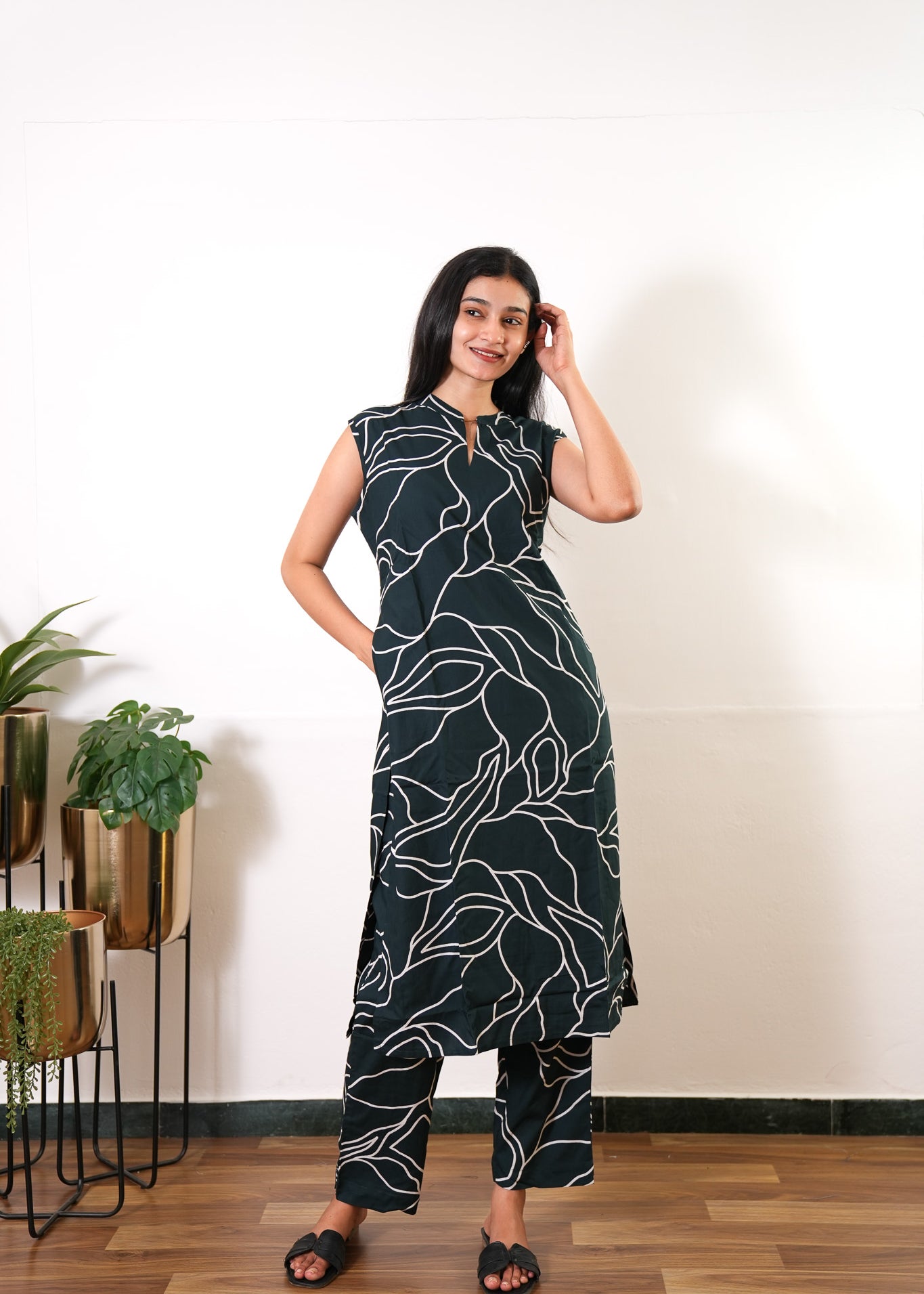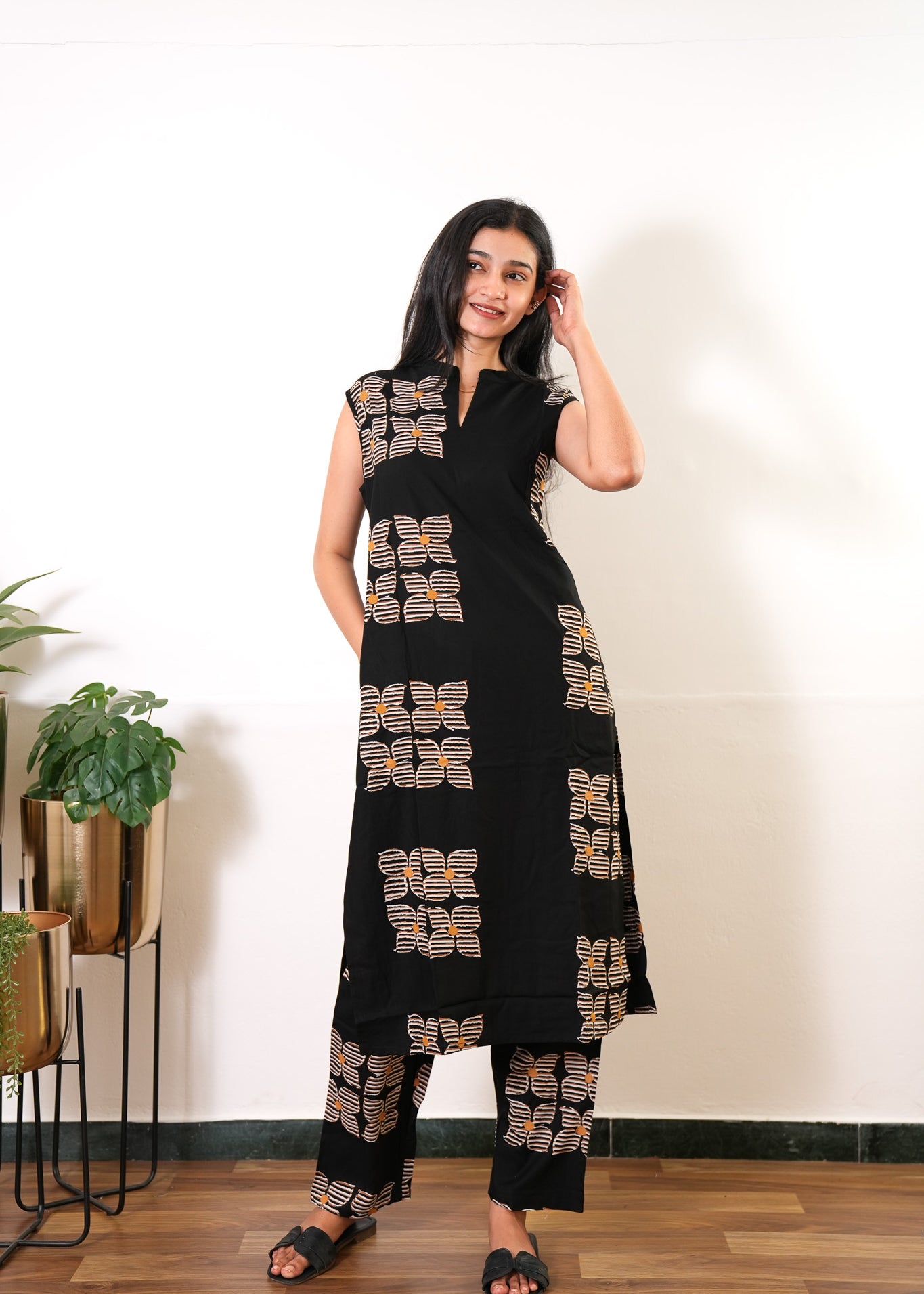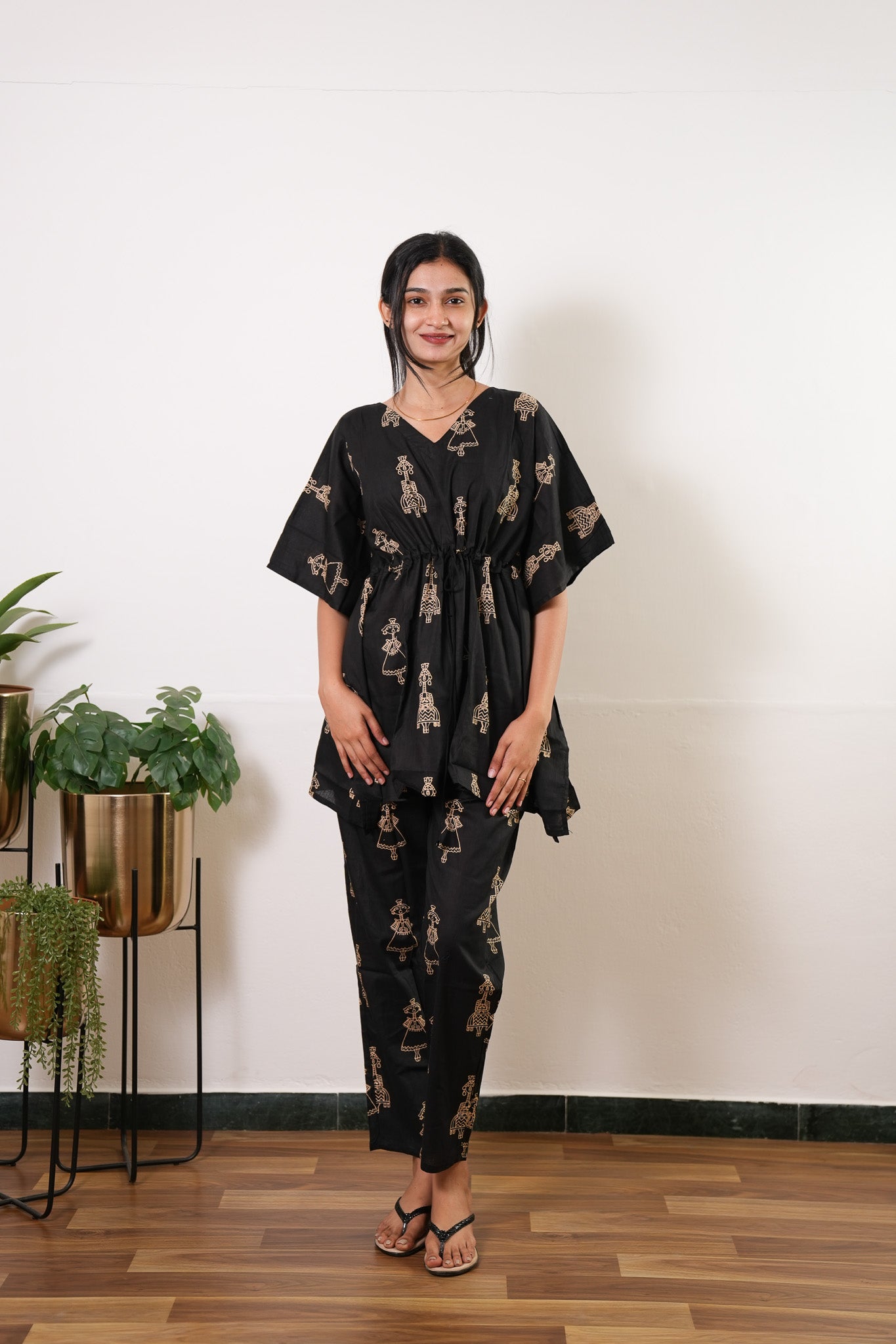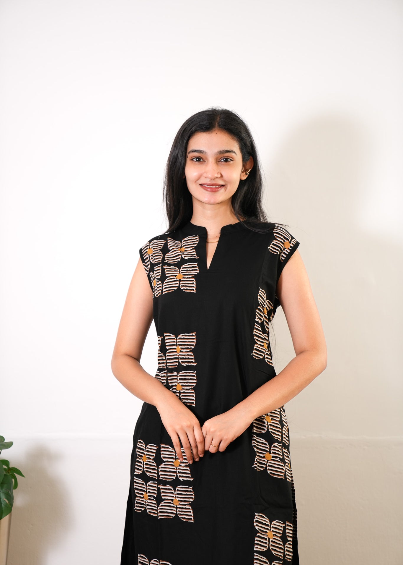 Niraa cotton angrakha kurti- Black