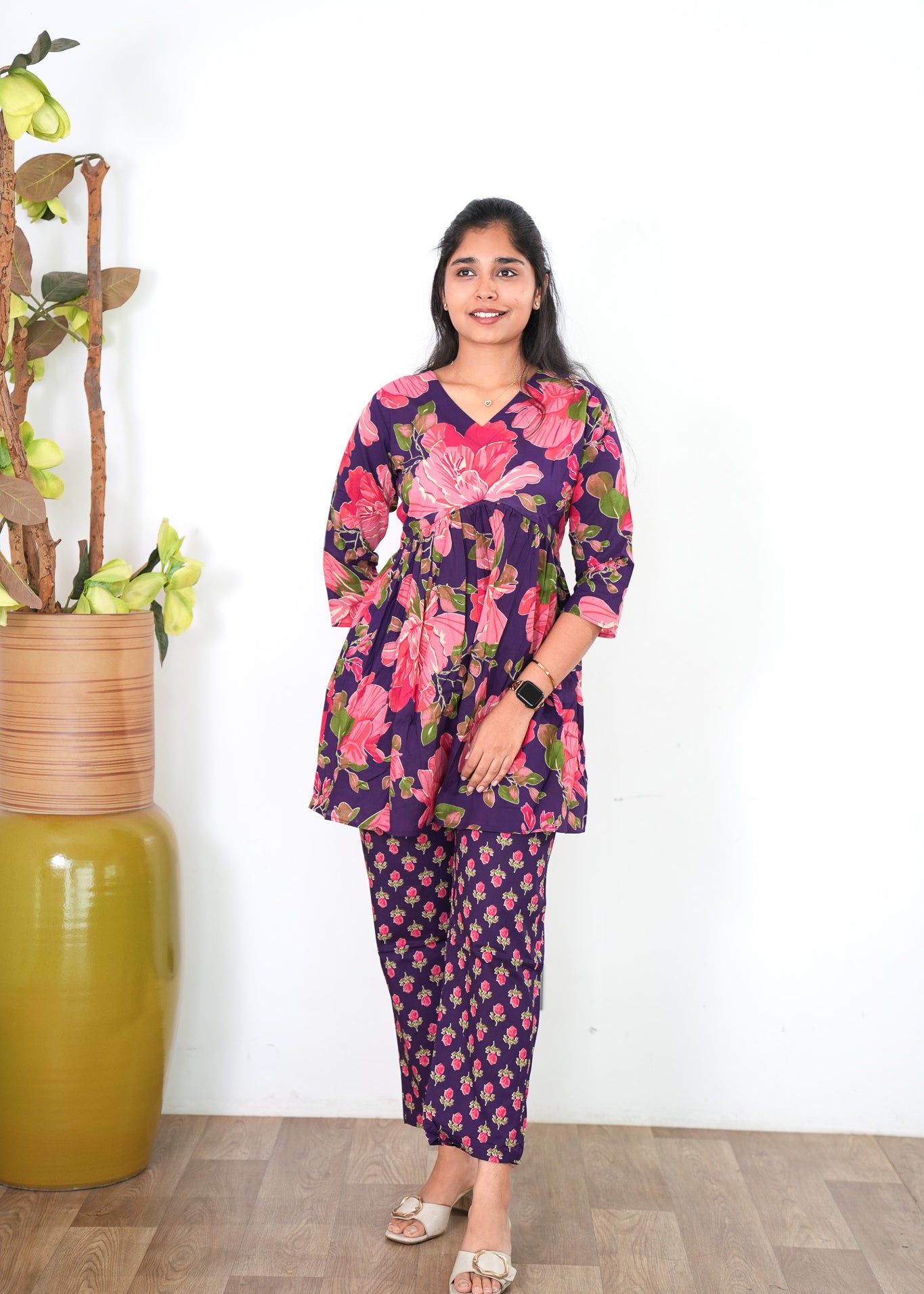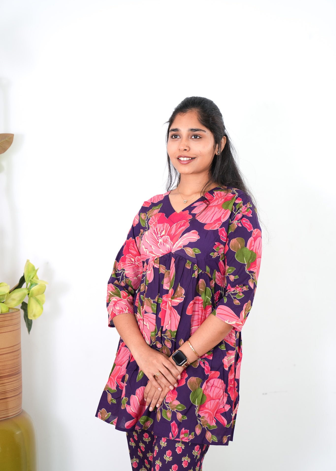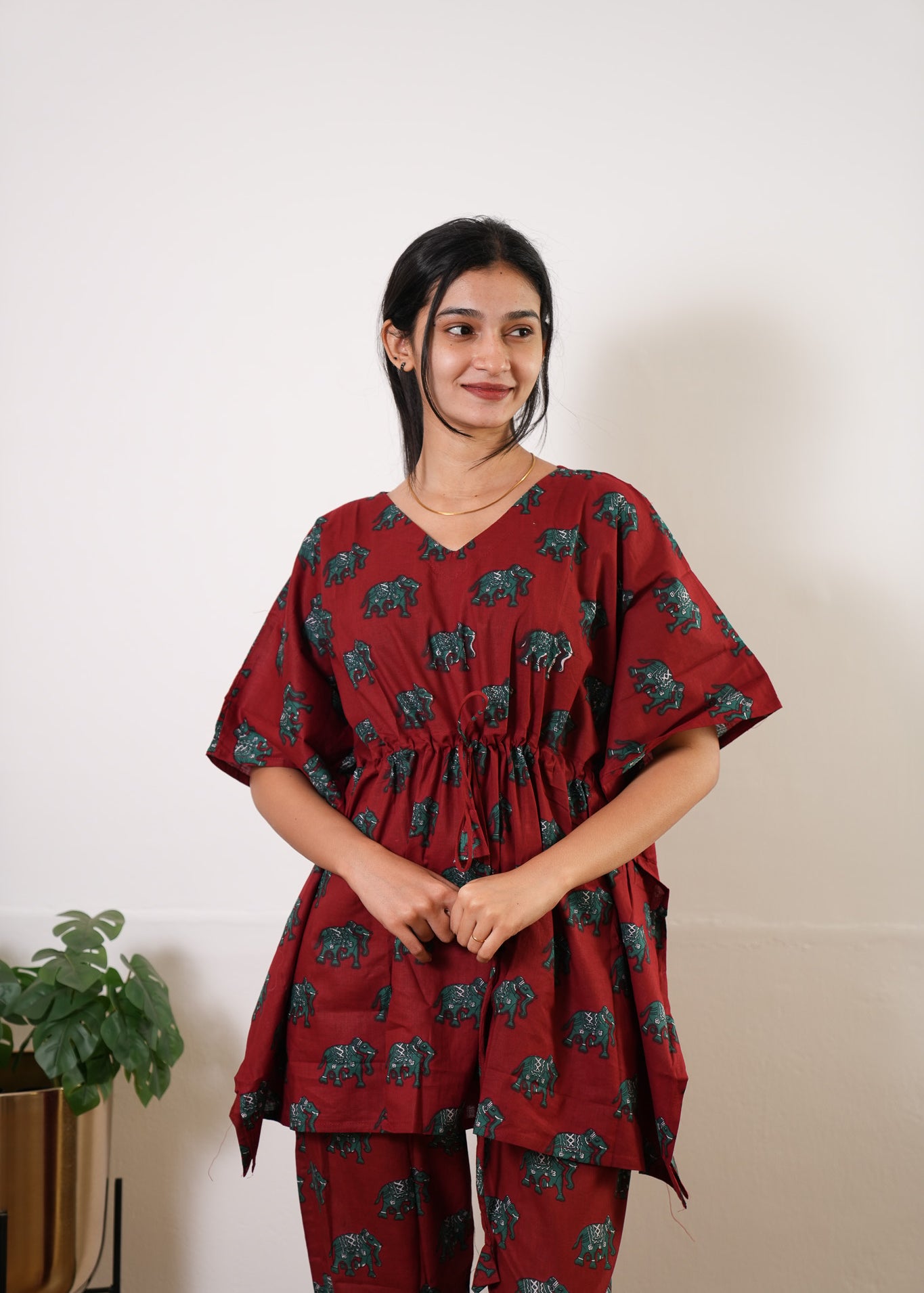 Niraa cotton angrakha kurti-Wine