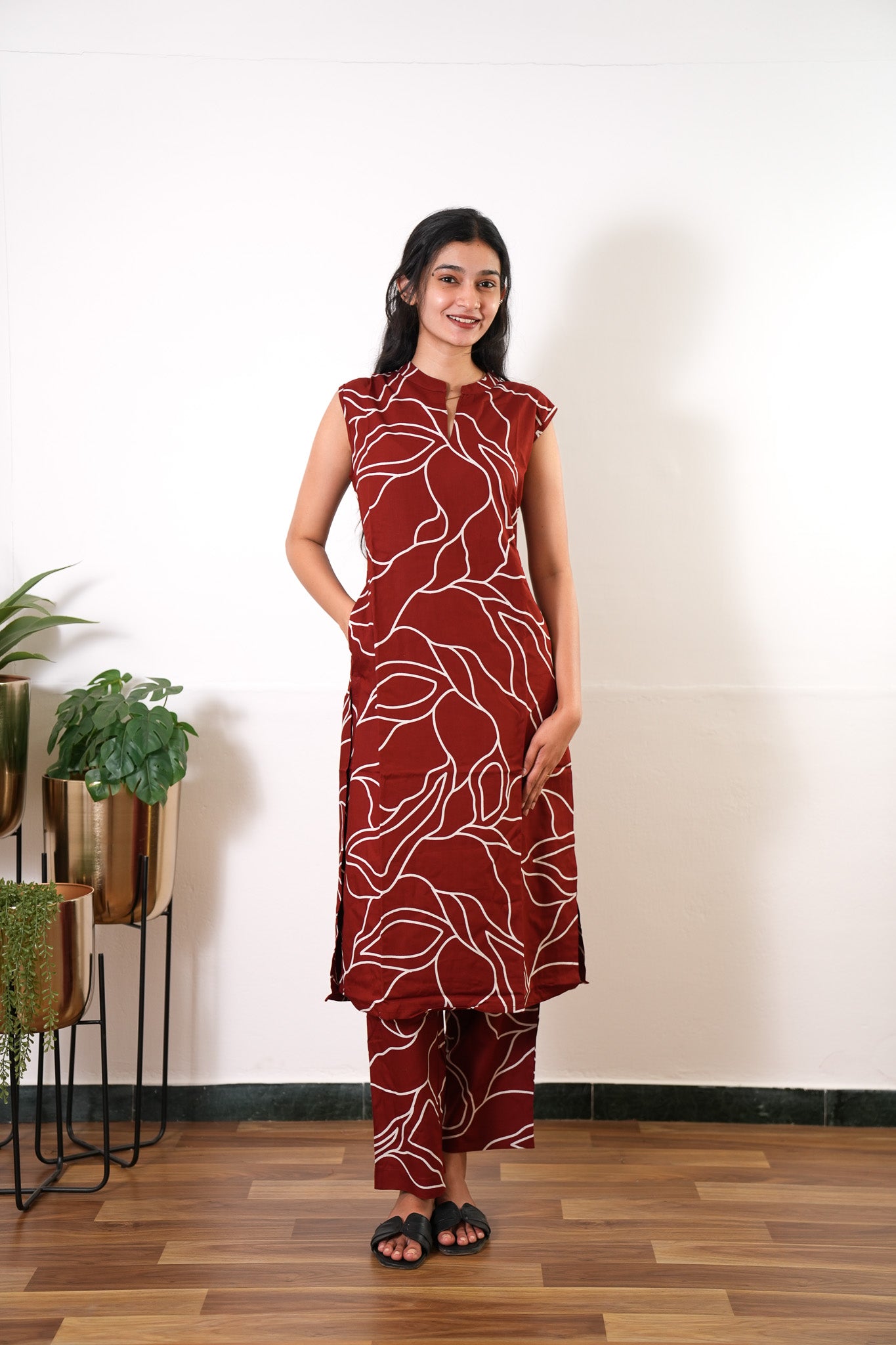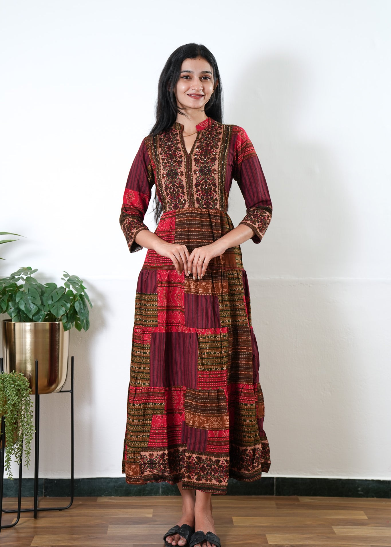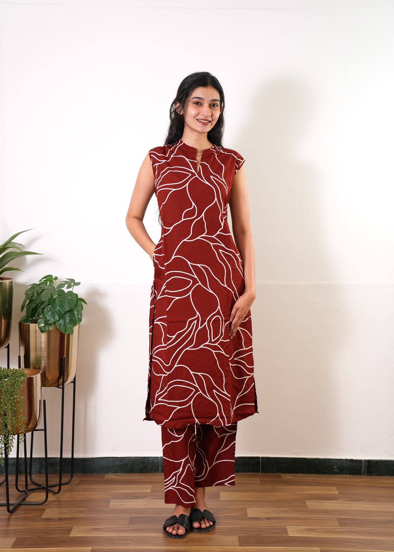 Deep maroon cotton maxi