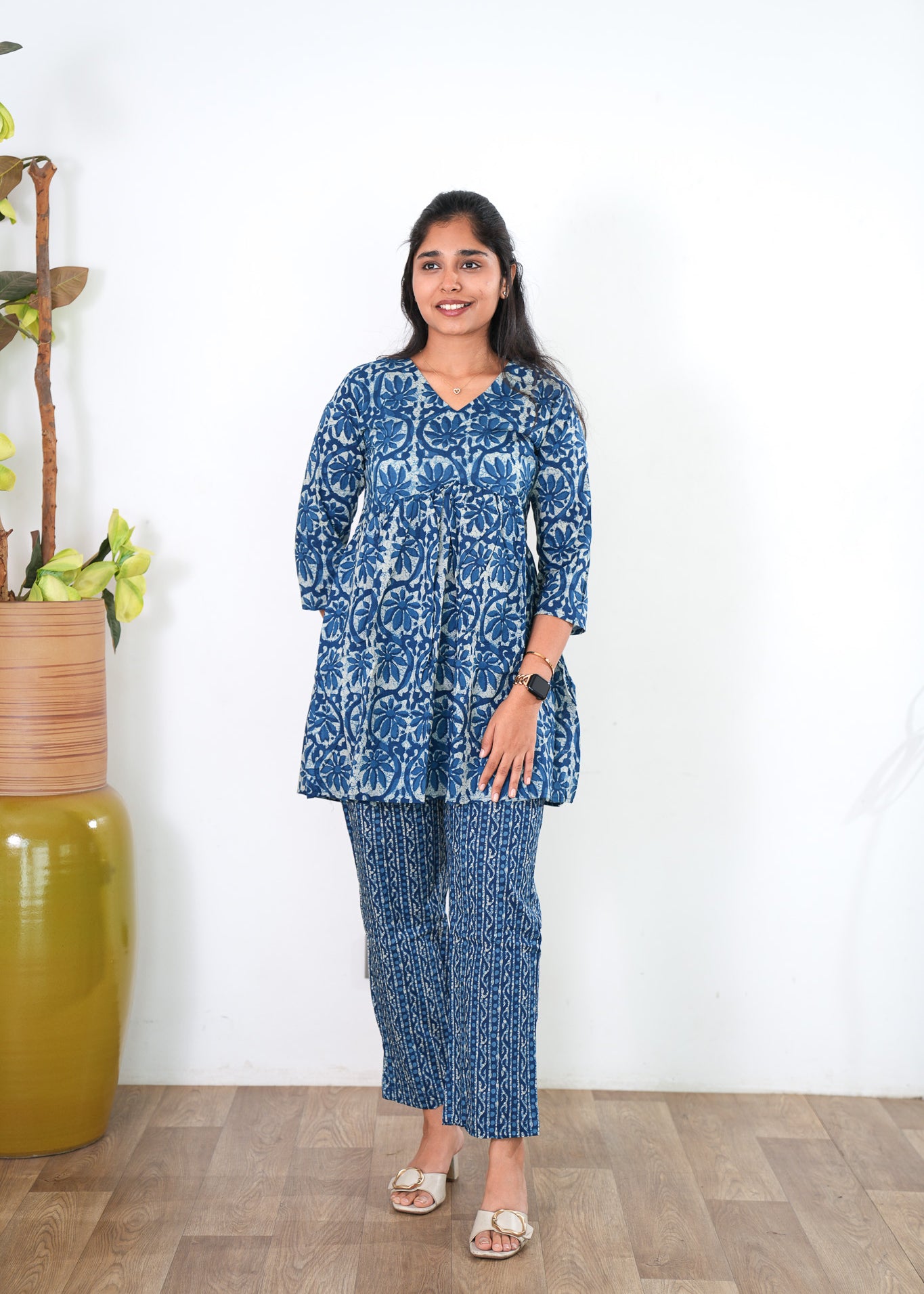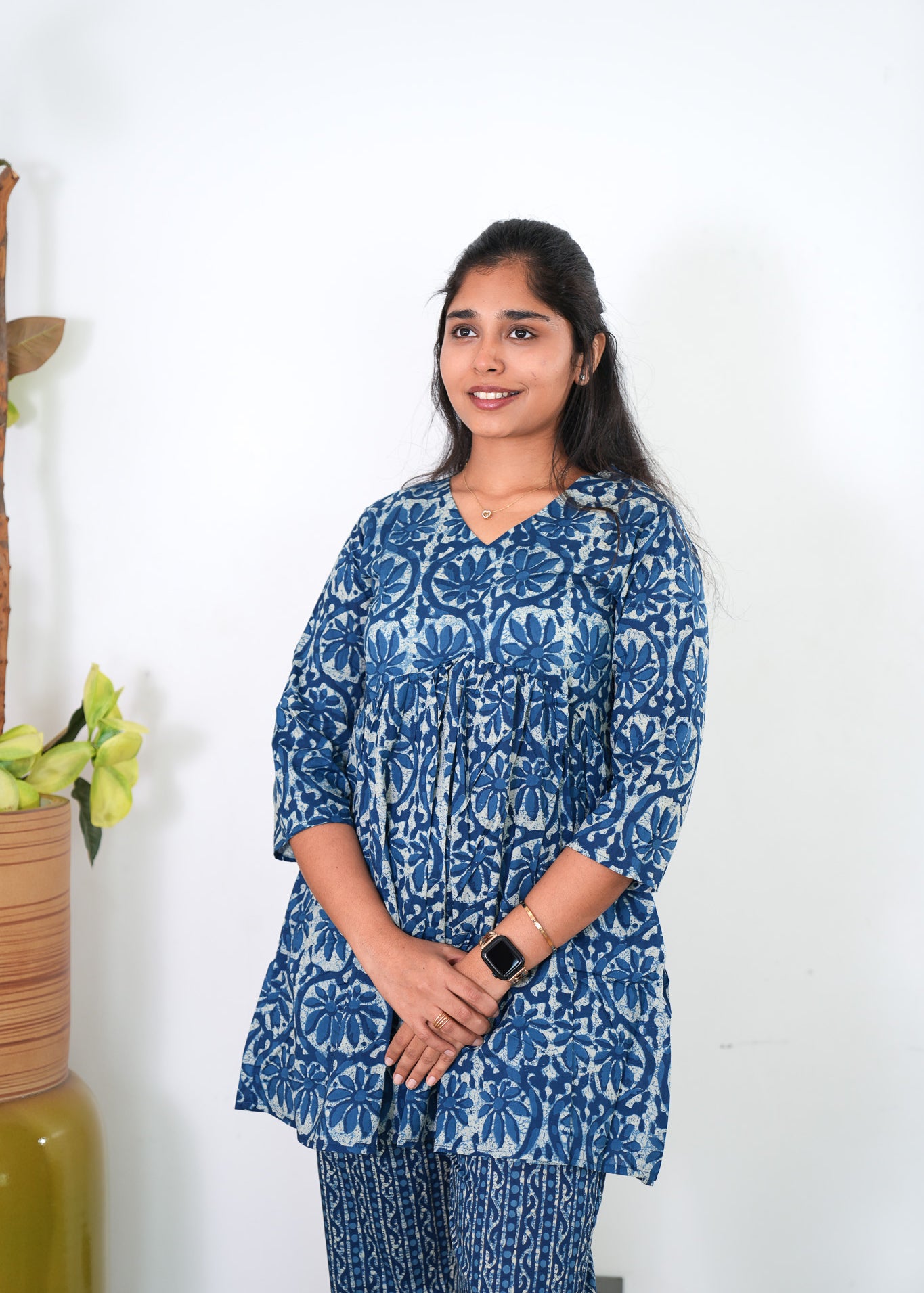 Niraa cotton angrakha kurti - Indigo