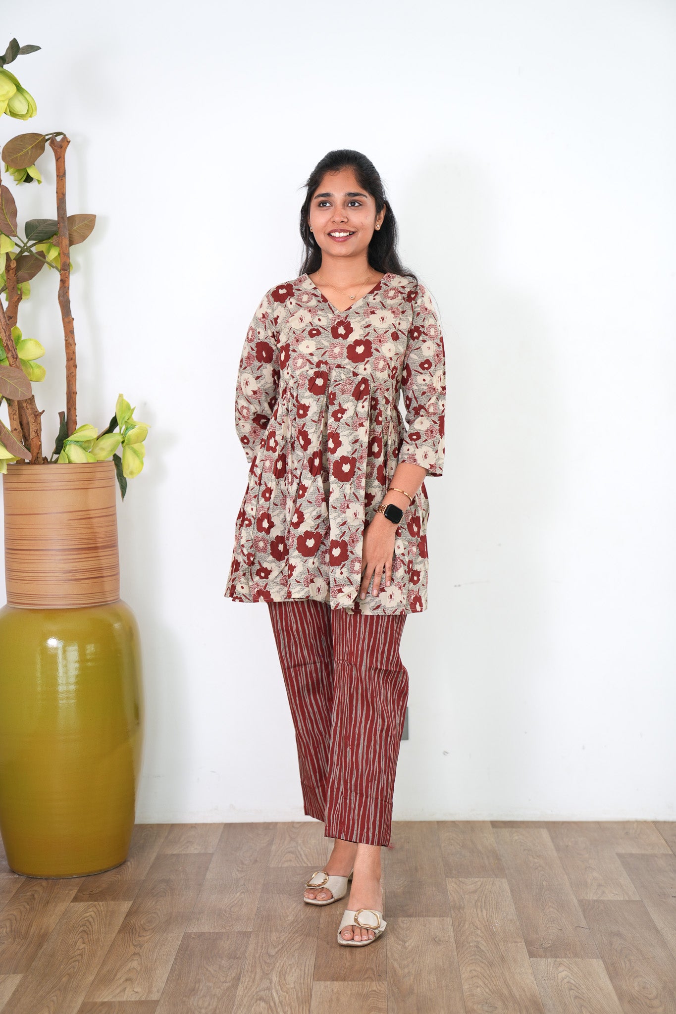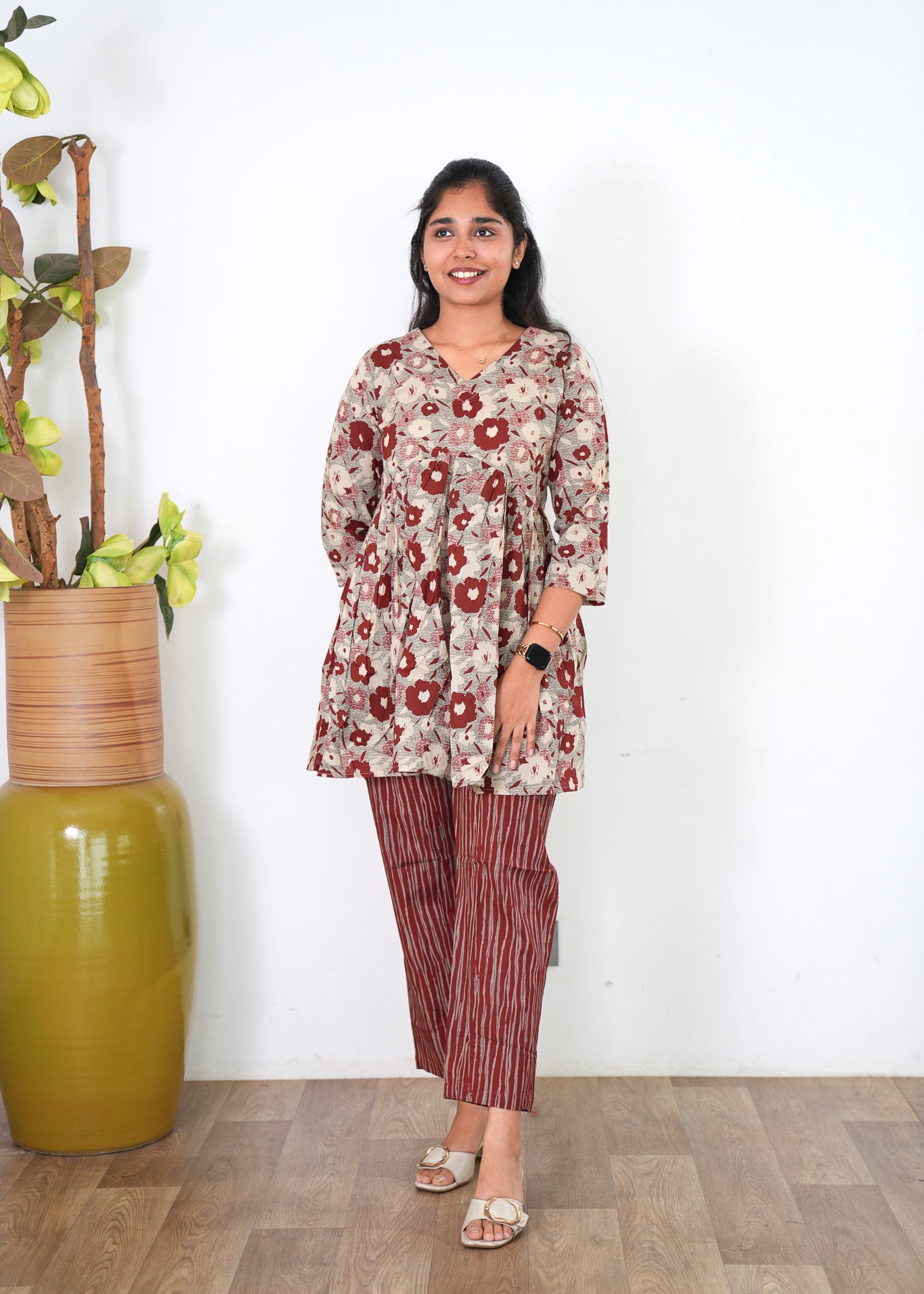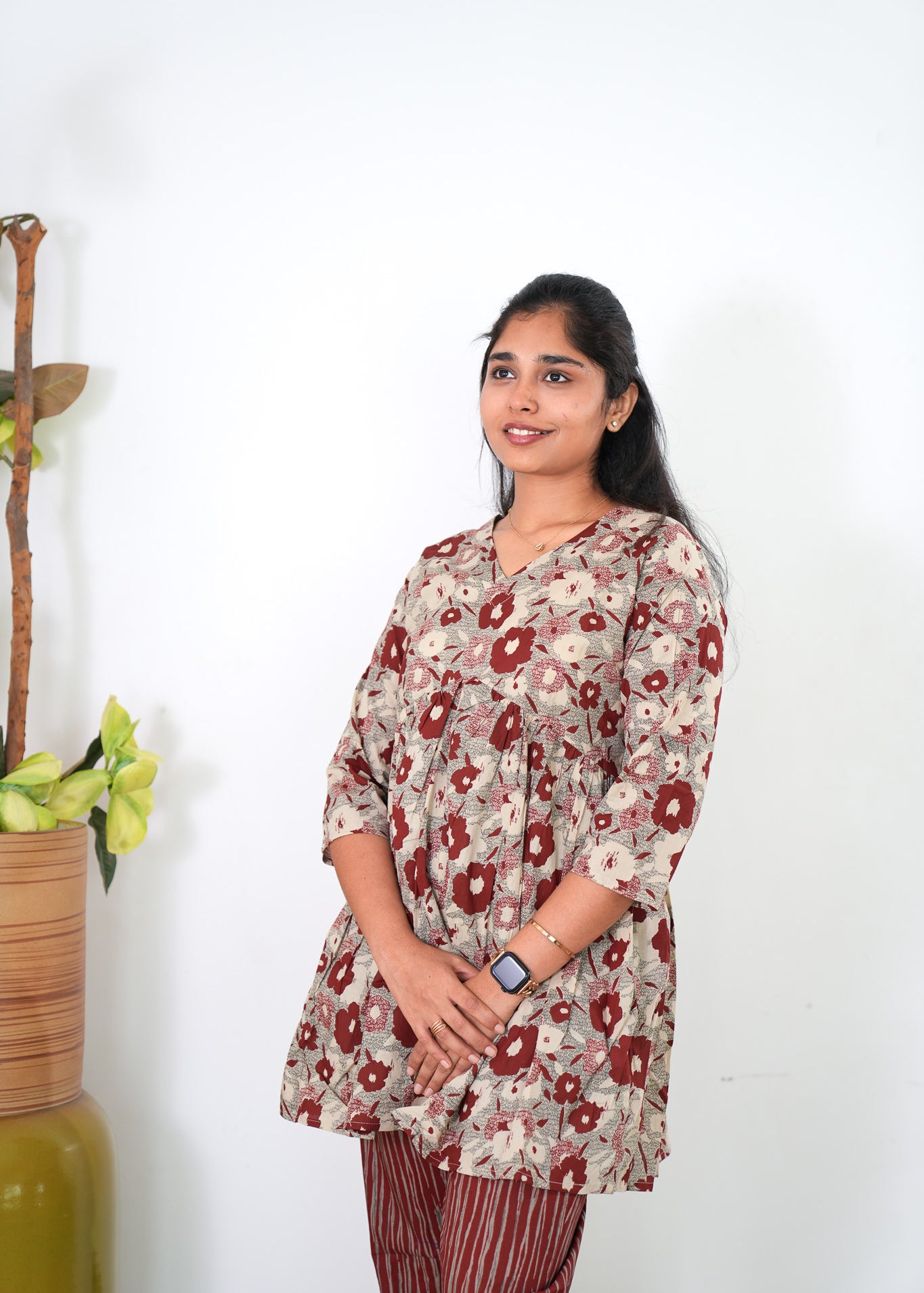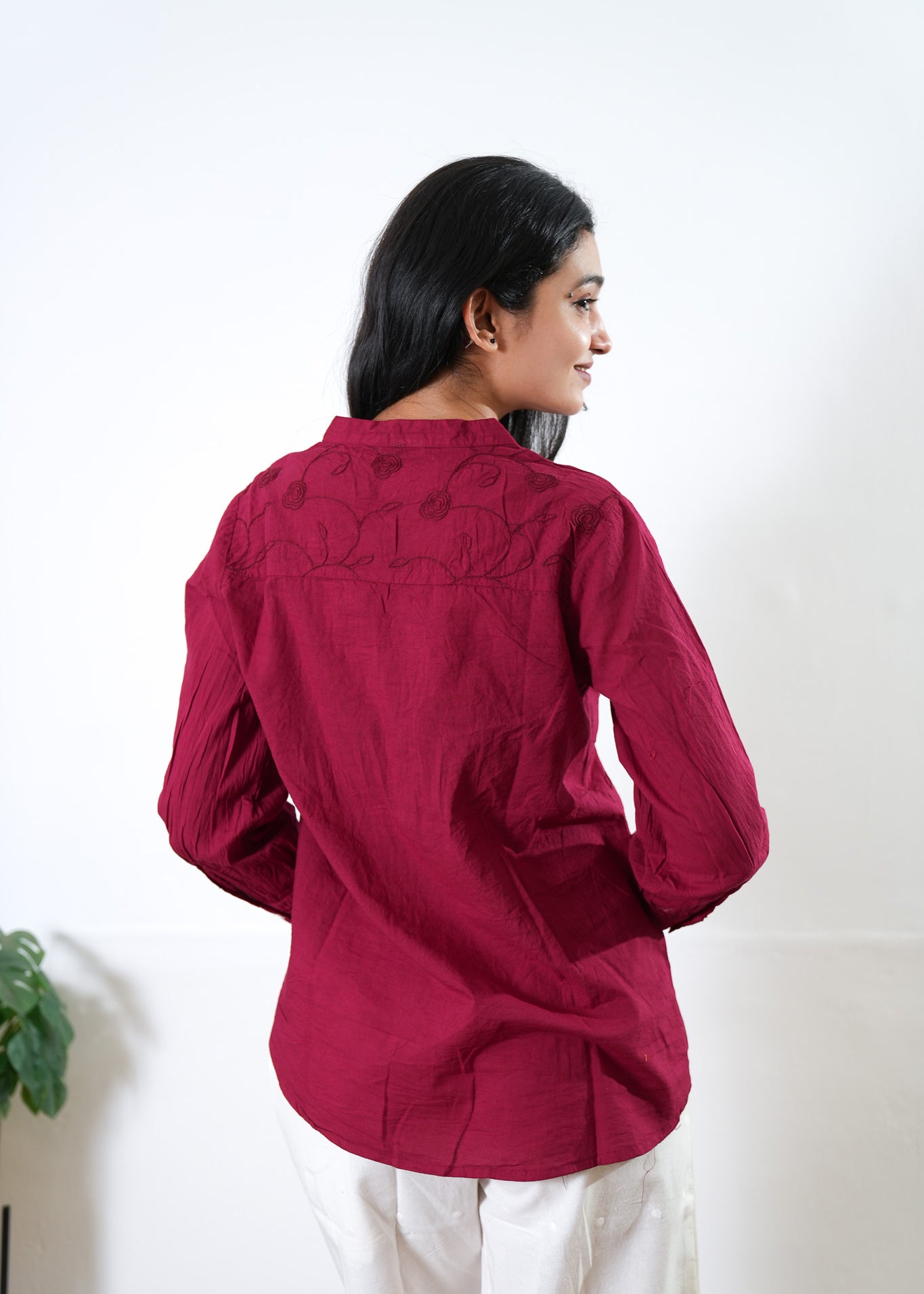 Niraa cotton angrakha kurti- Maroon
