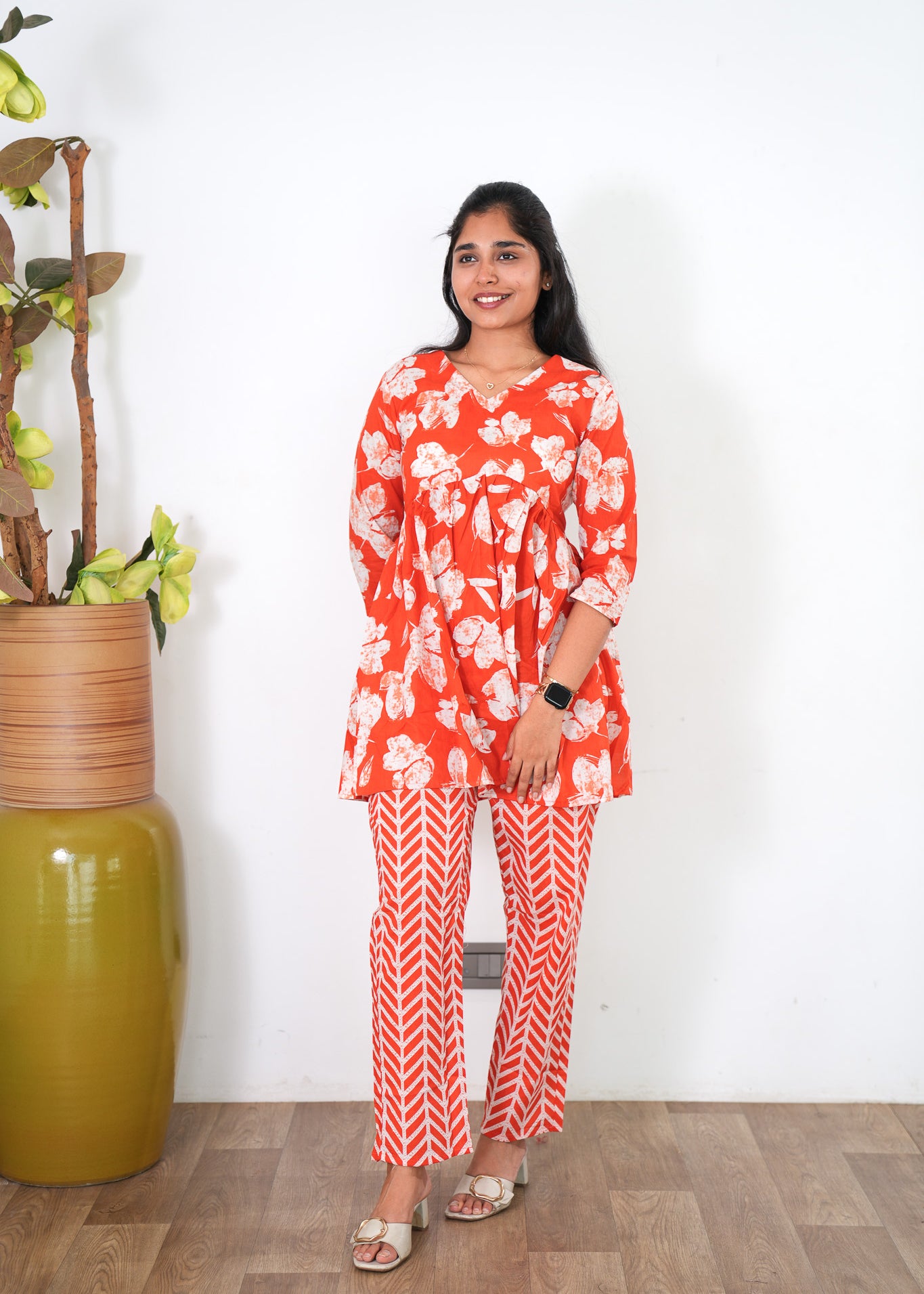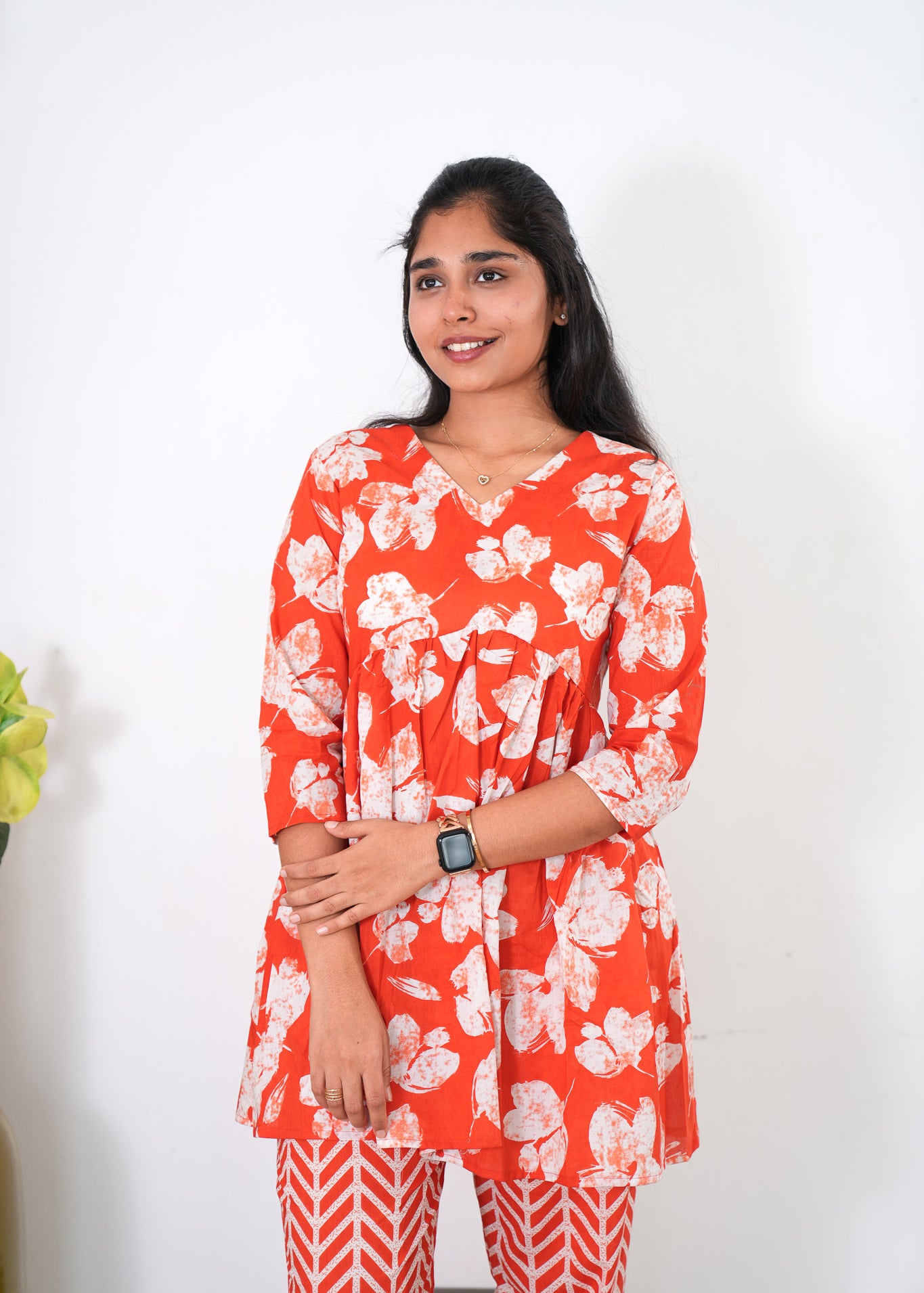 Niraa cotton angrakha kurti- Sindoor