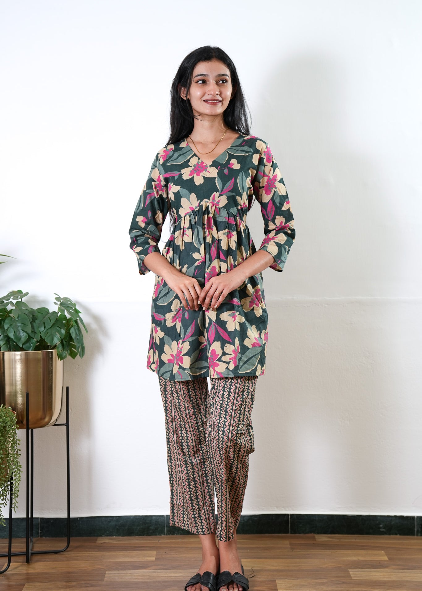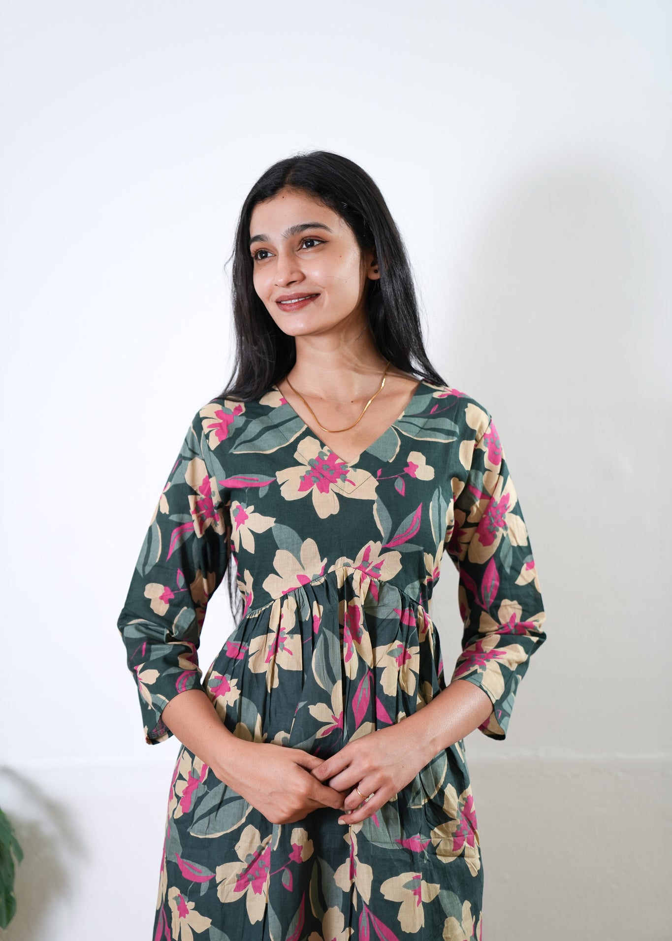 Niraa cotton angrakha kurti- Forest green