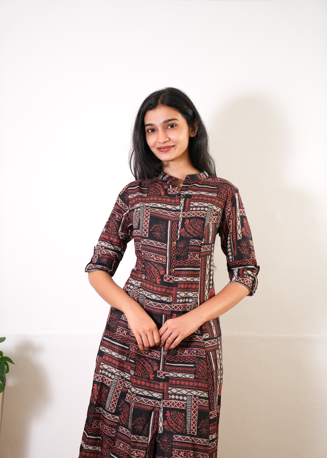 Brick brown mandarin a-line cotton co-ords set