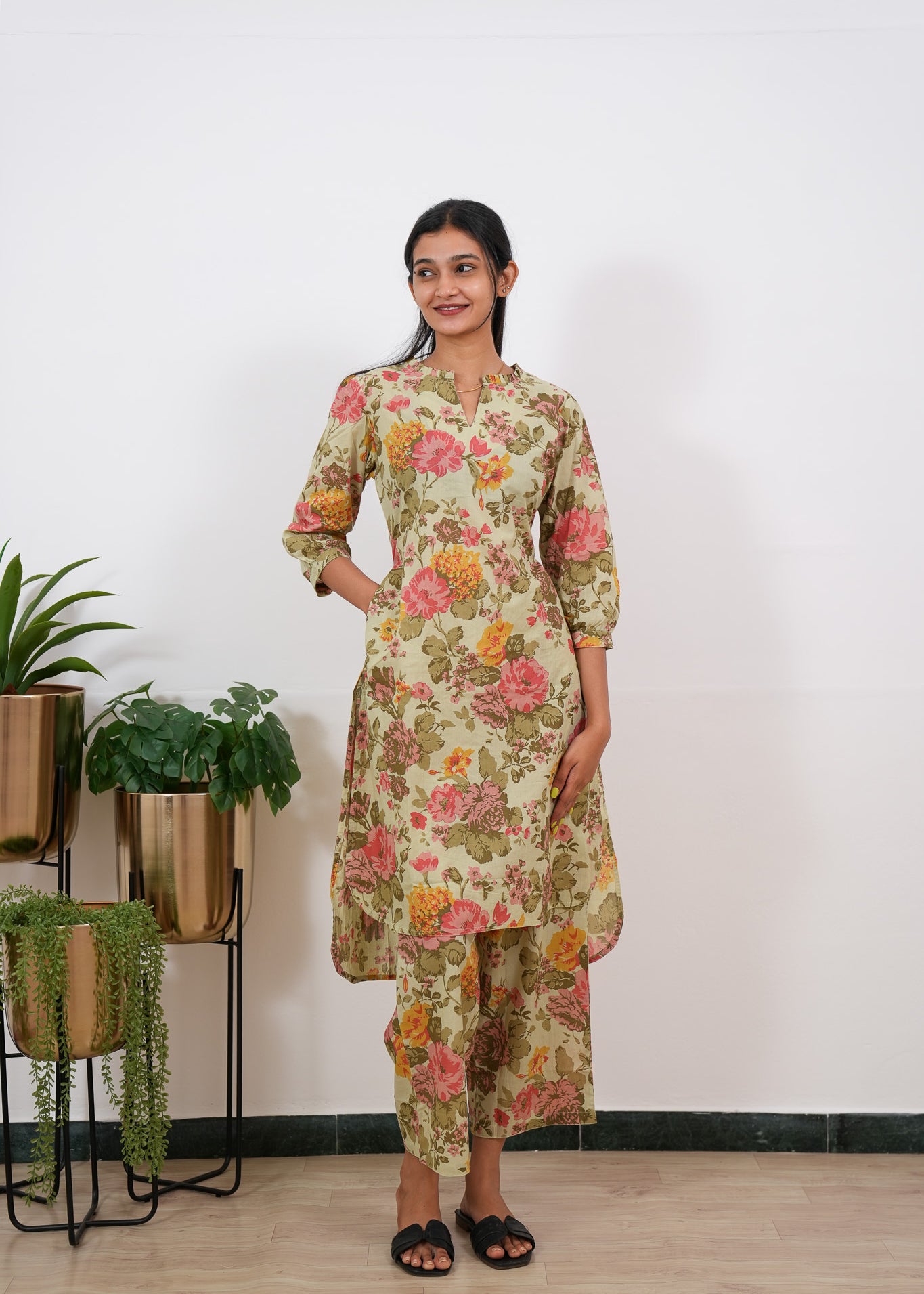 Pista green roses cotton co-ords set