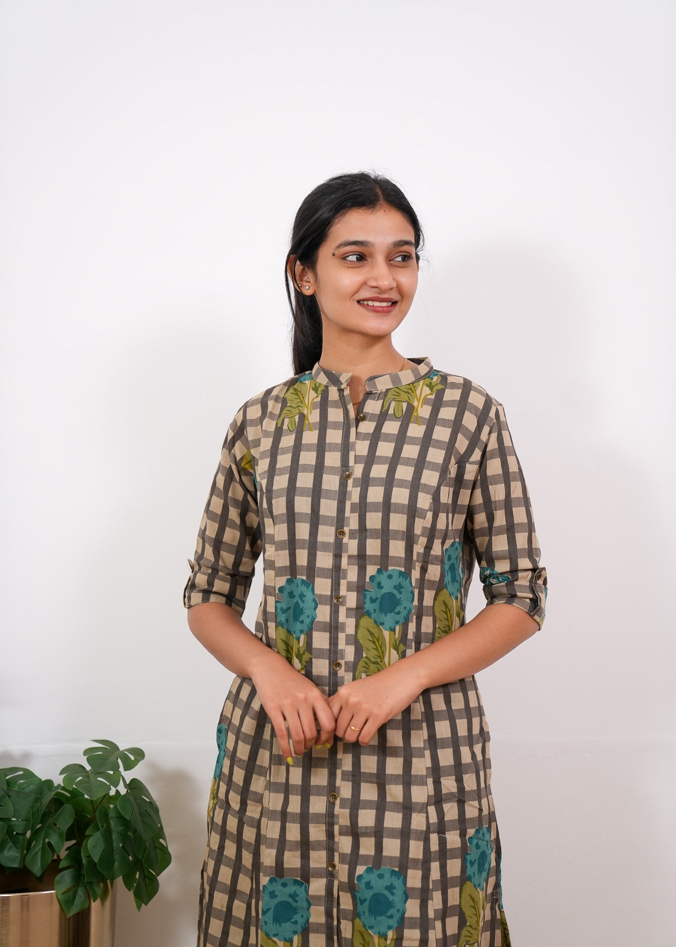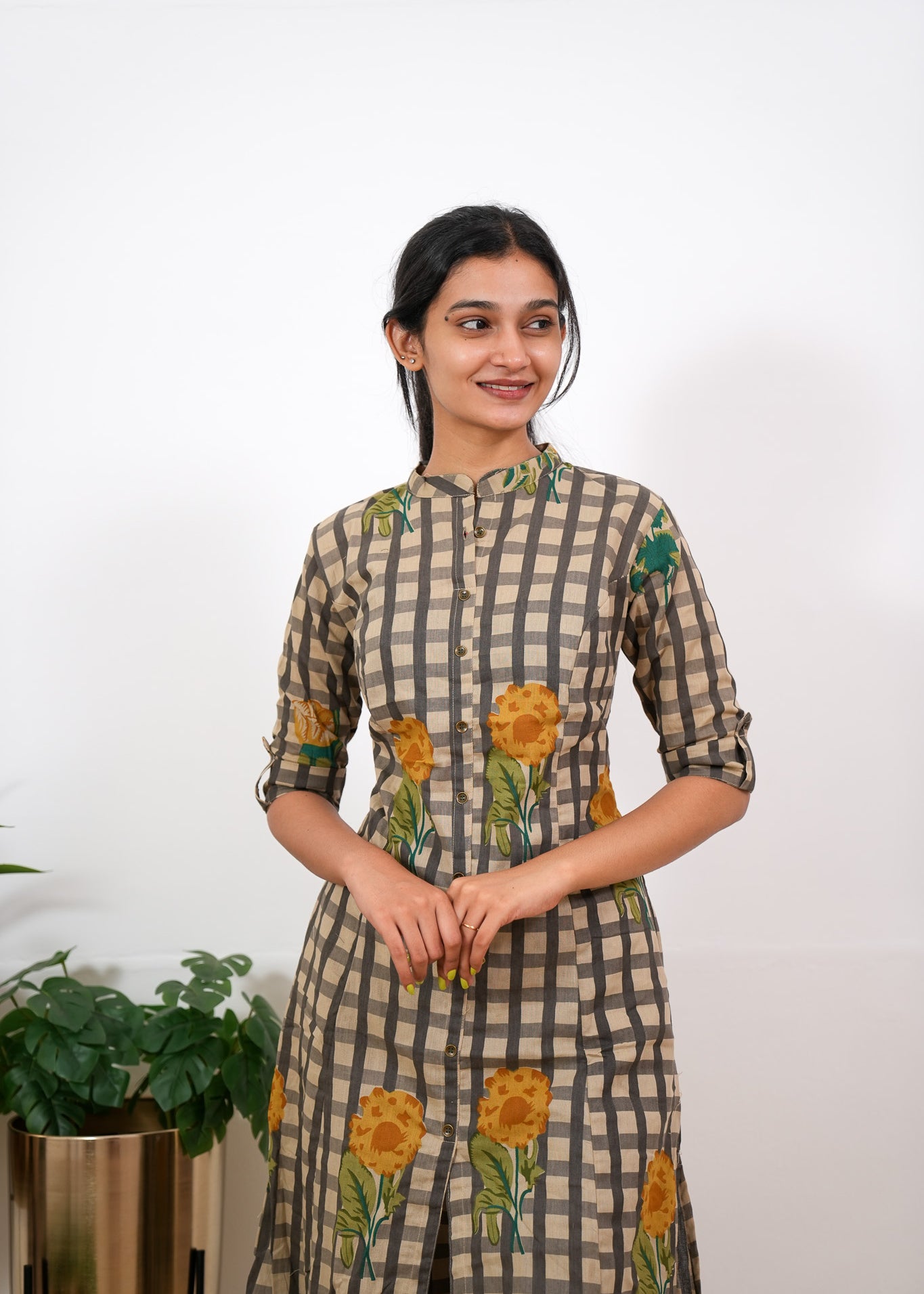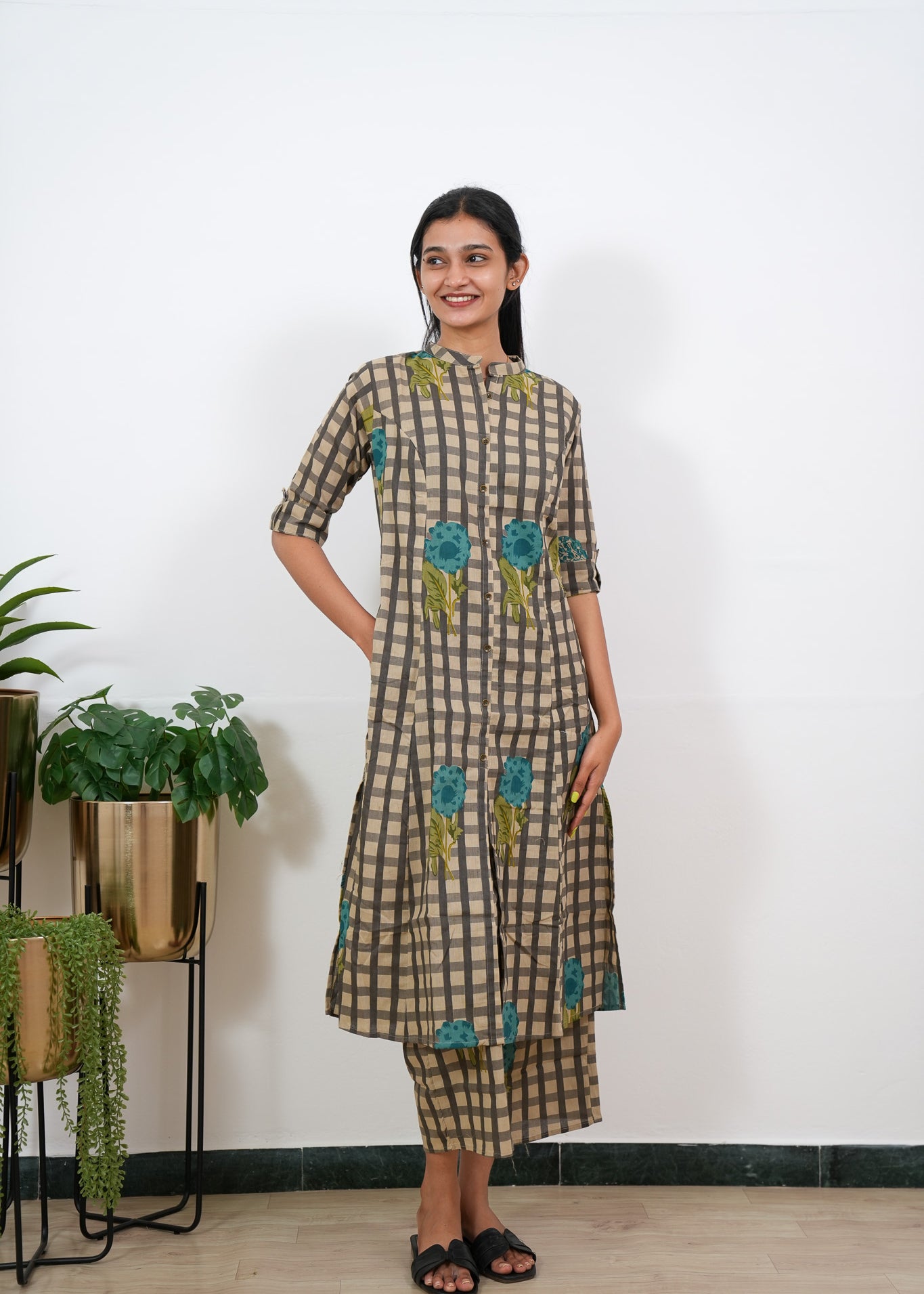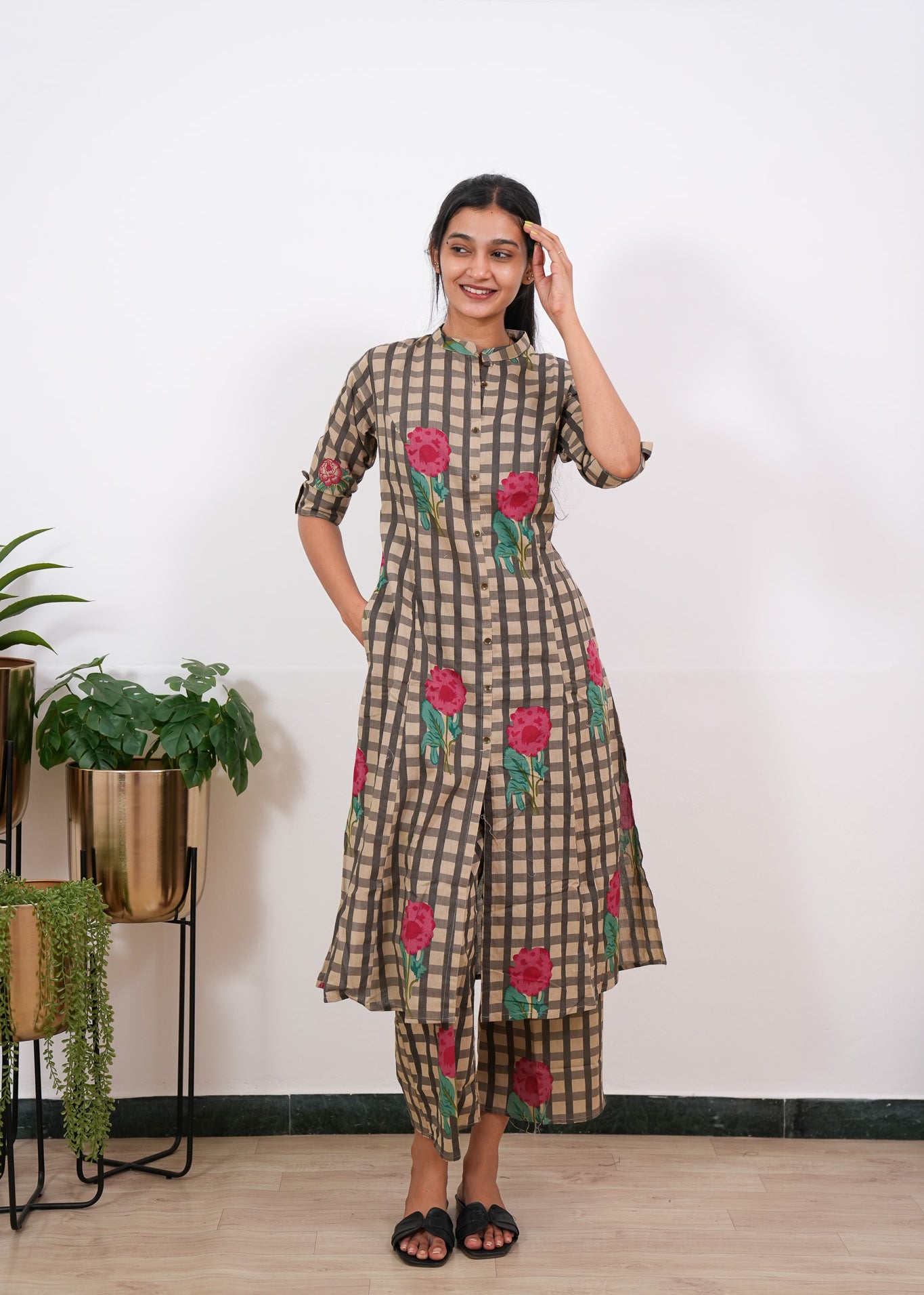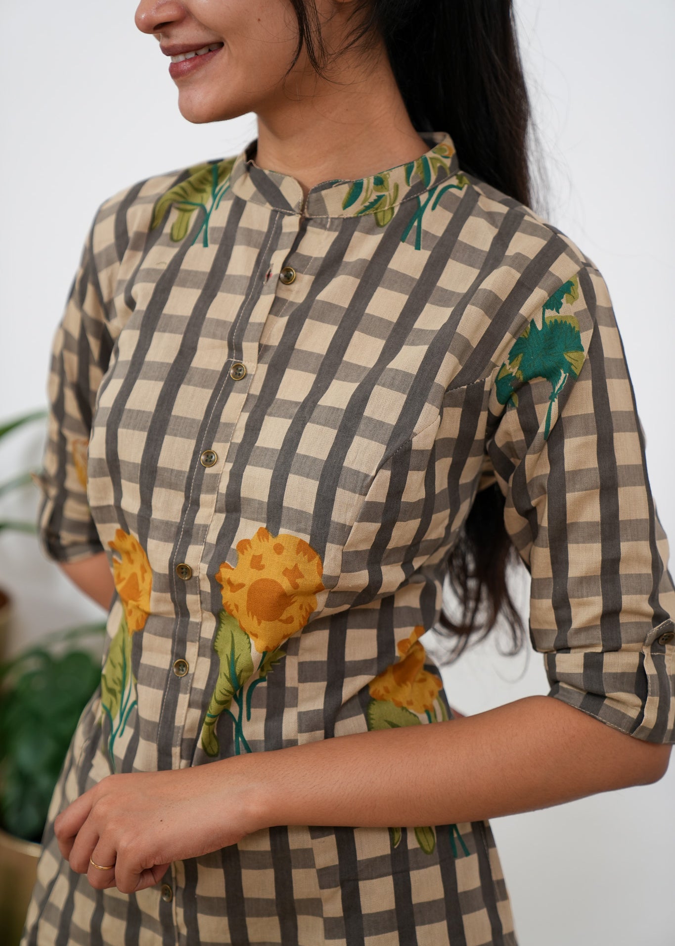 Mustard roses checkered cotton co-ords set