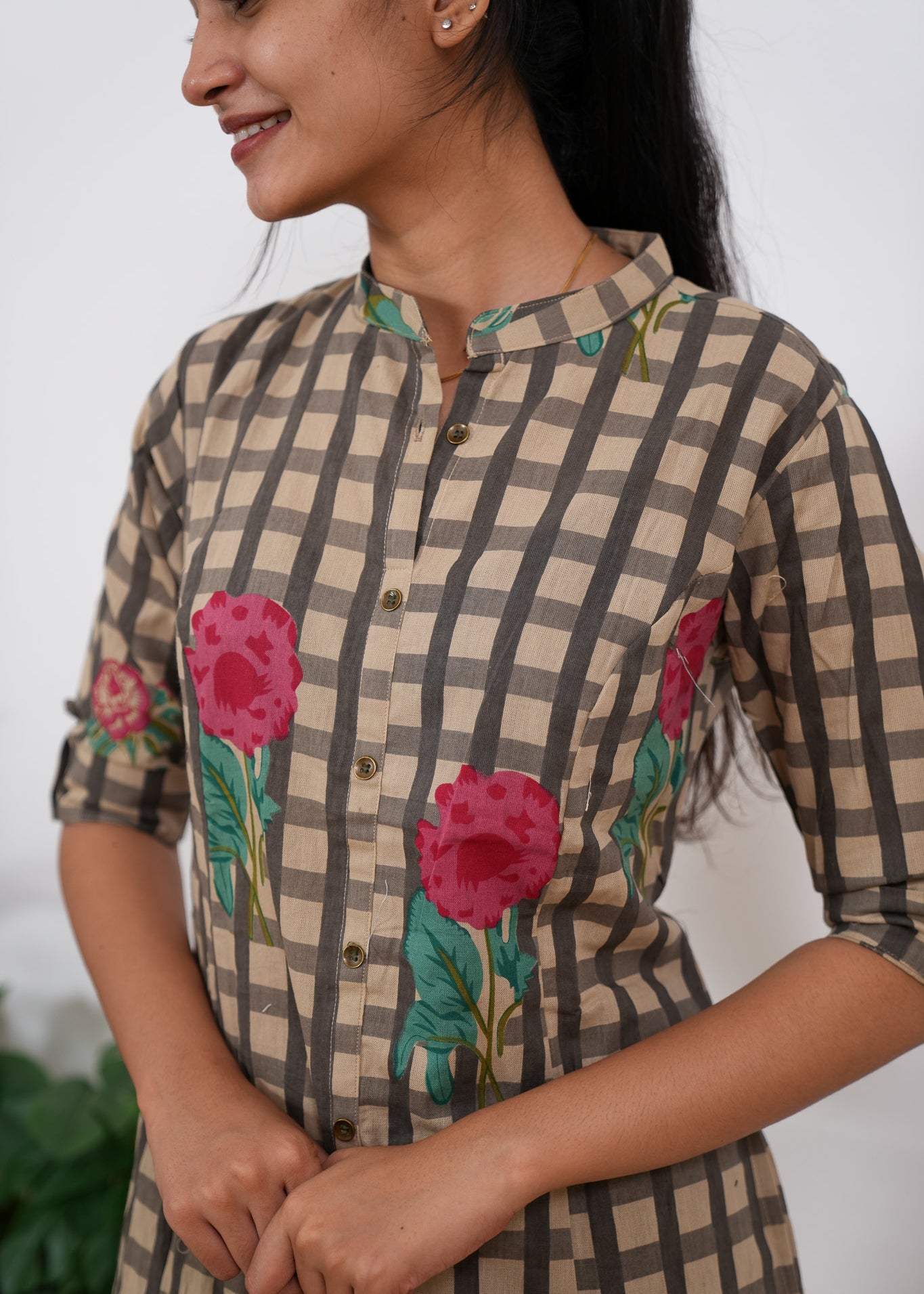Red roses checkered cotton co-ords set