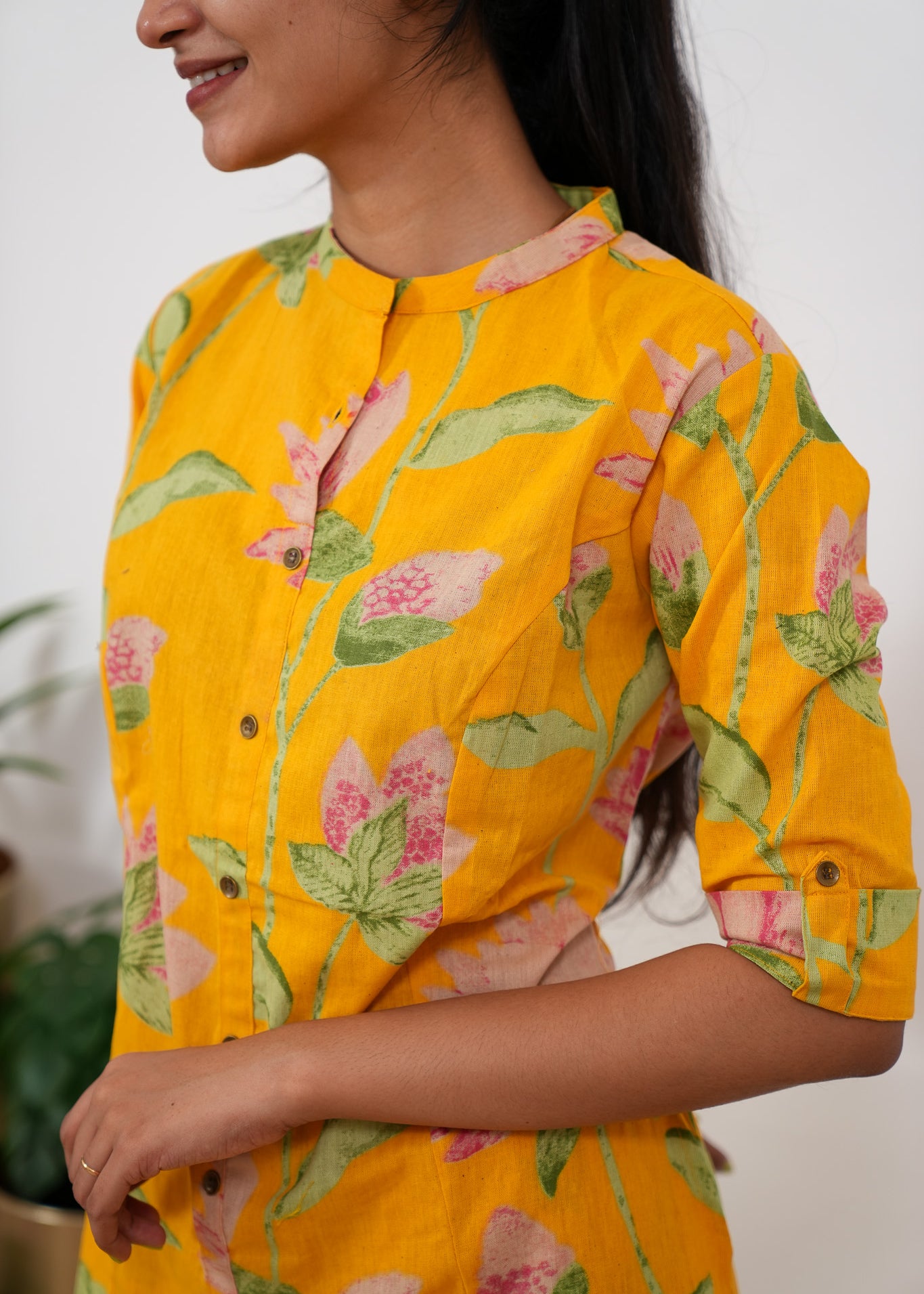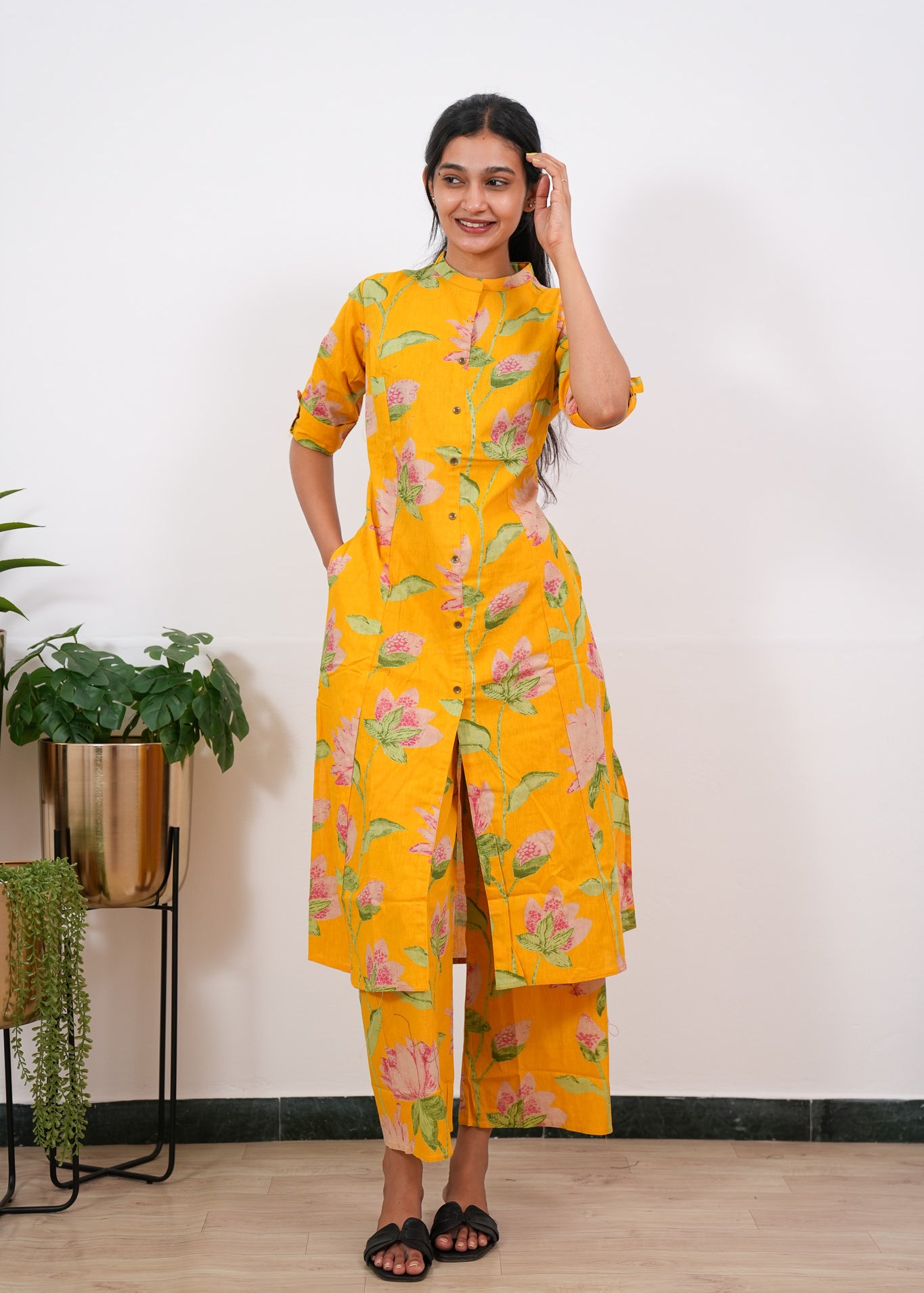 Mustard tulips mandarin cotton co-ords set