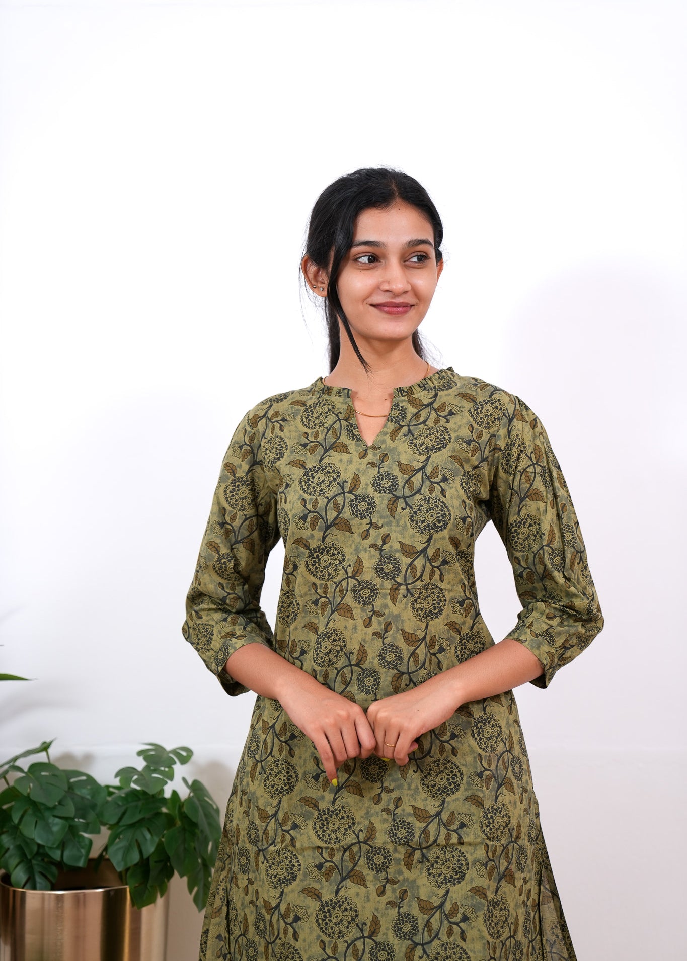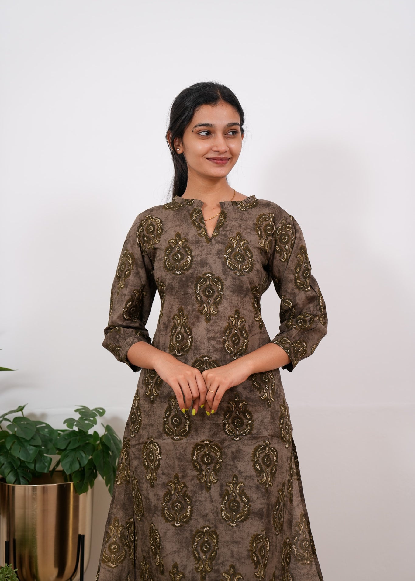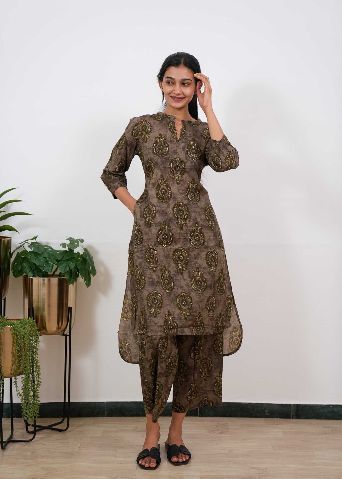 Dark brown tulips mandarin cotton co-ords set