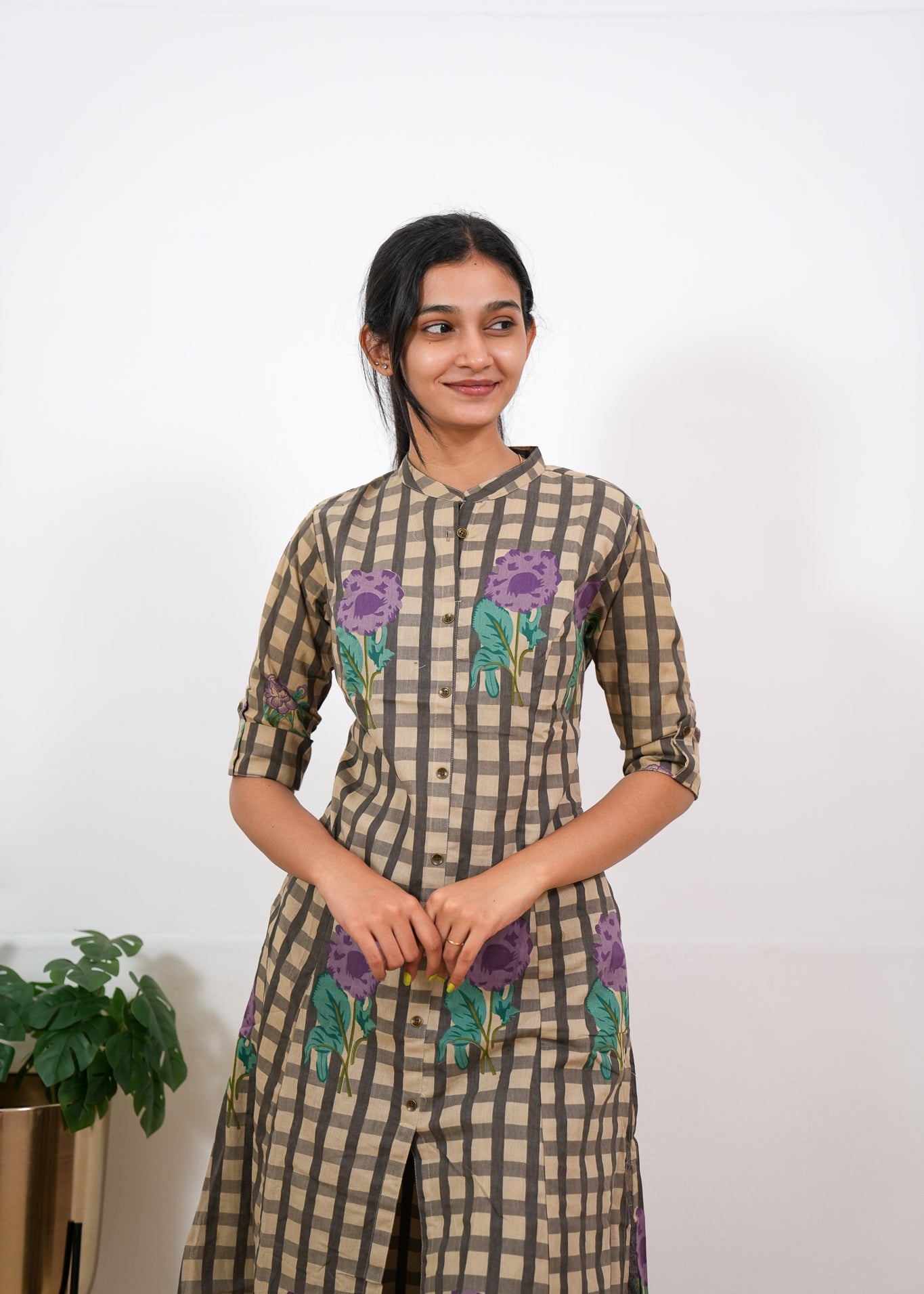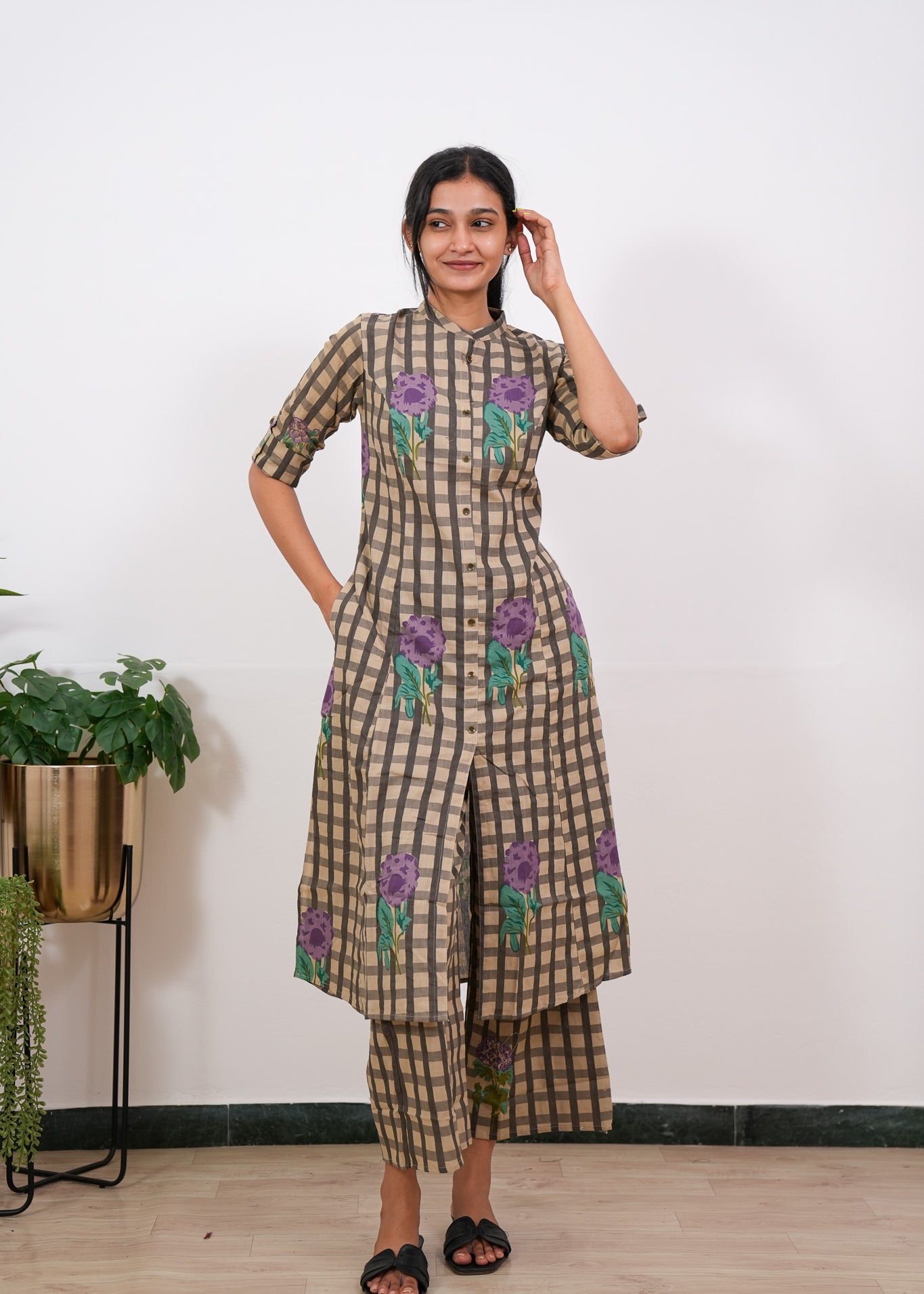Purple roses checkered cotton co-ords set