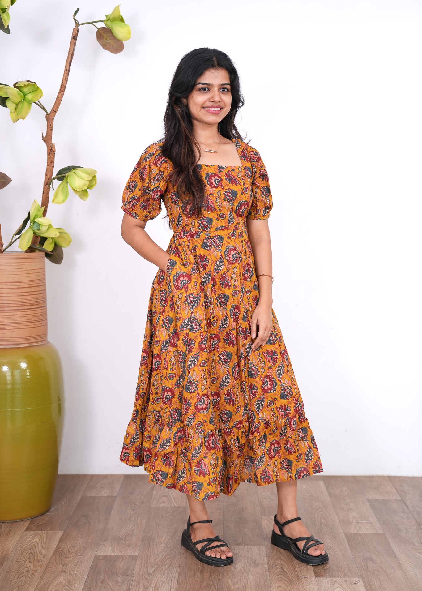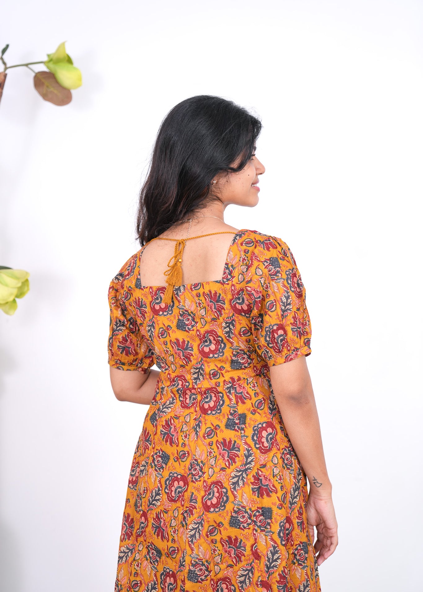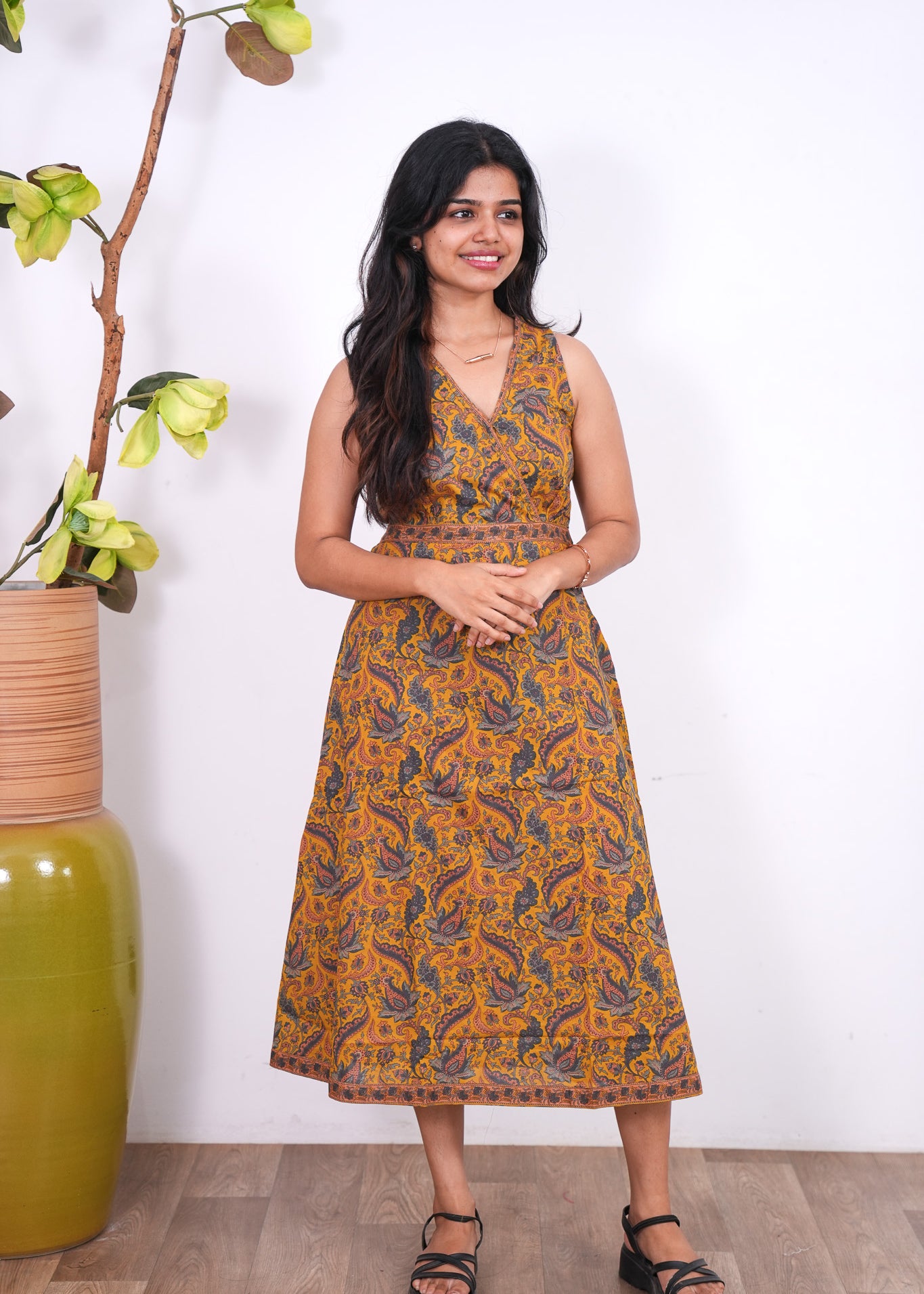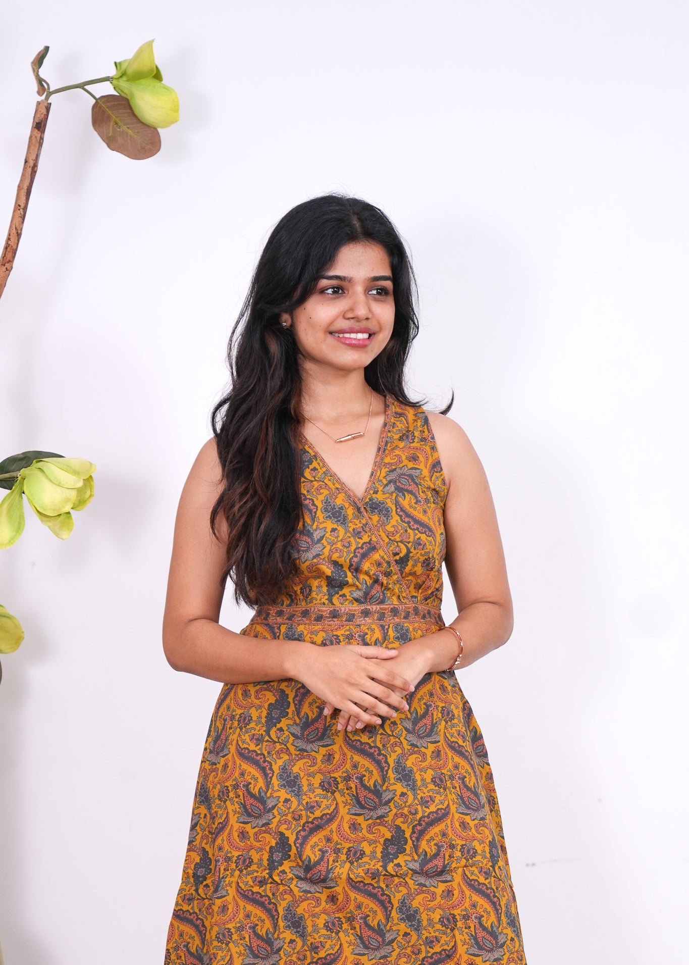 Ira cotton v neck gathered dress- Midnight blue(attached sleeves)