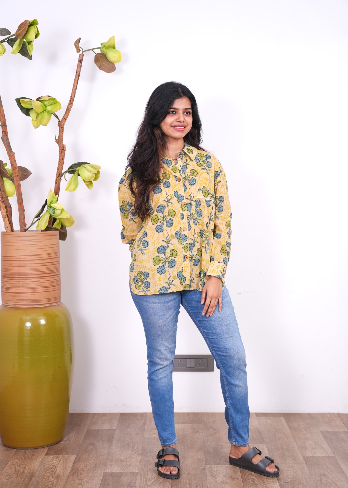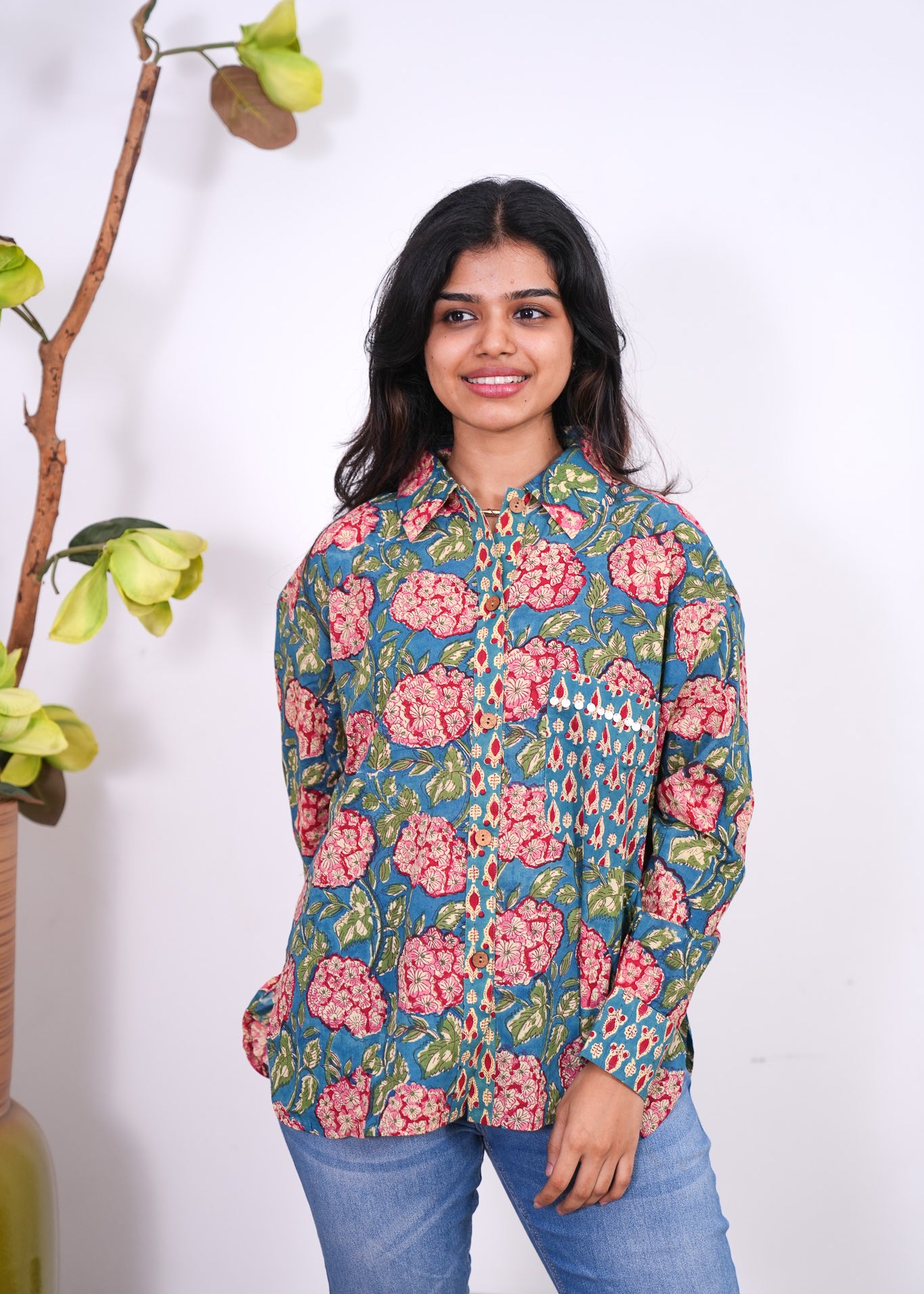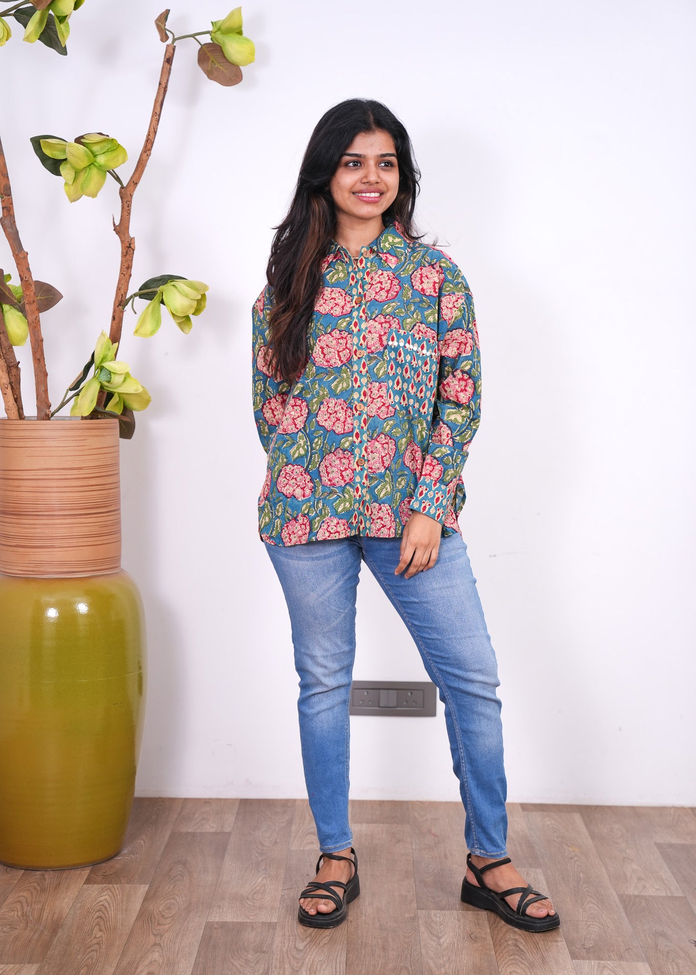 Ira cotton v neck gathered dress-Blue(attached sleeves)