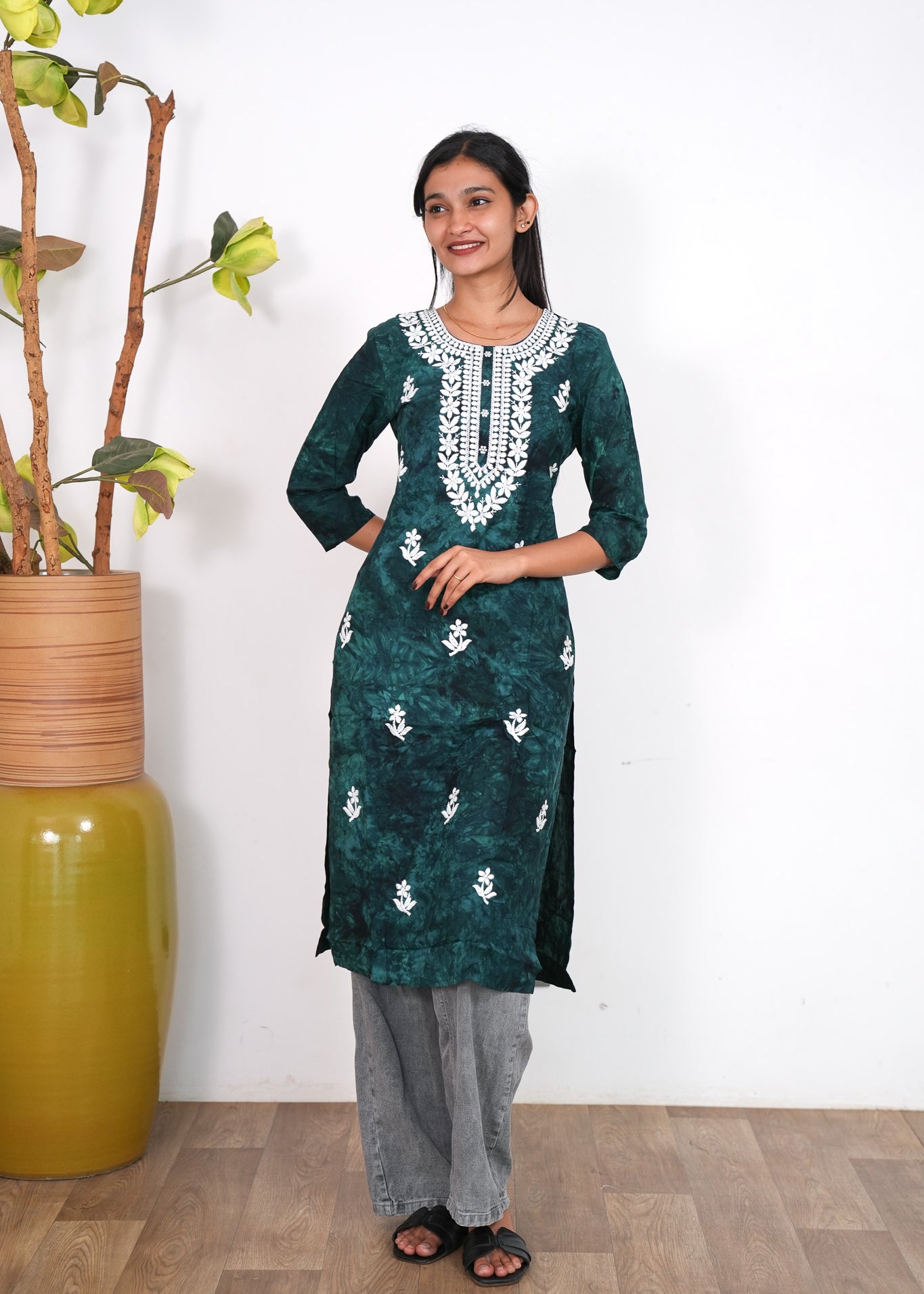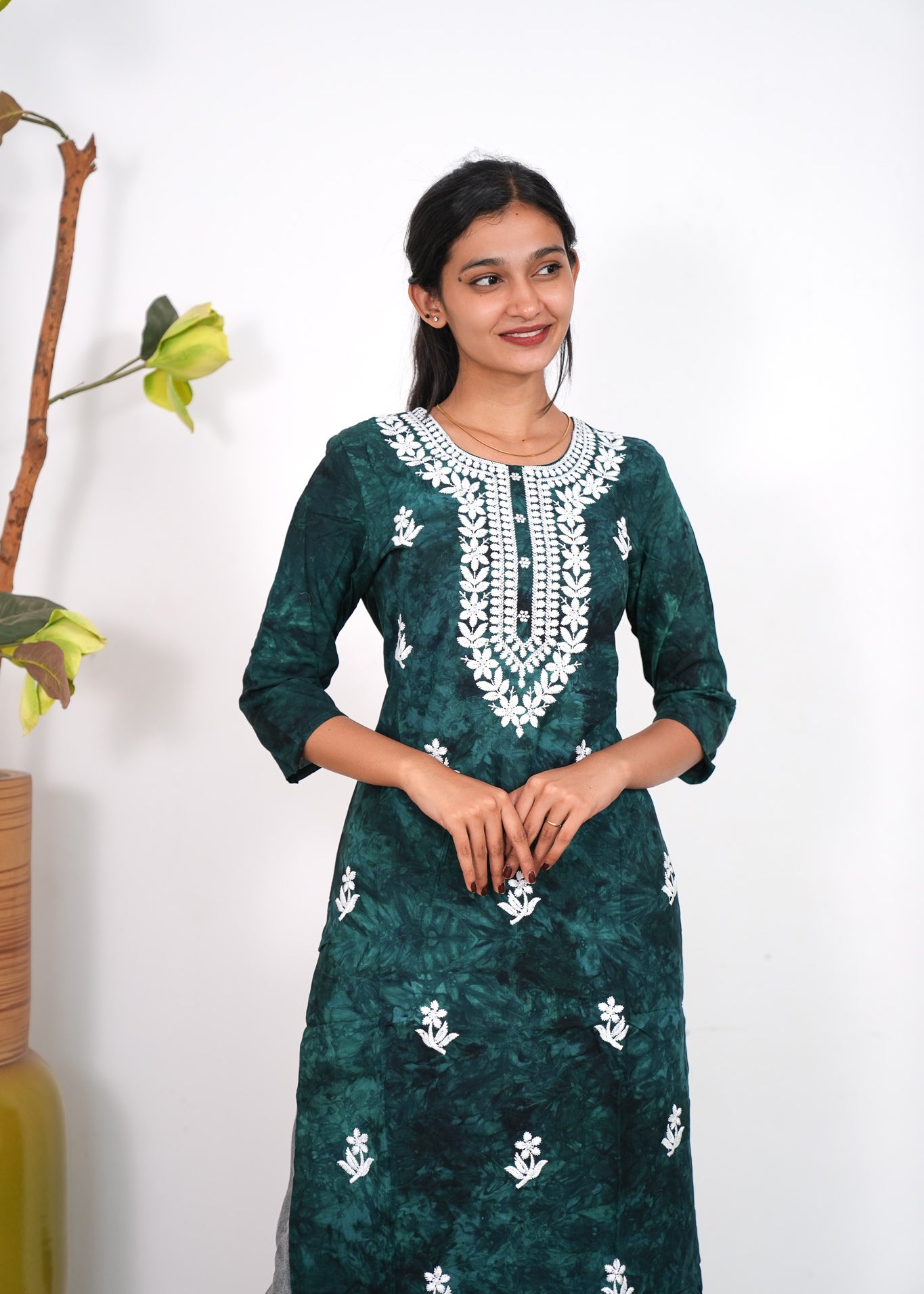 Forest green chikankari cotton kurti
