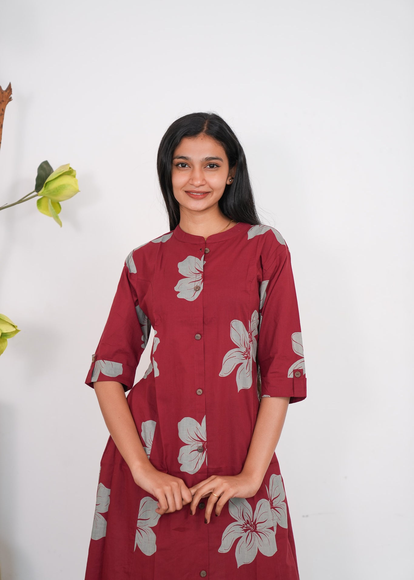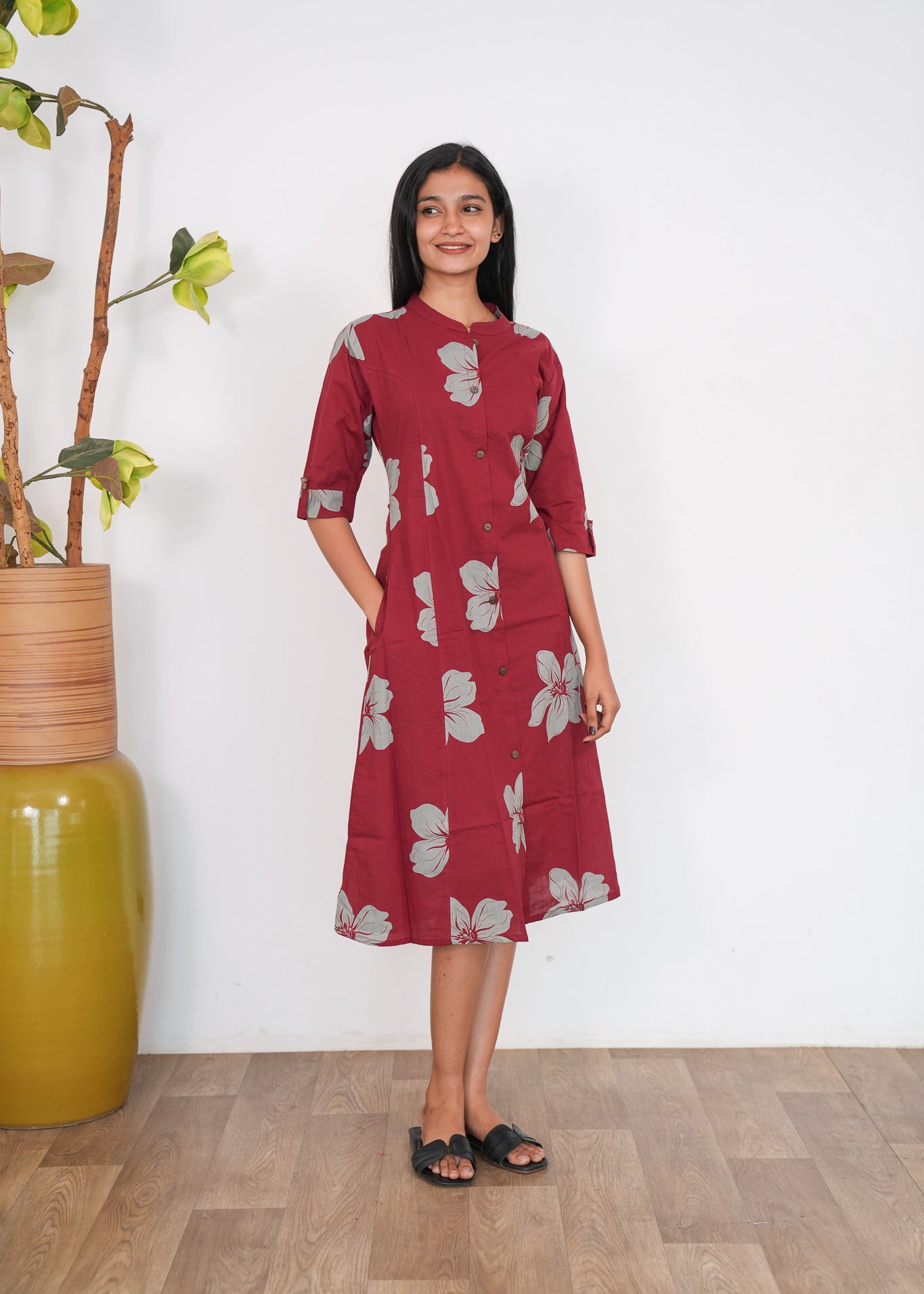 Lavender mandarin cotton shirt dress ( attached sleeves)