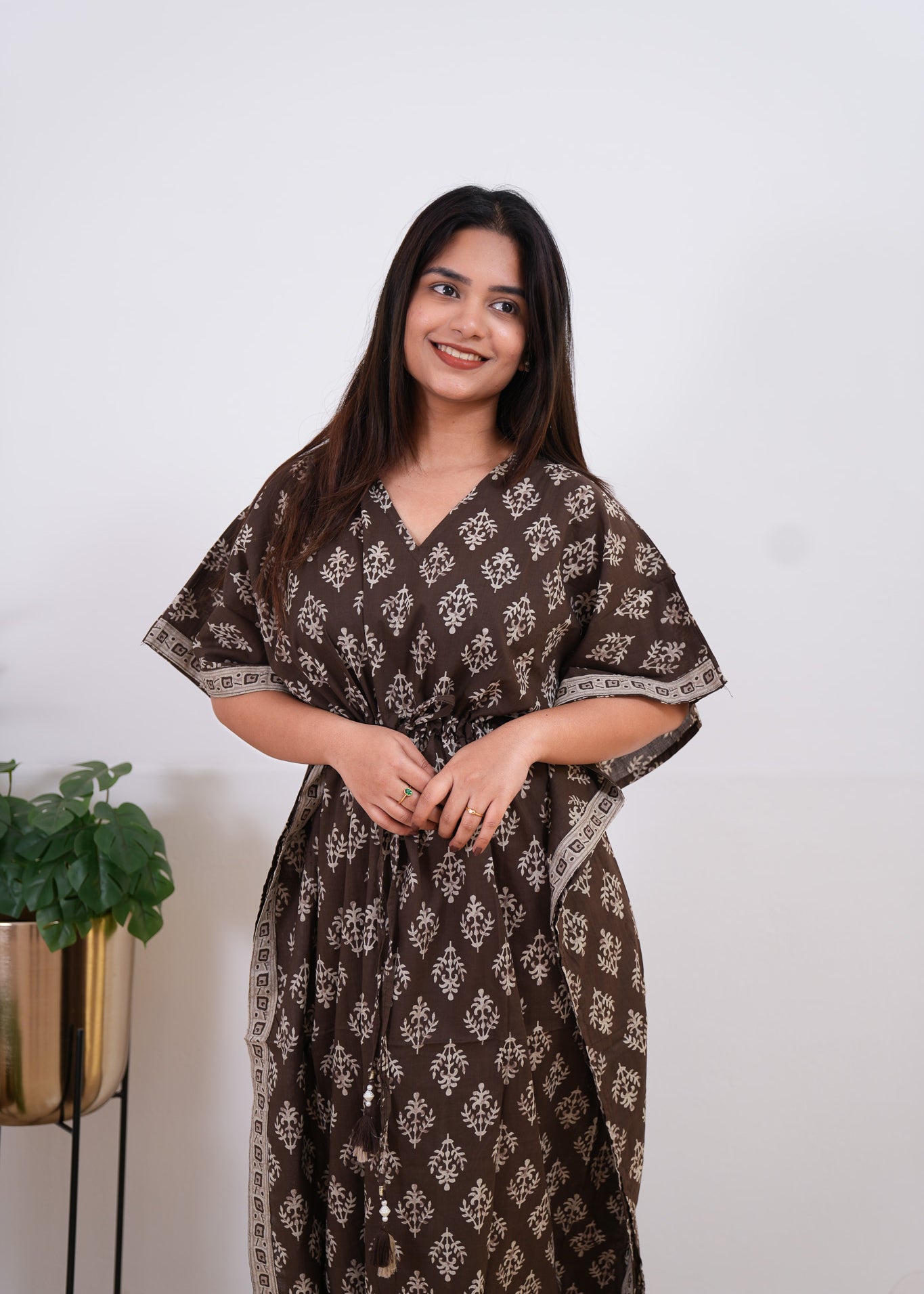 Coffee hand block pure cotton kaftan