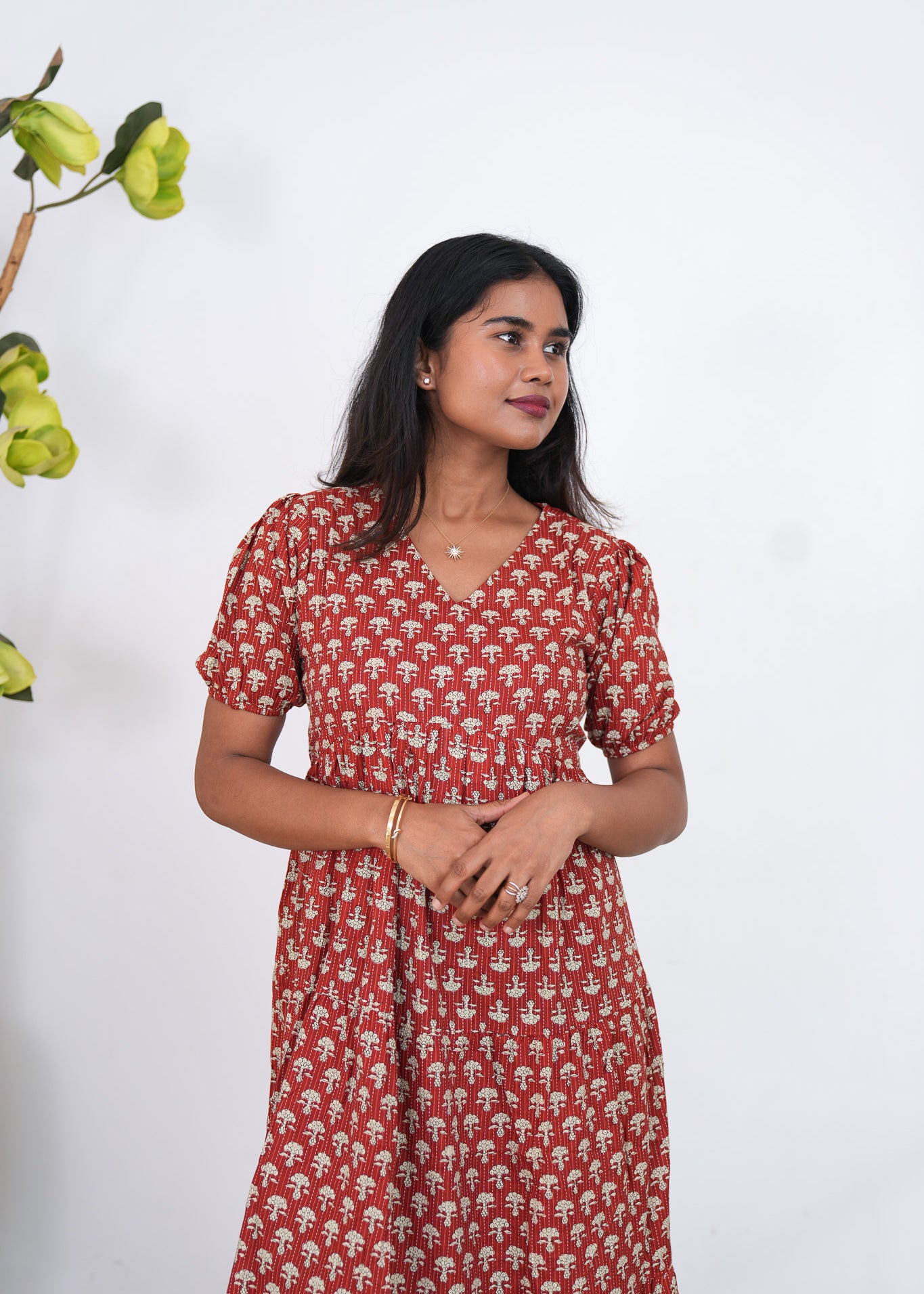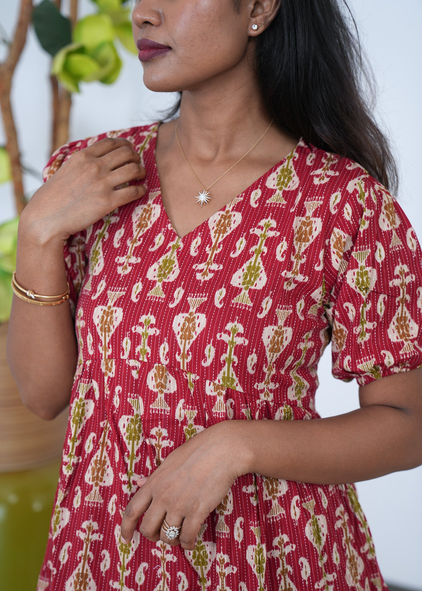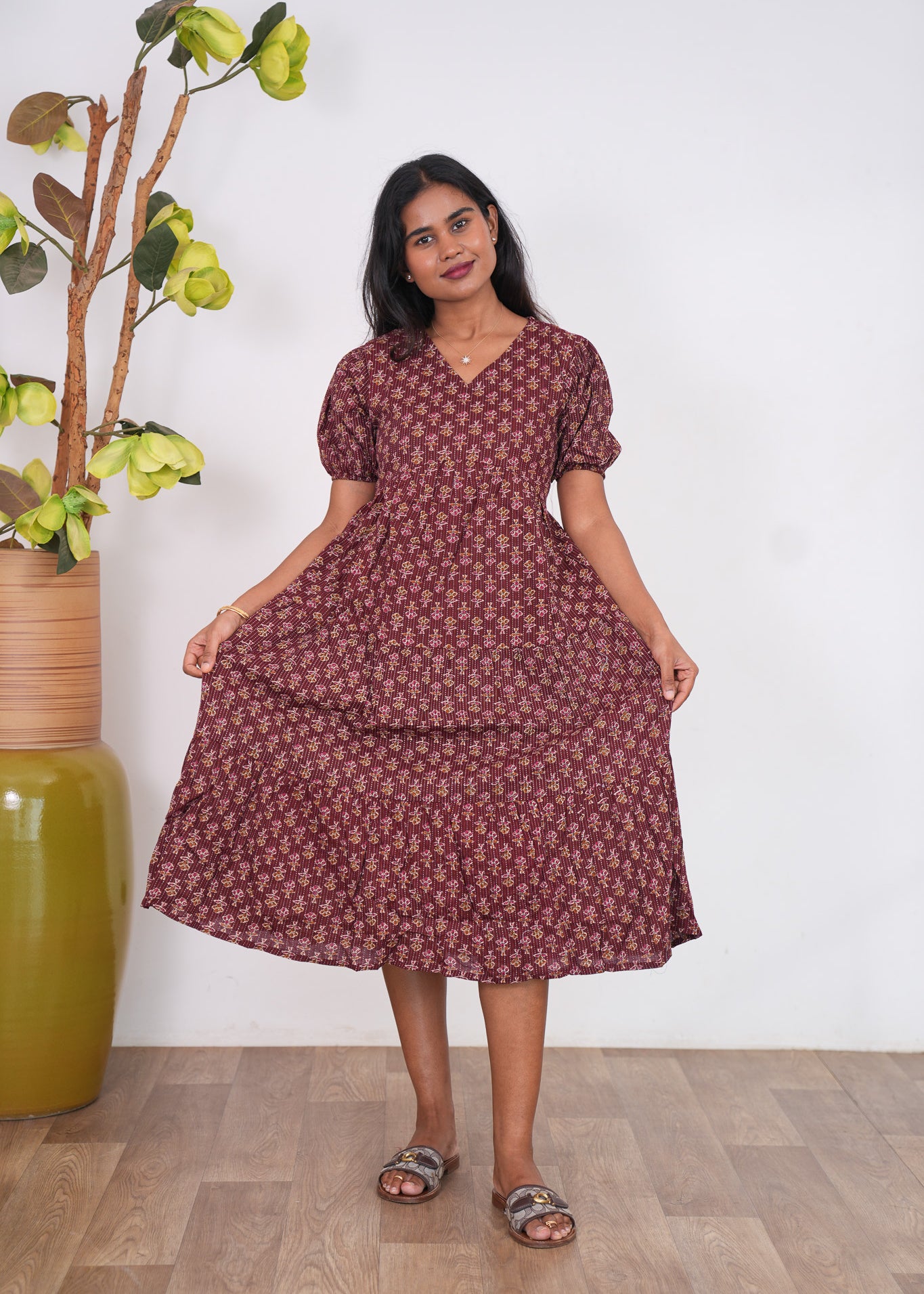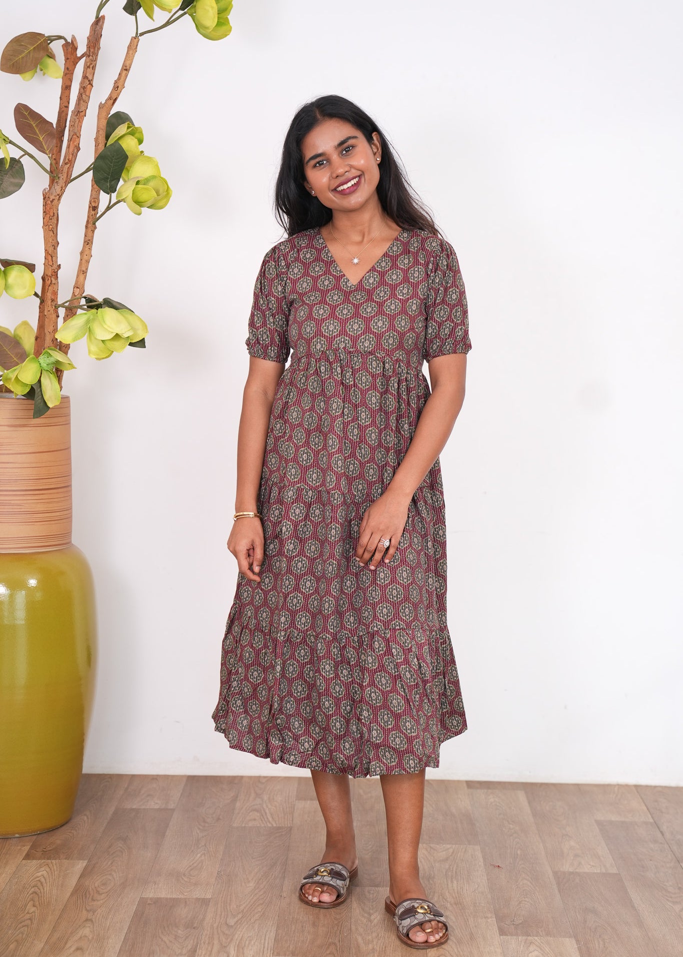 Maroon katha cotton midi dress