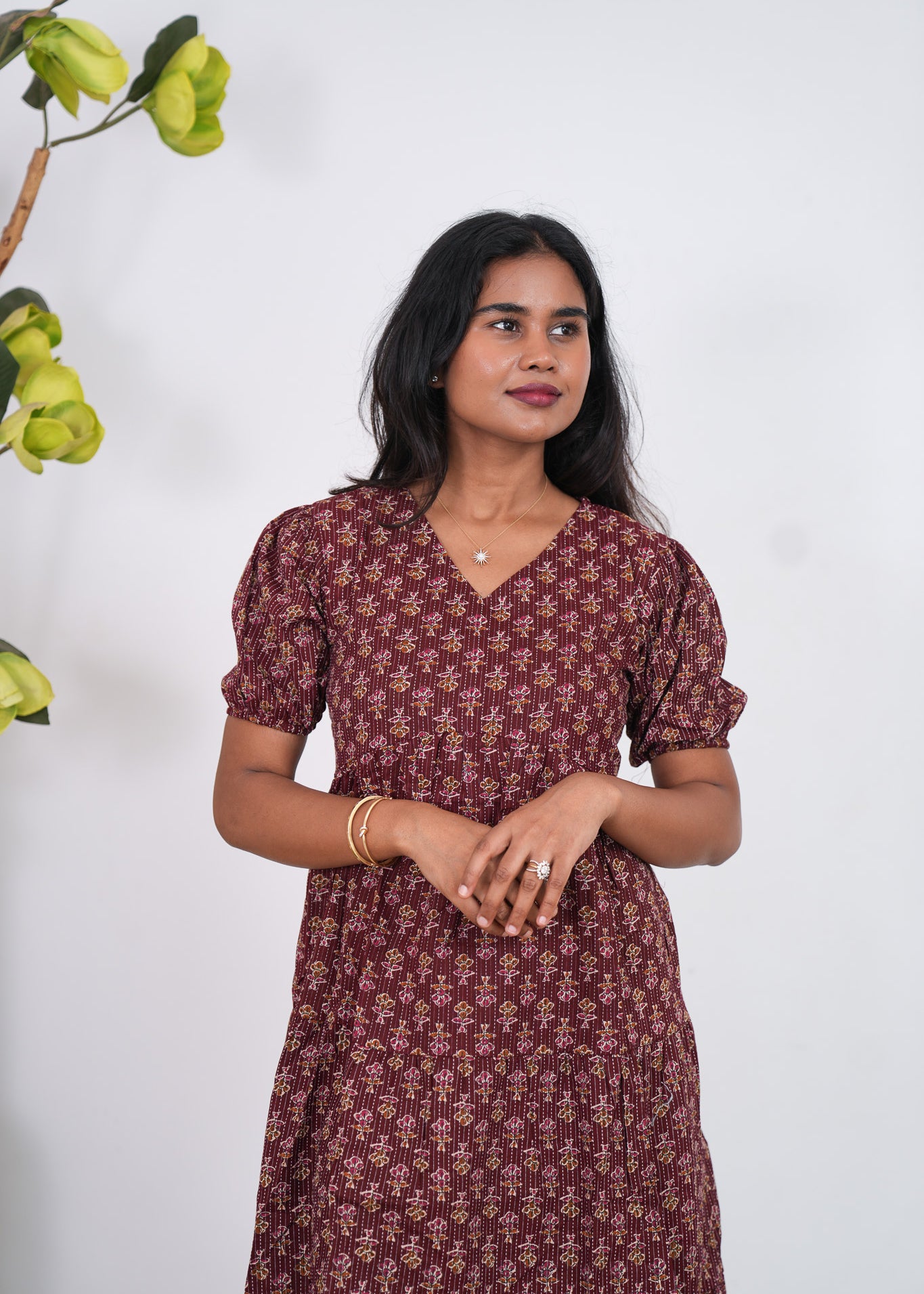 Plum katha cotton midi dress