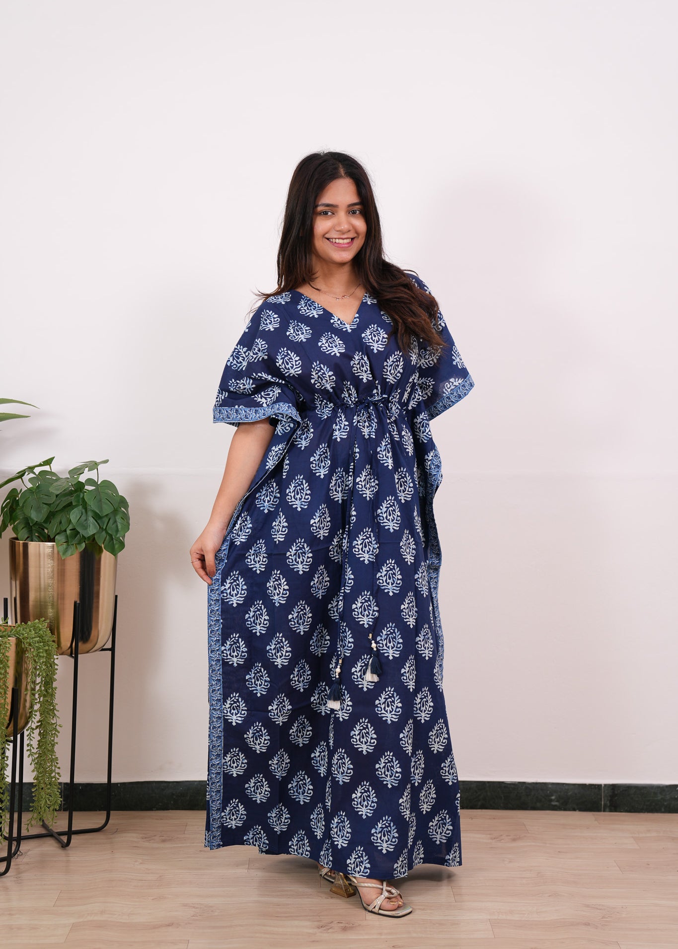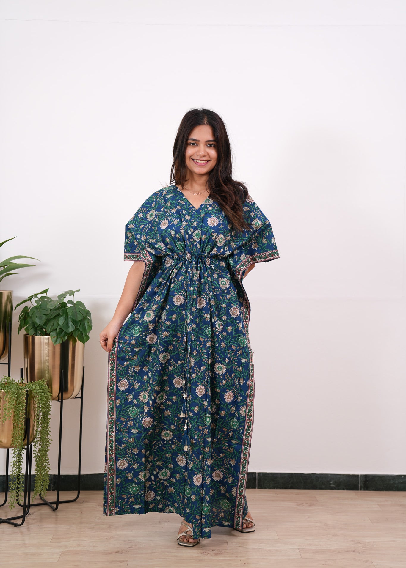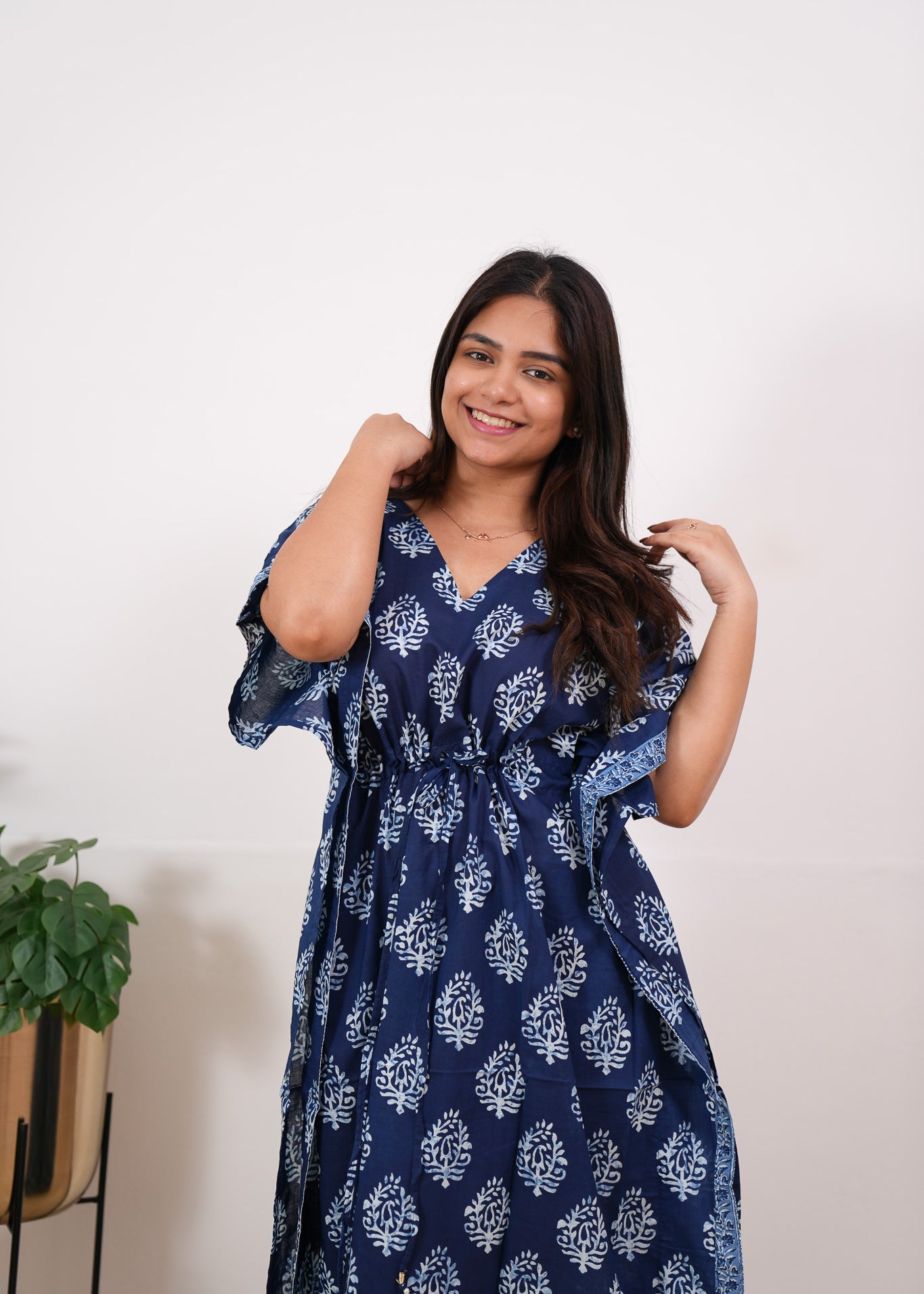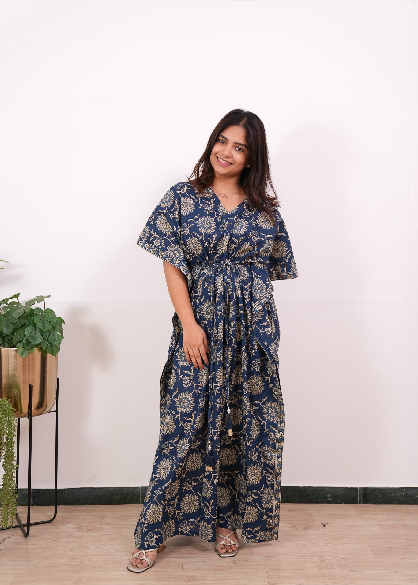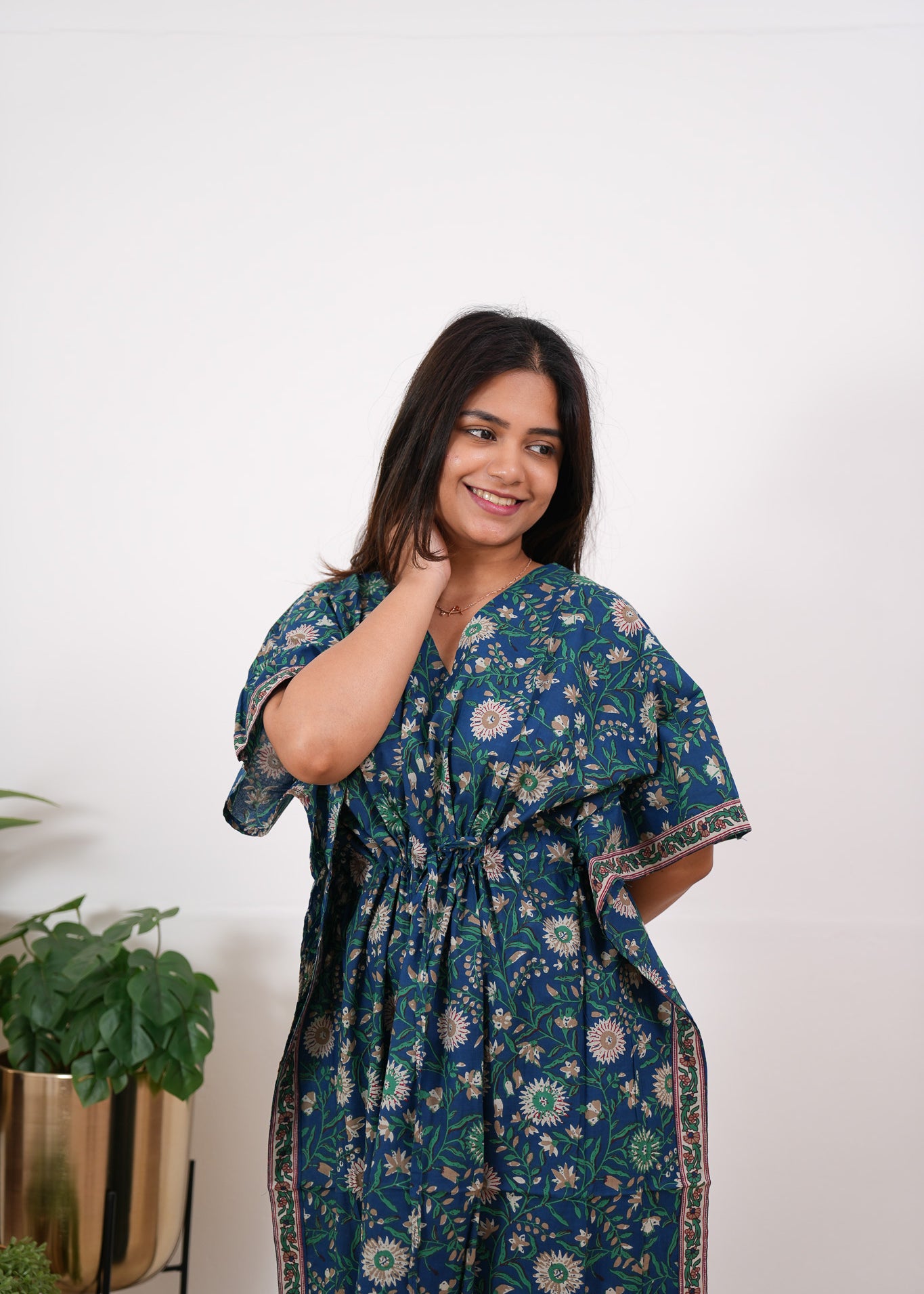Ira cotton v neck gathered dress-Royal elephant(attached sleeves)