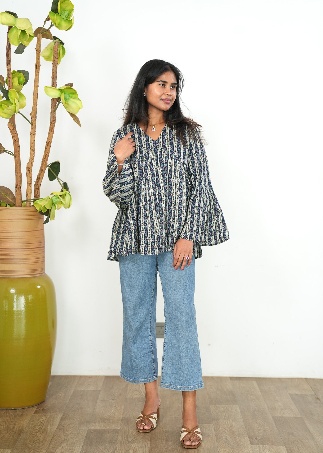 Navy stripes cotton short kurti
