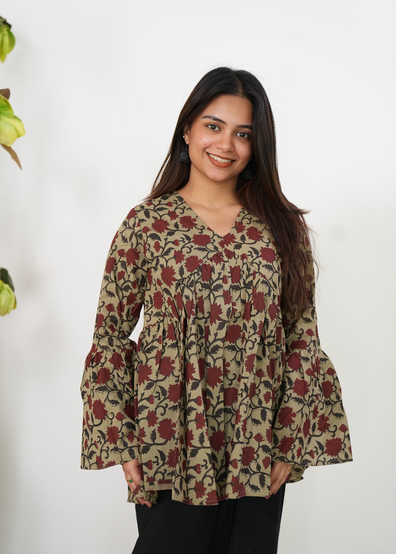 Meryl v neck cotton short kurti -Crimson