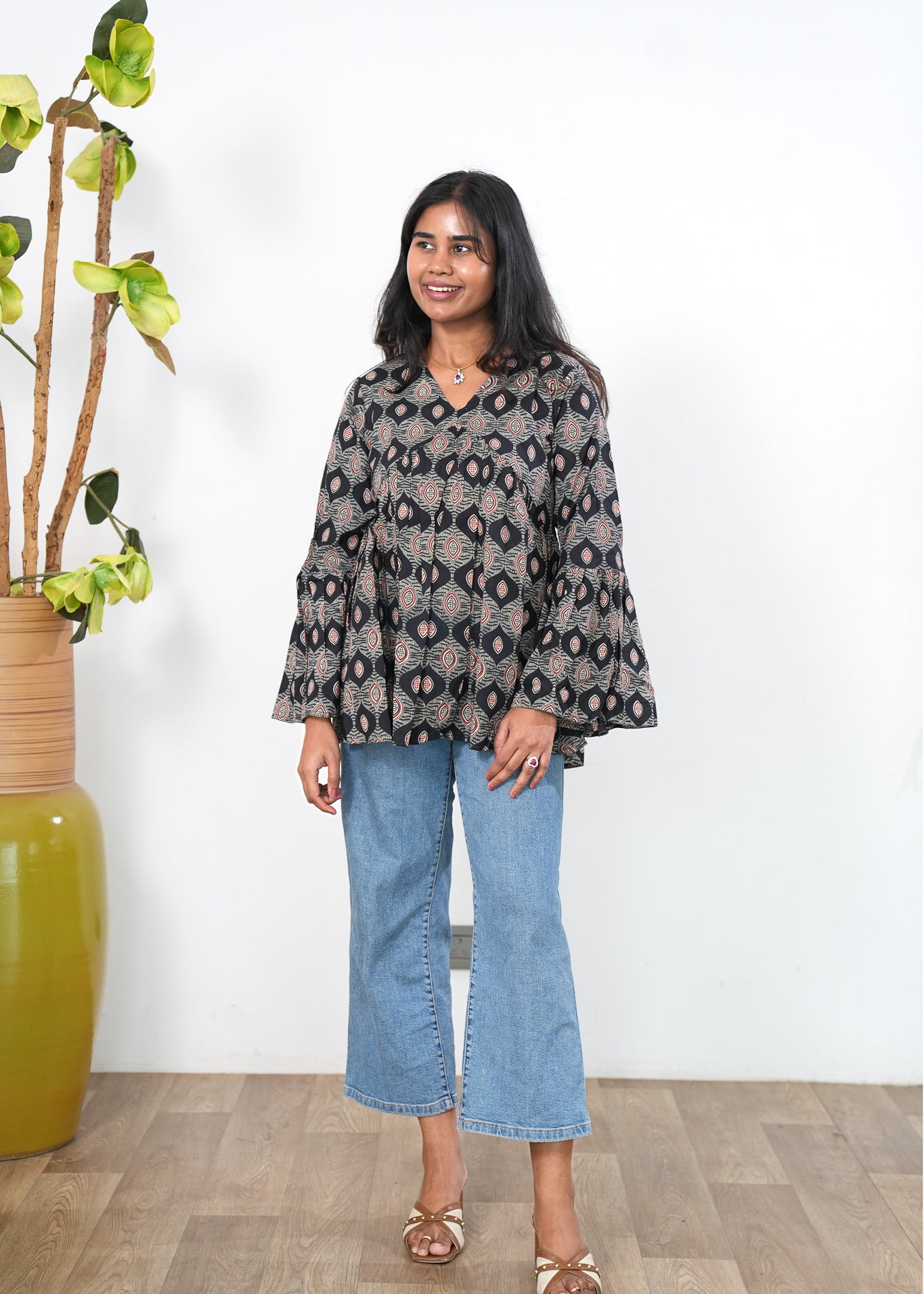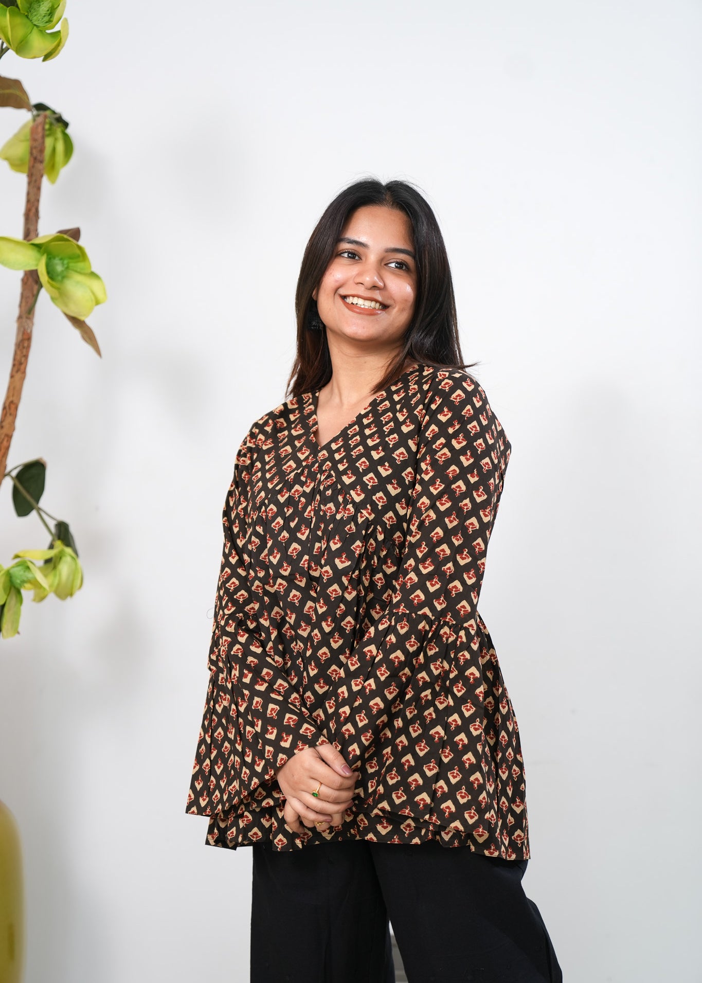 Black lantern cotton short kurti