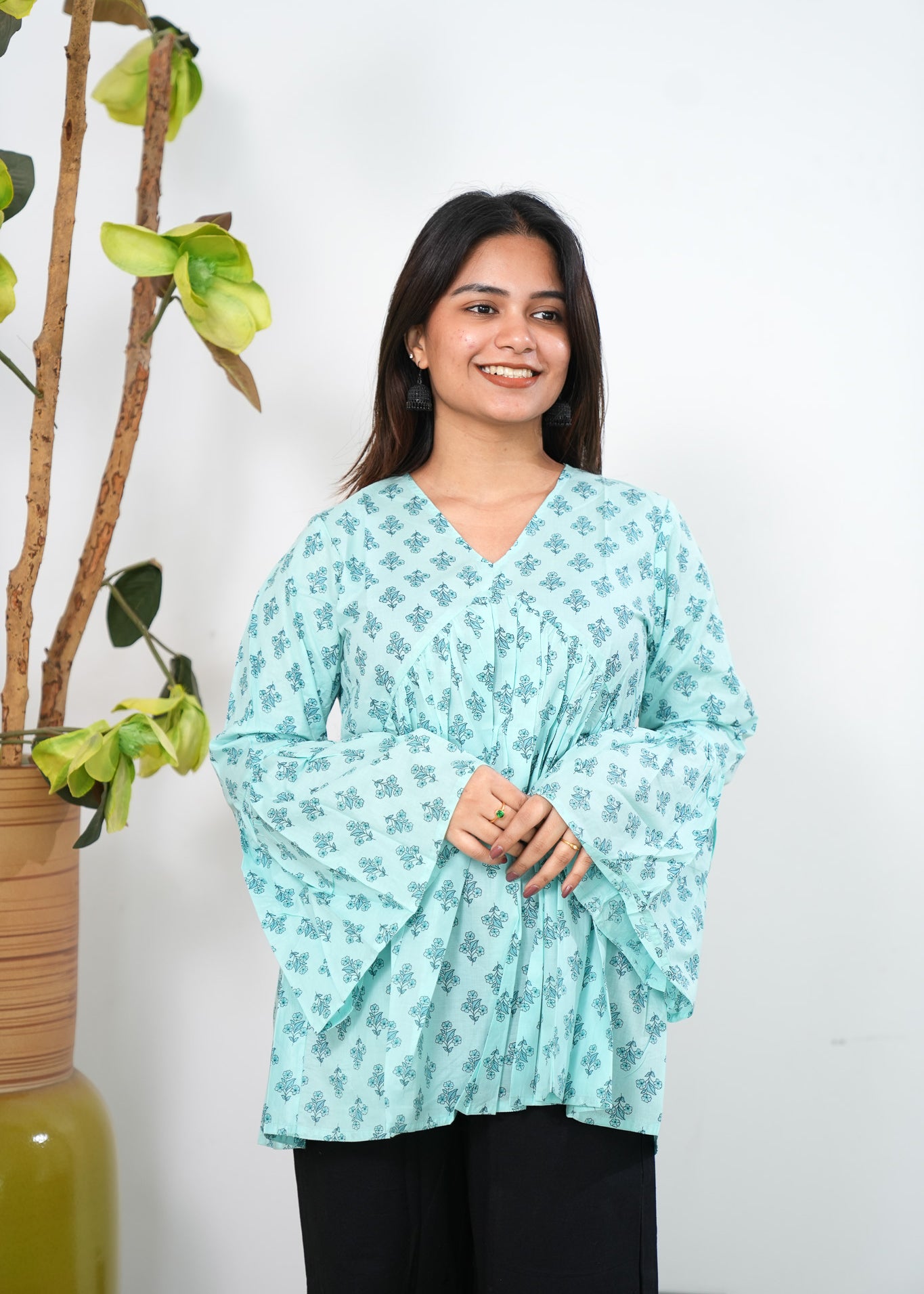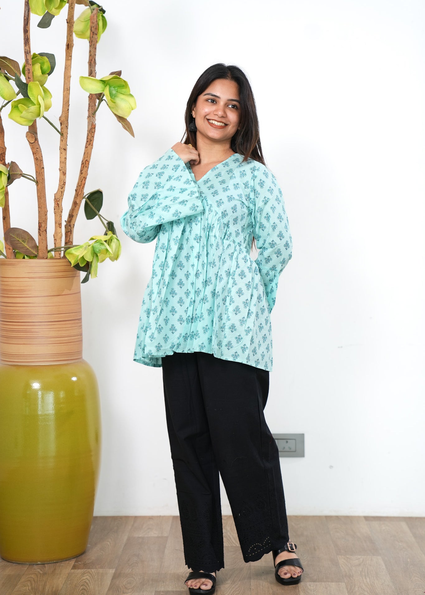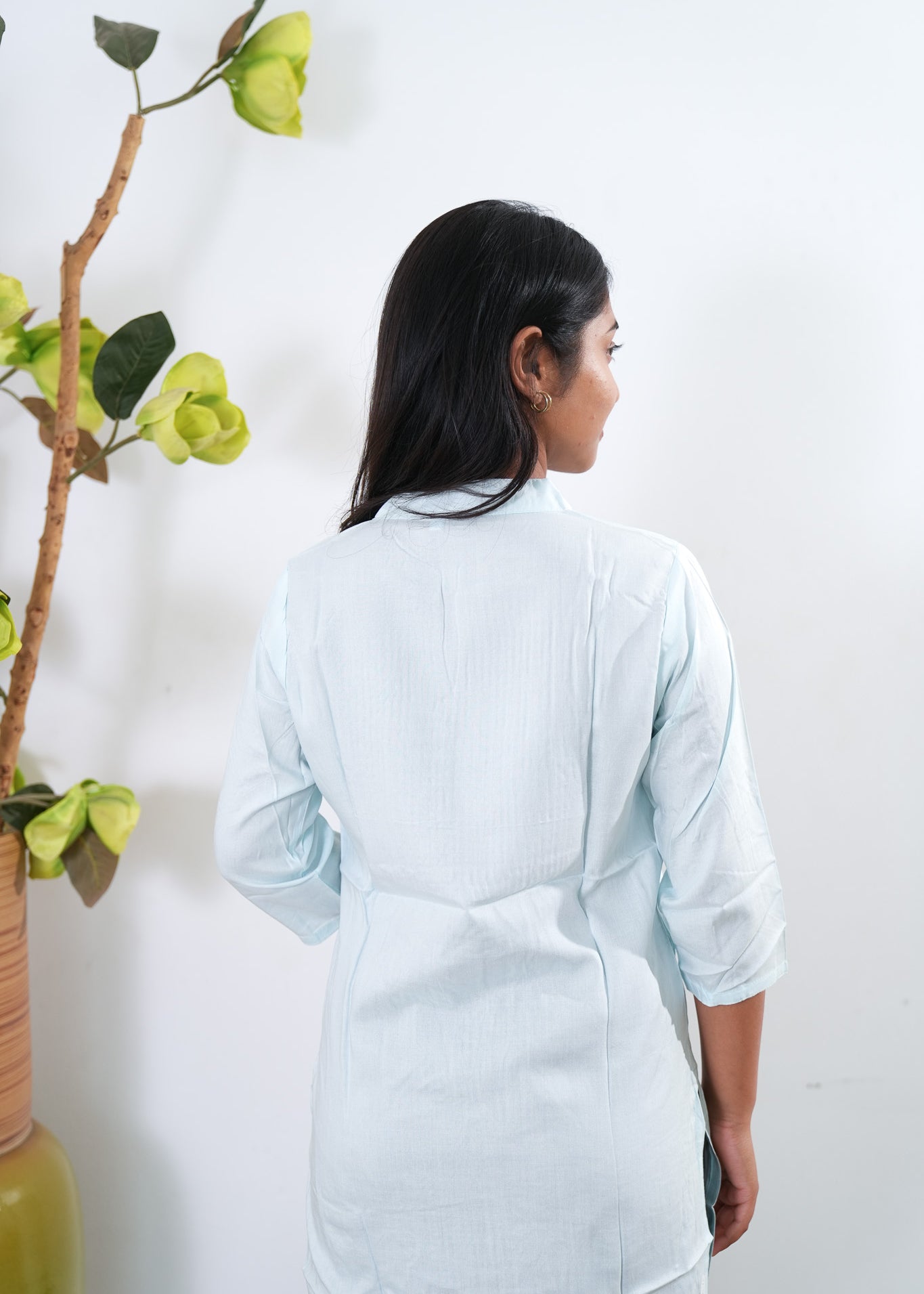 Baby blue cotton short kurti