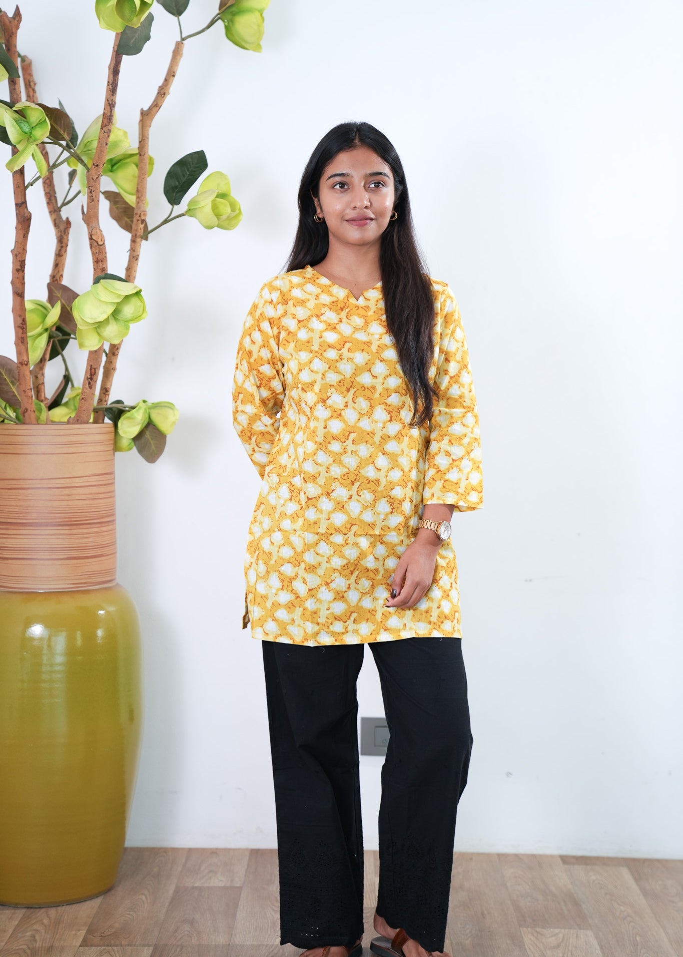 Mustard cotton short kurti