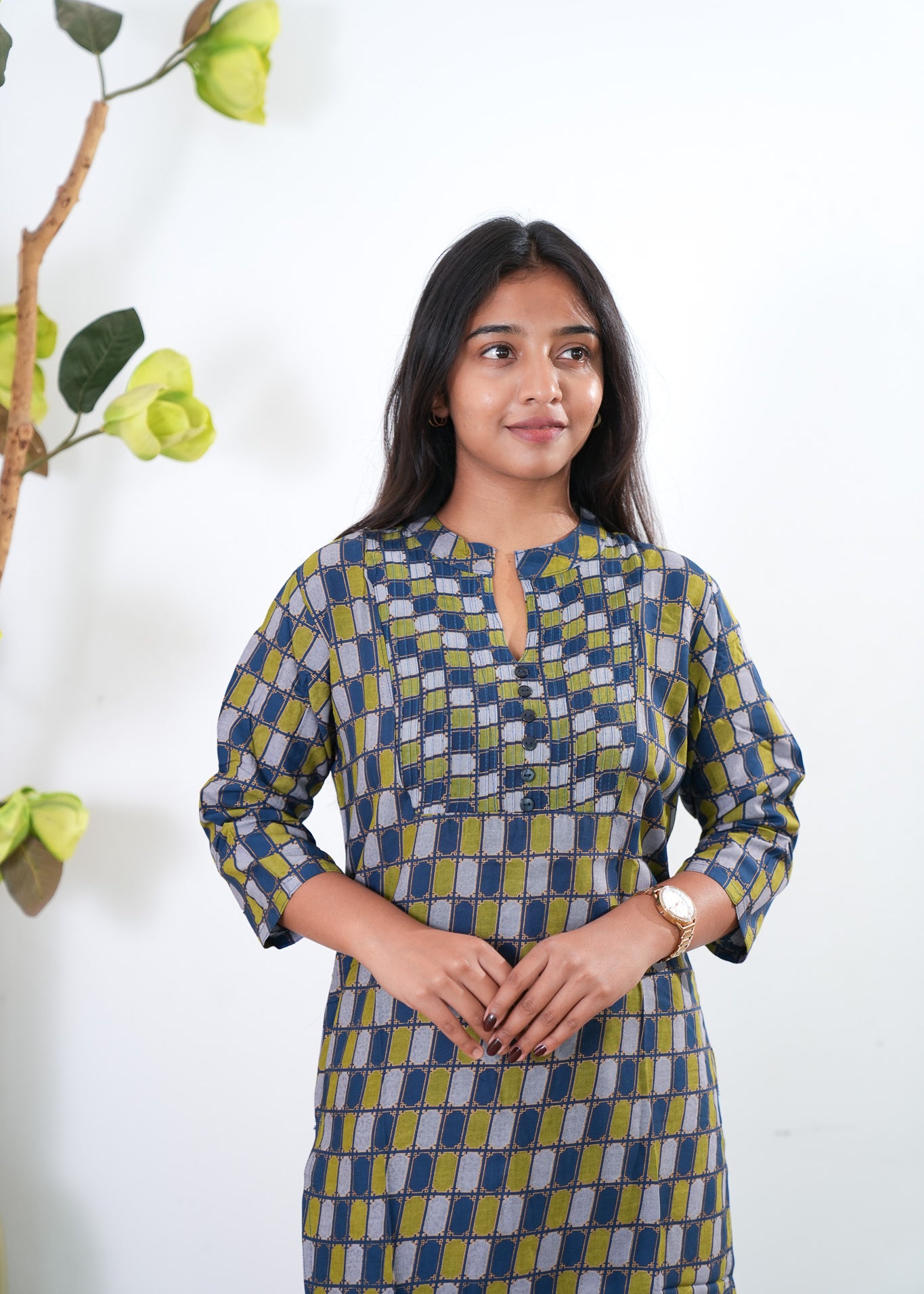 Lime green pintex cotton short kurti