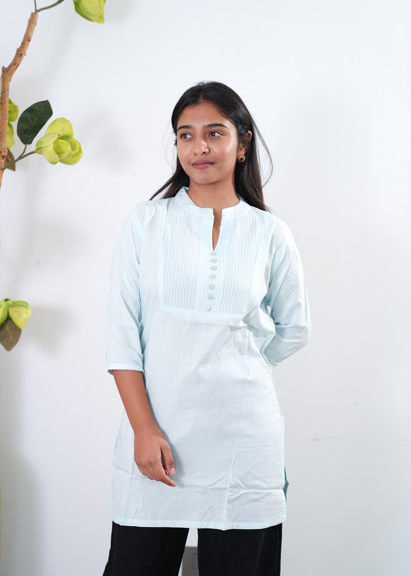 Powder blue pintex cotton short kurti