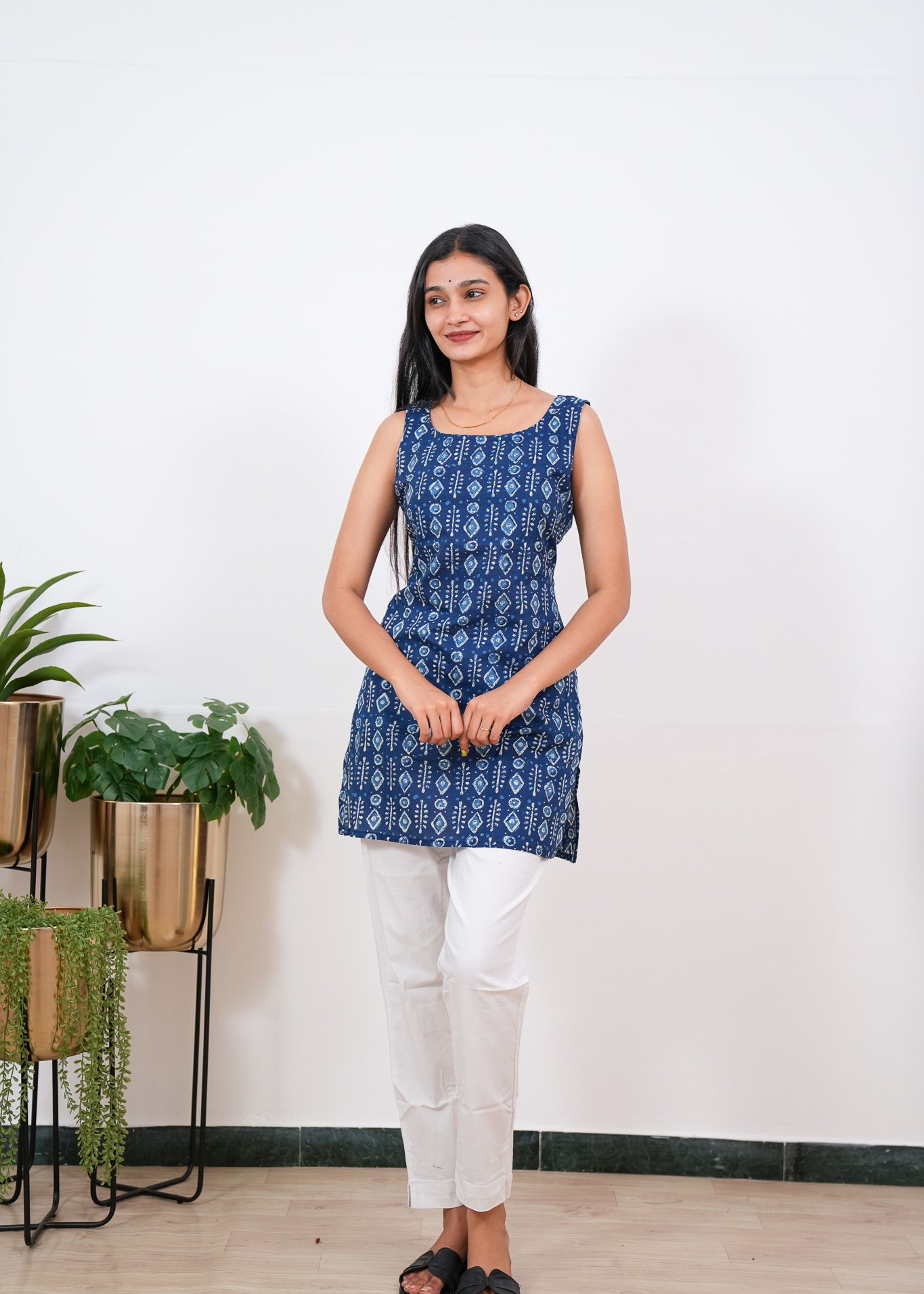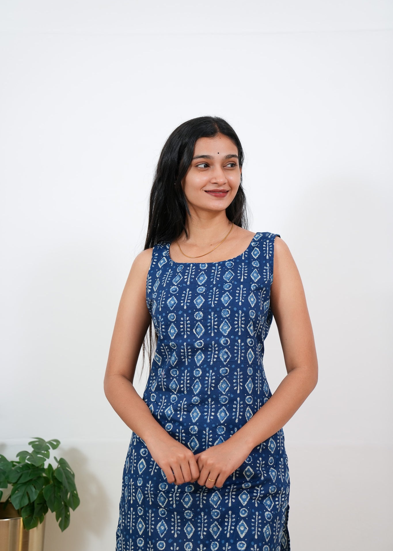 Ritu cotton tunic (attached sleeves) - Navy blue