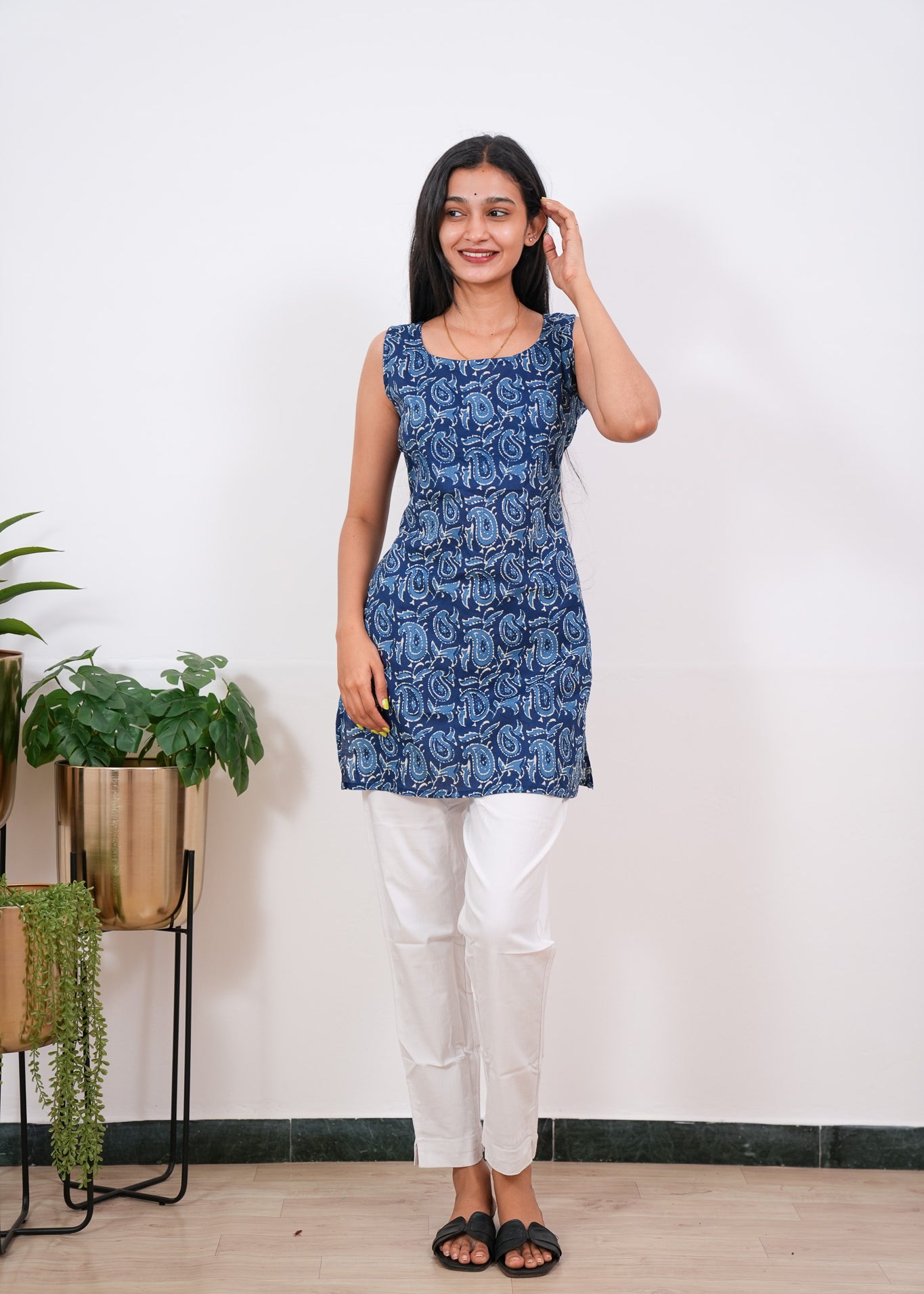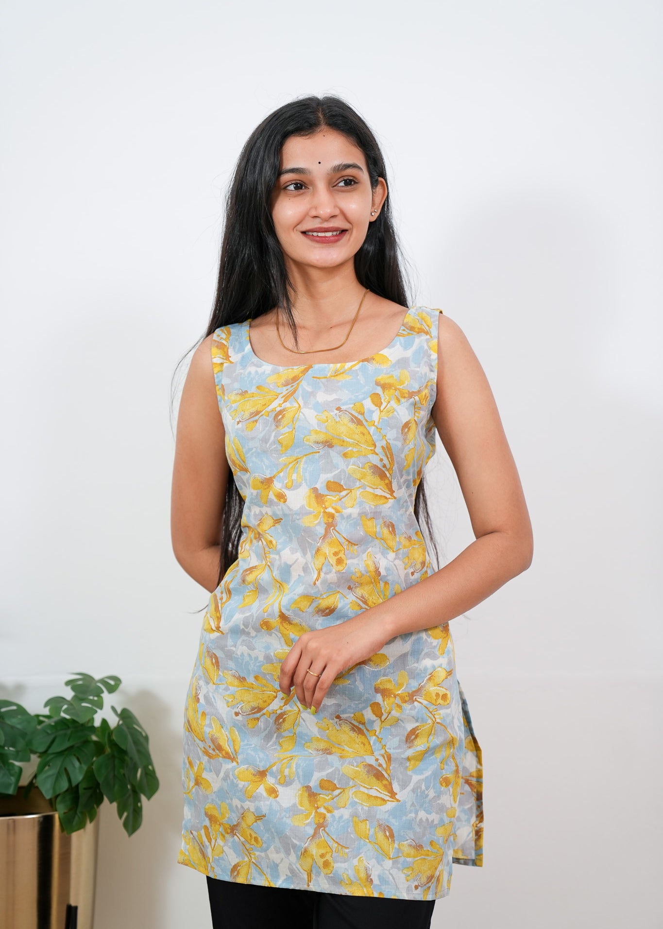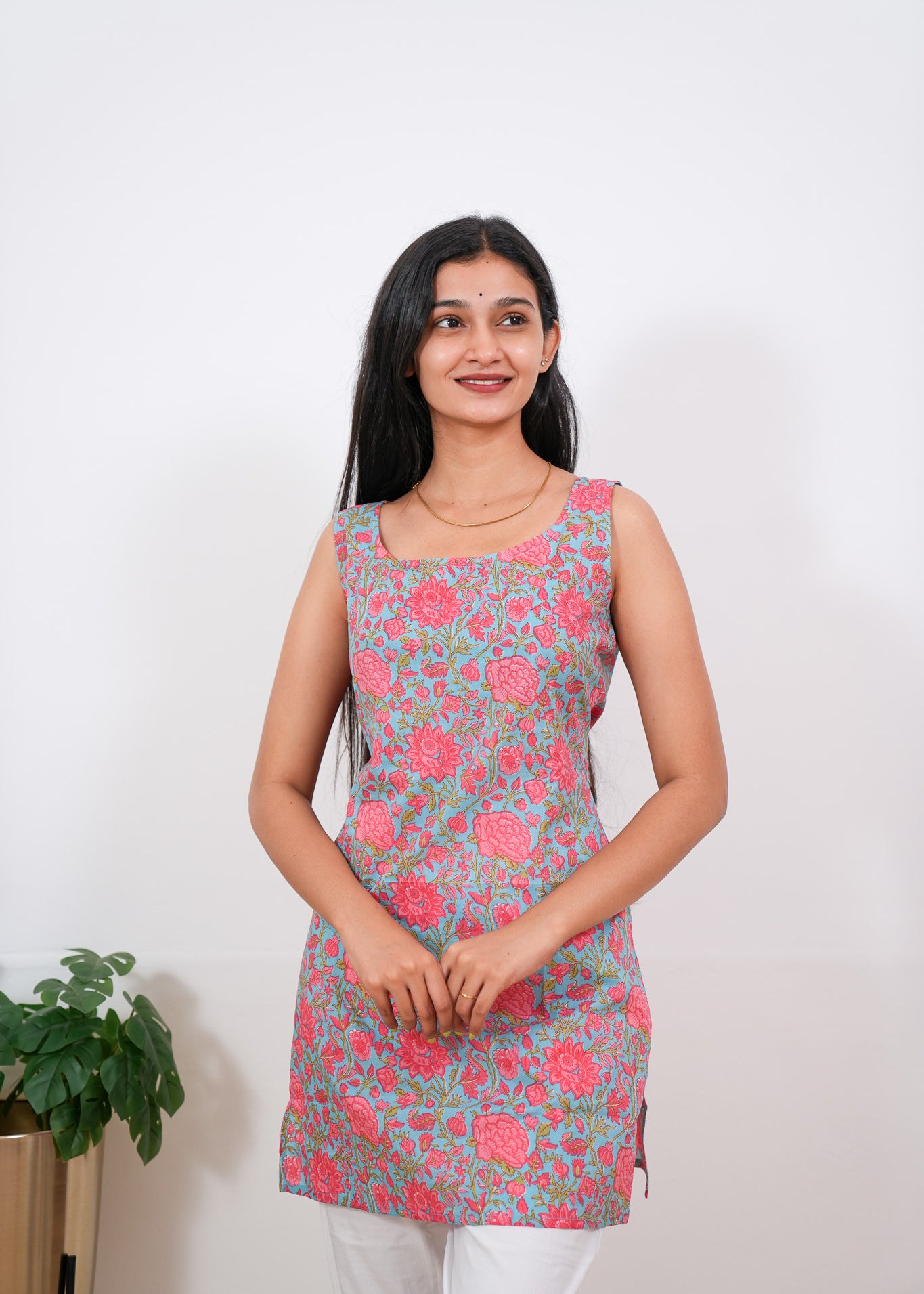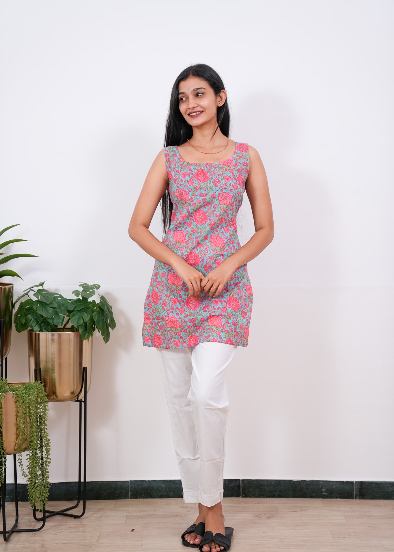 Ritu cotton tunic(attached sleeves) - Baby blue