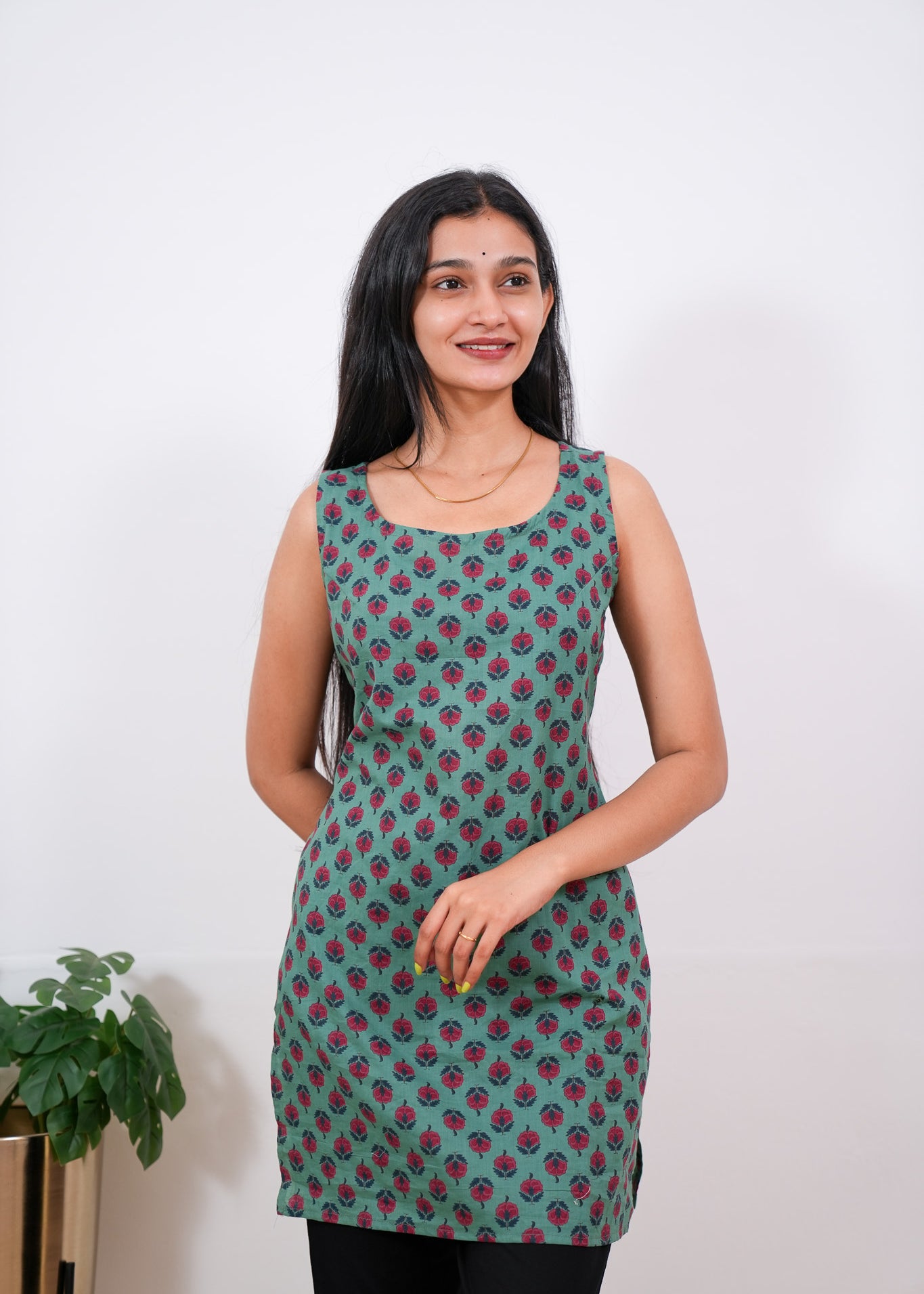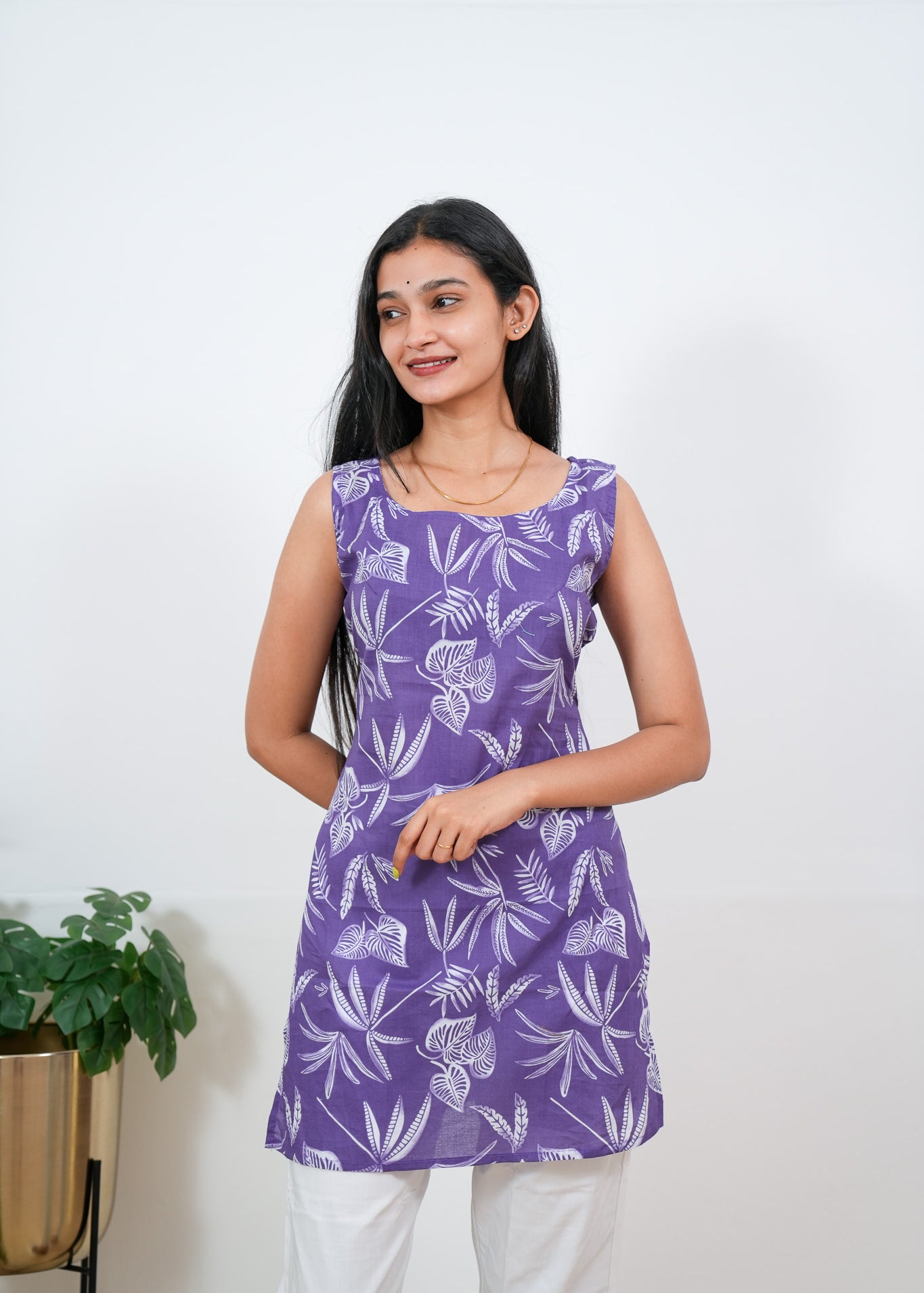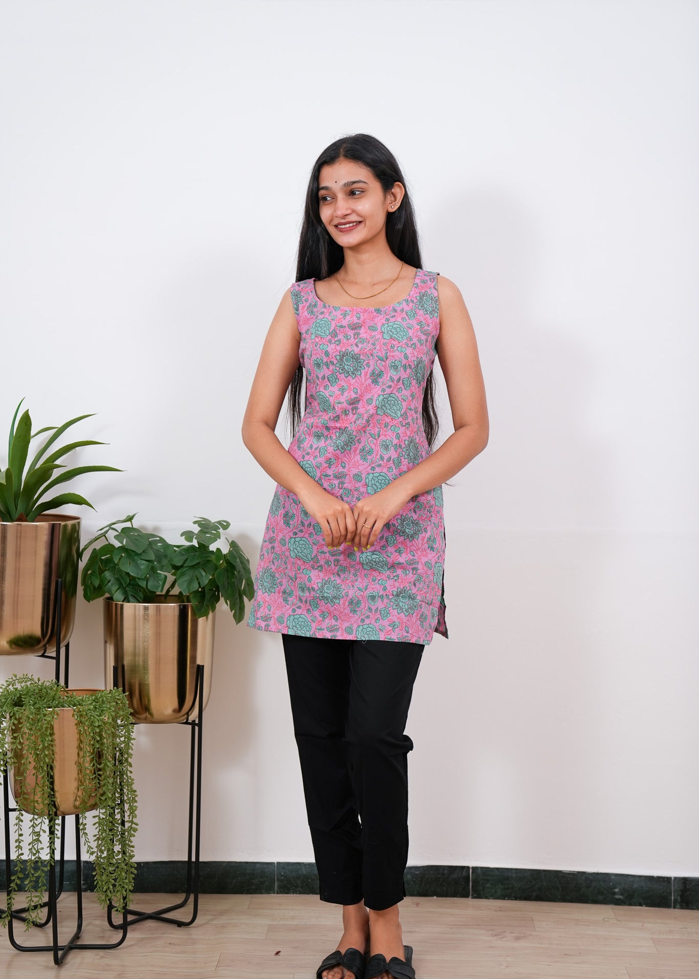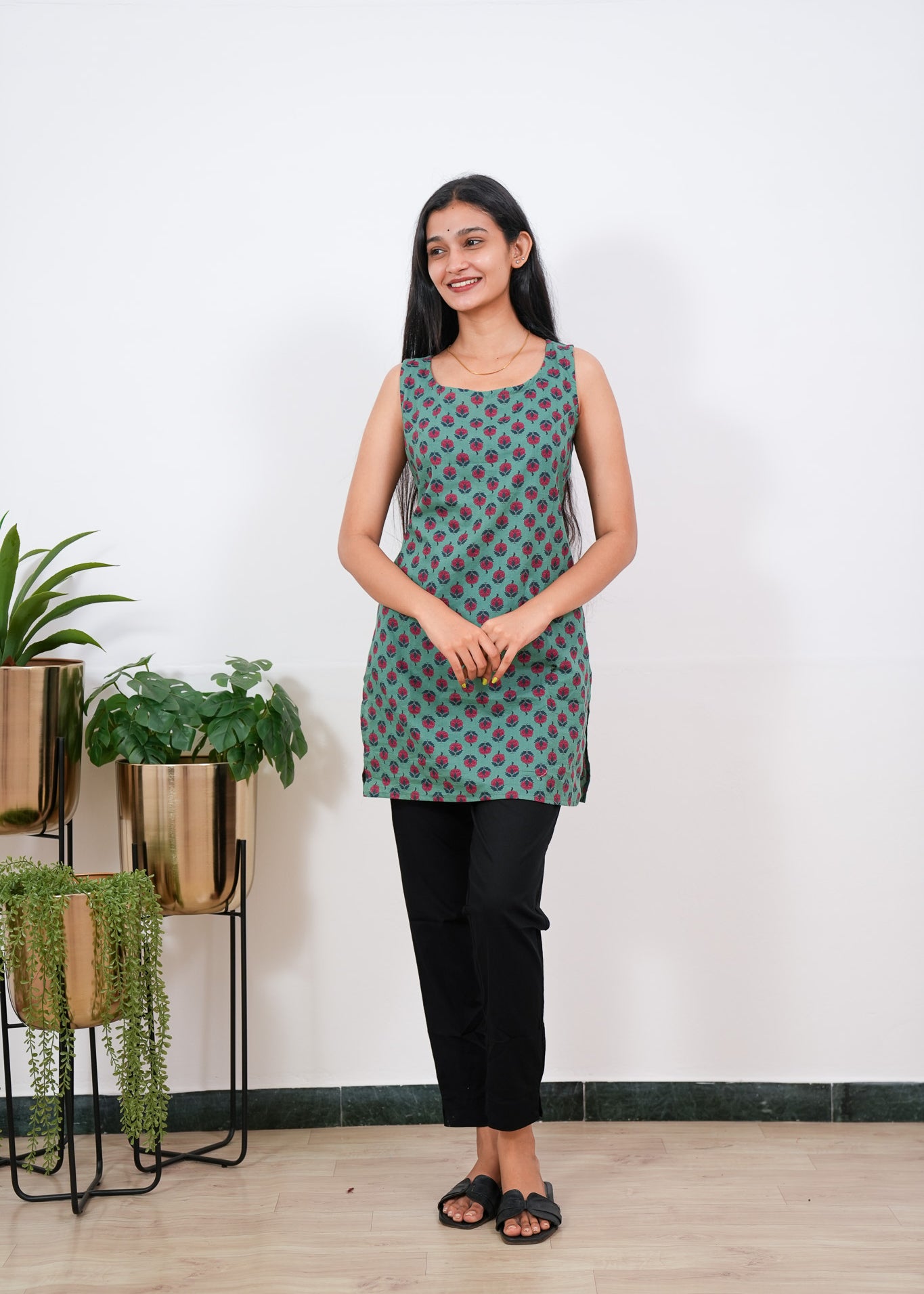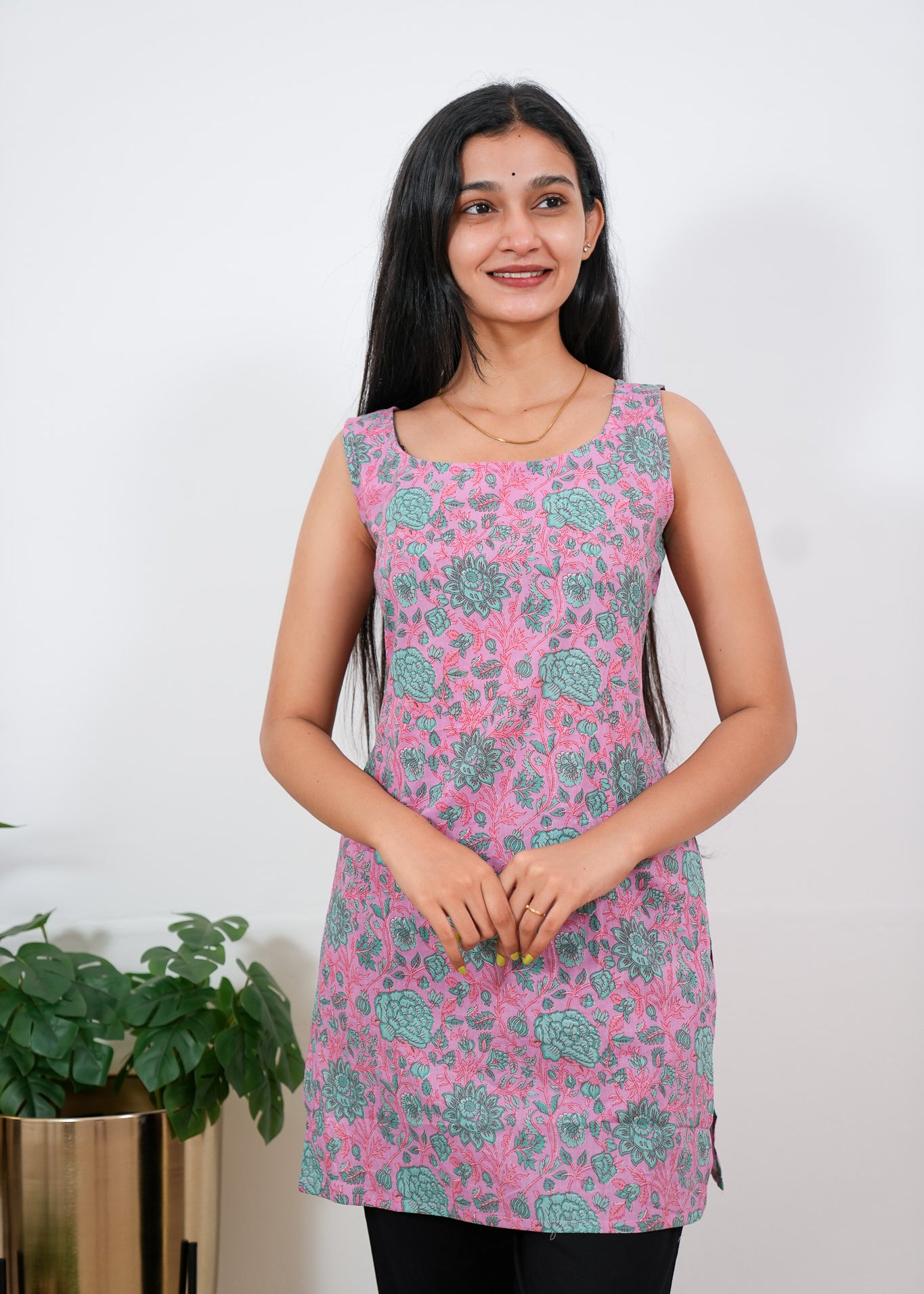 Ritu cotton tunic(attached sleeves) - Baby blue