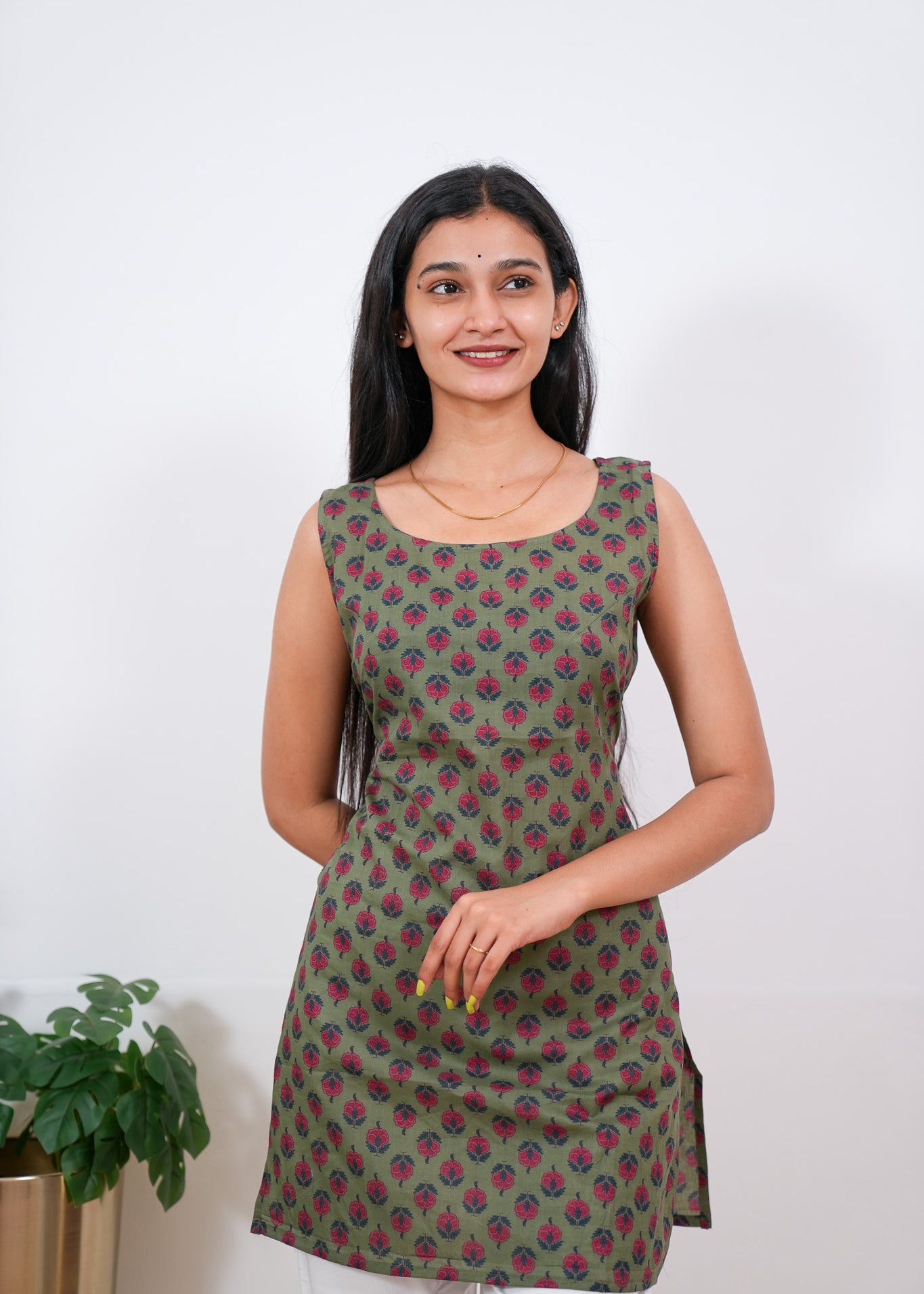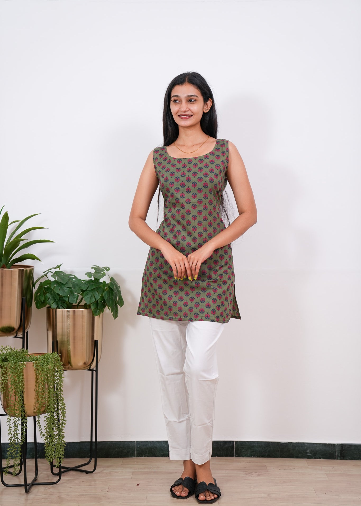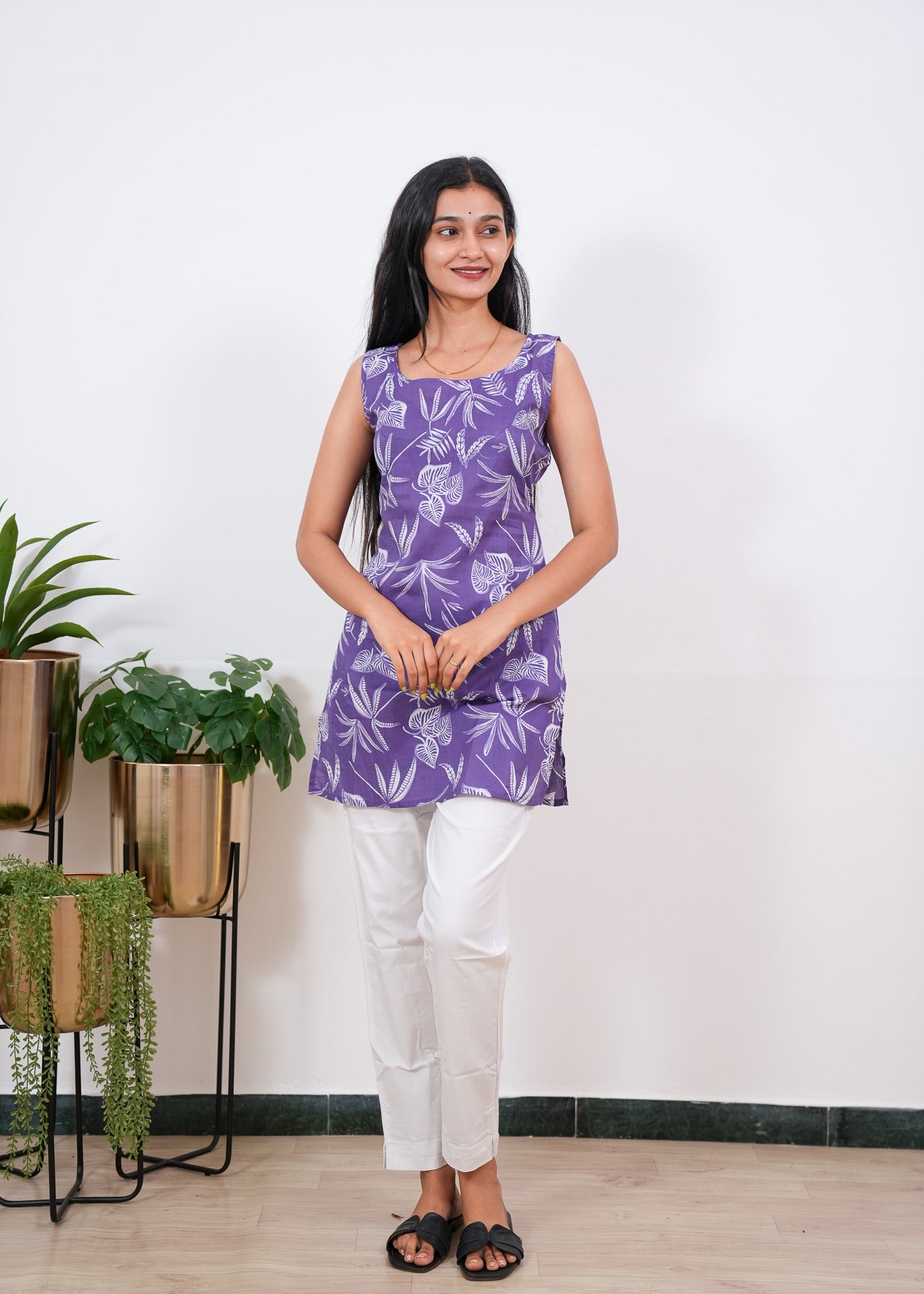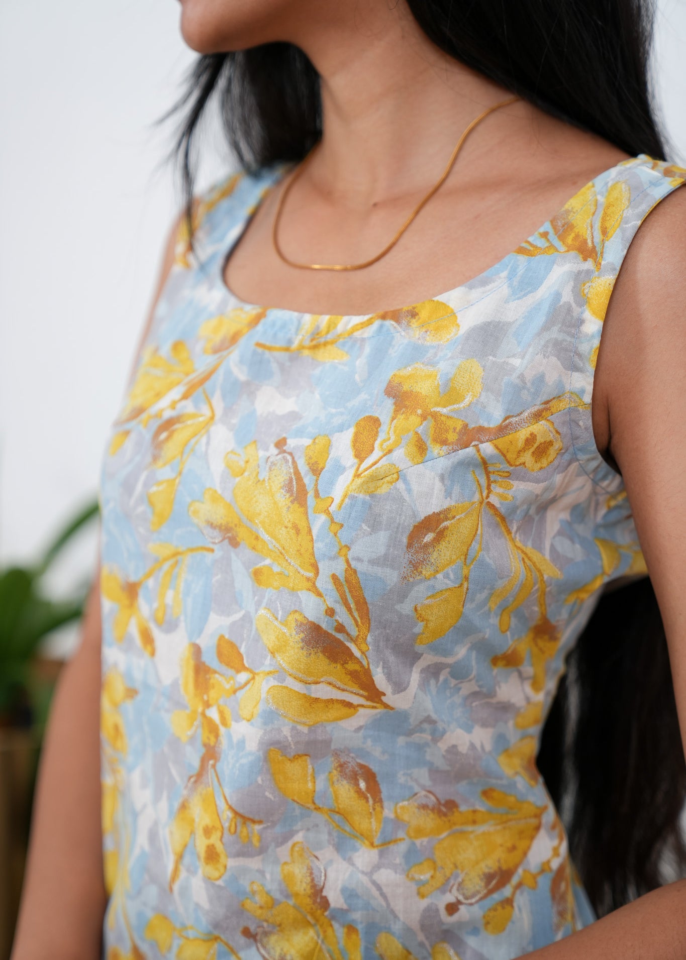 Ritu cotton tunic(attached sleeves) - Baby blue