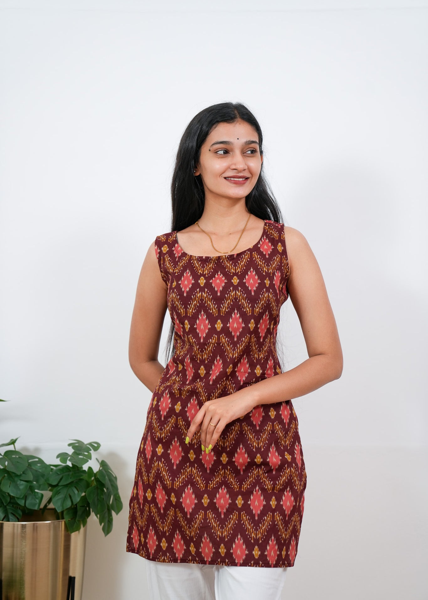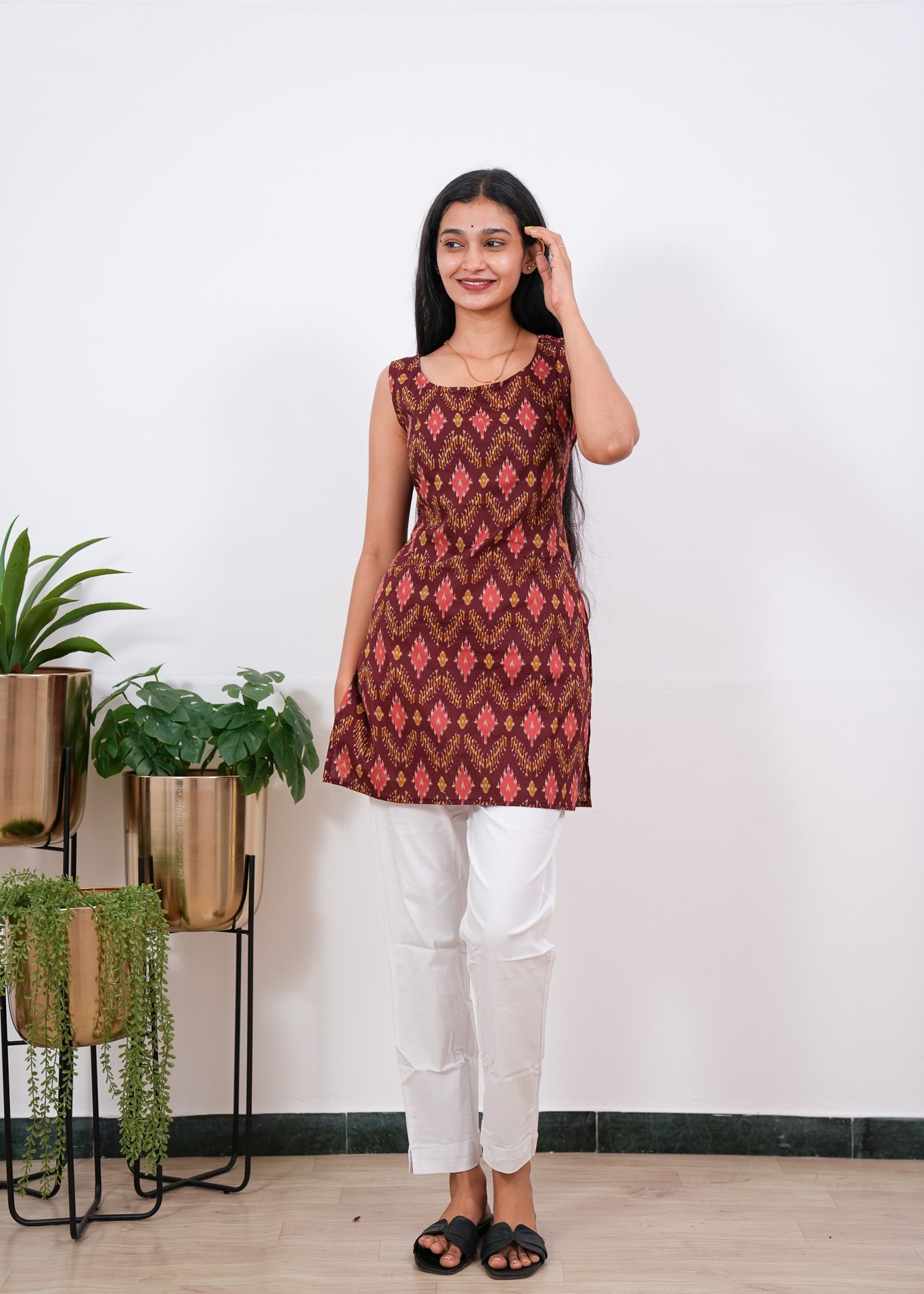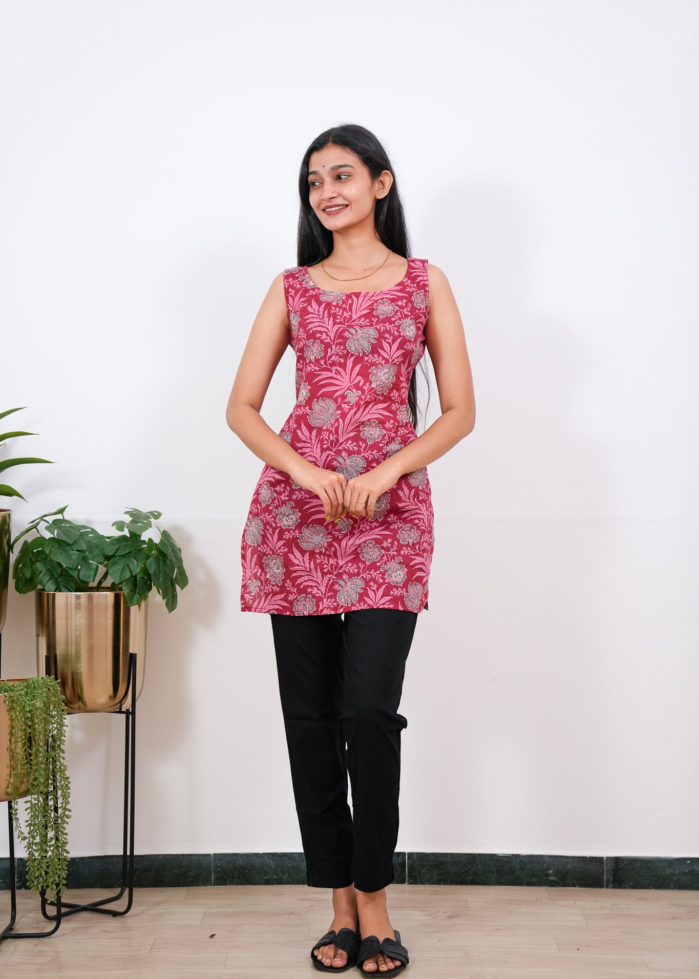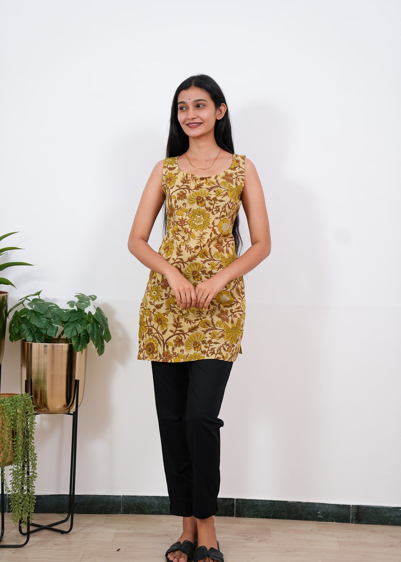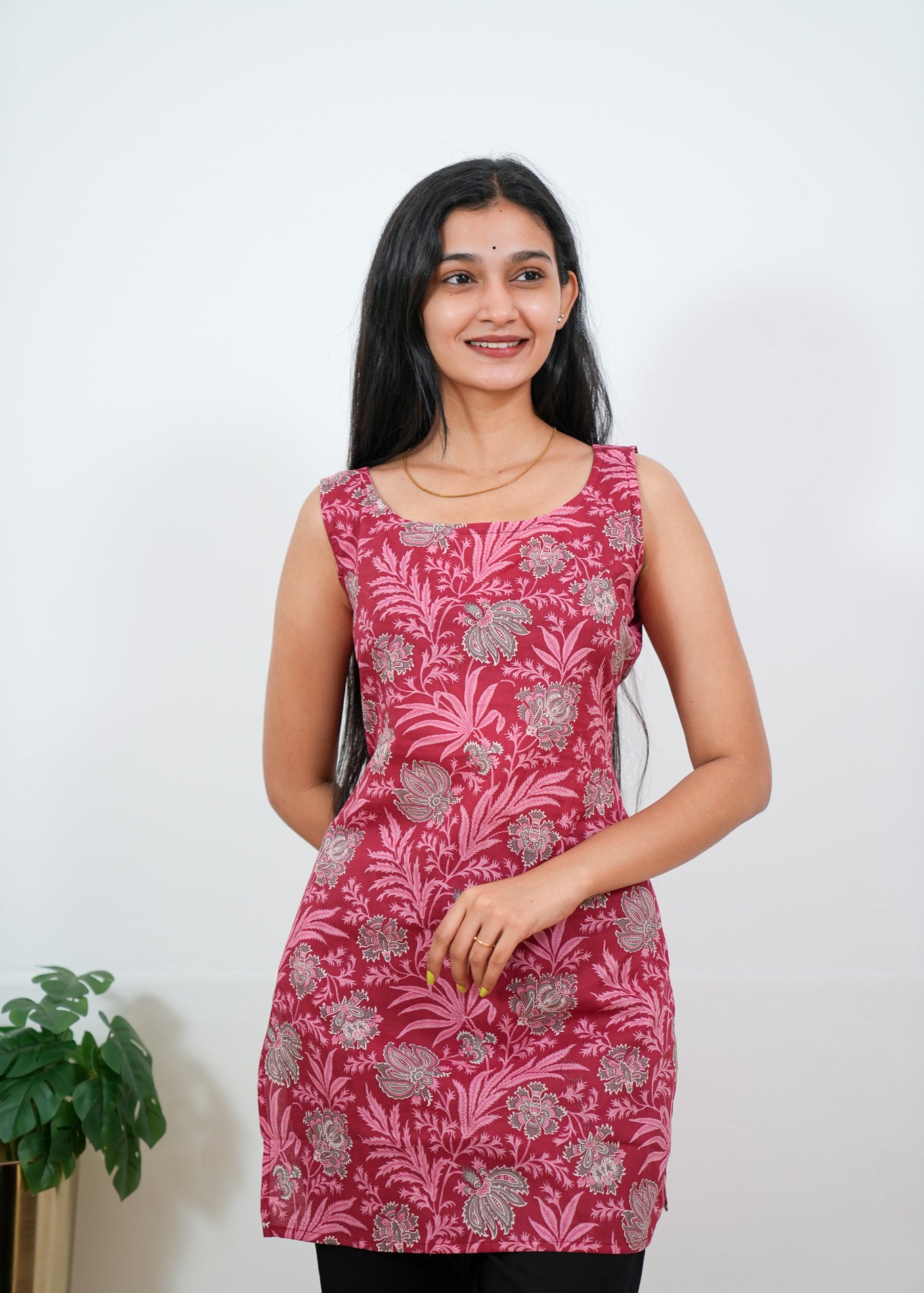 Ritu cotton tunic(attached sleeves) - Baby blue