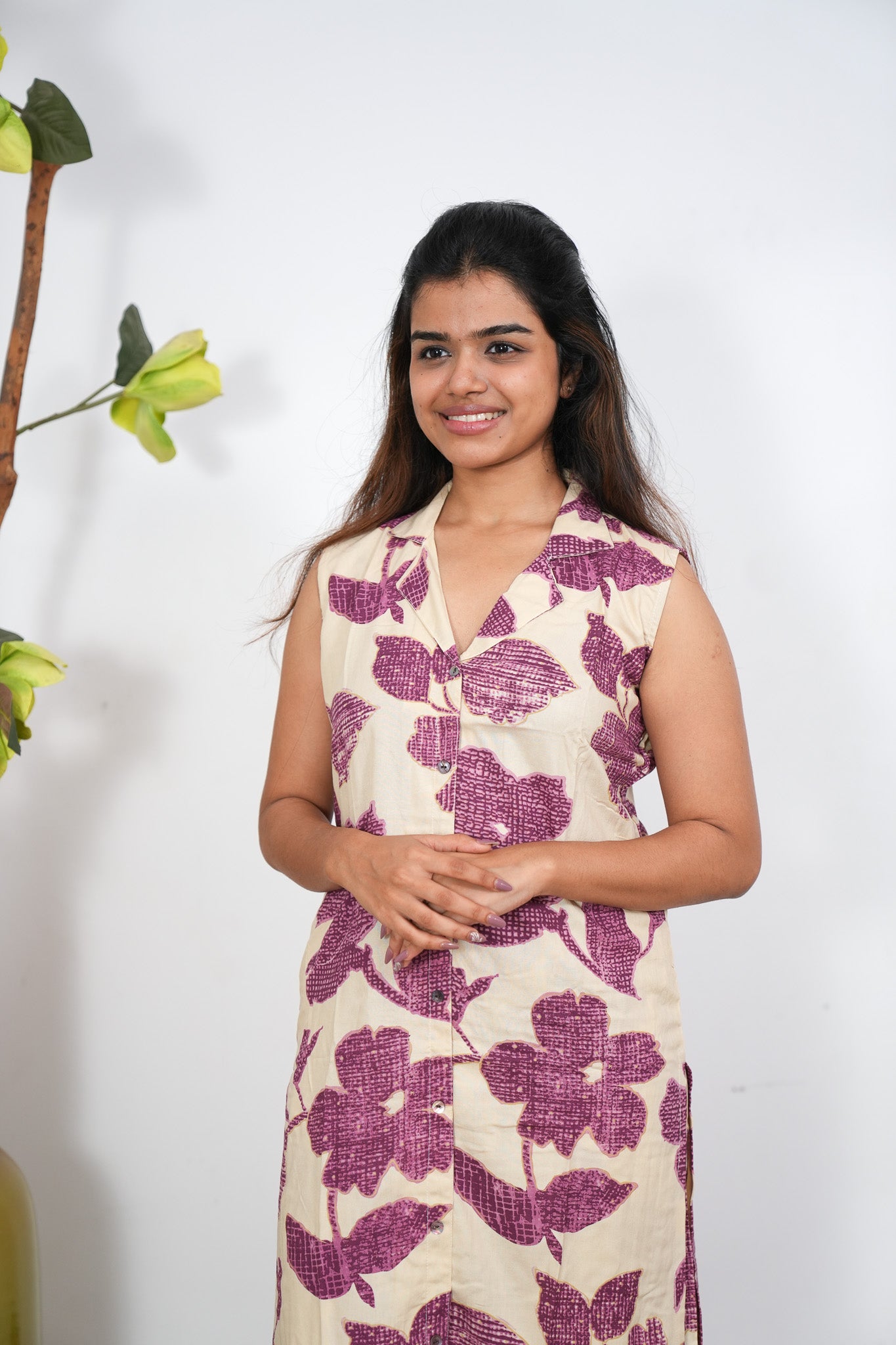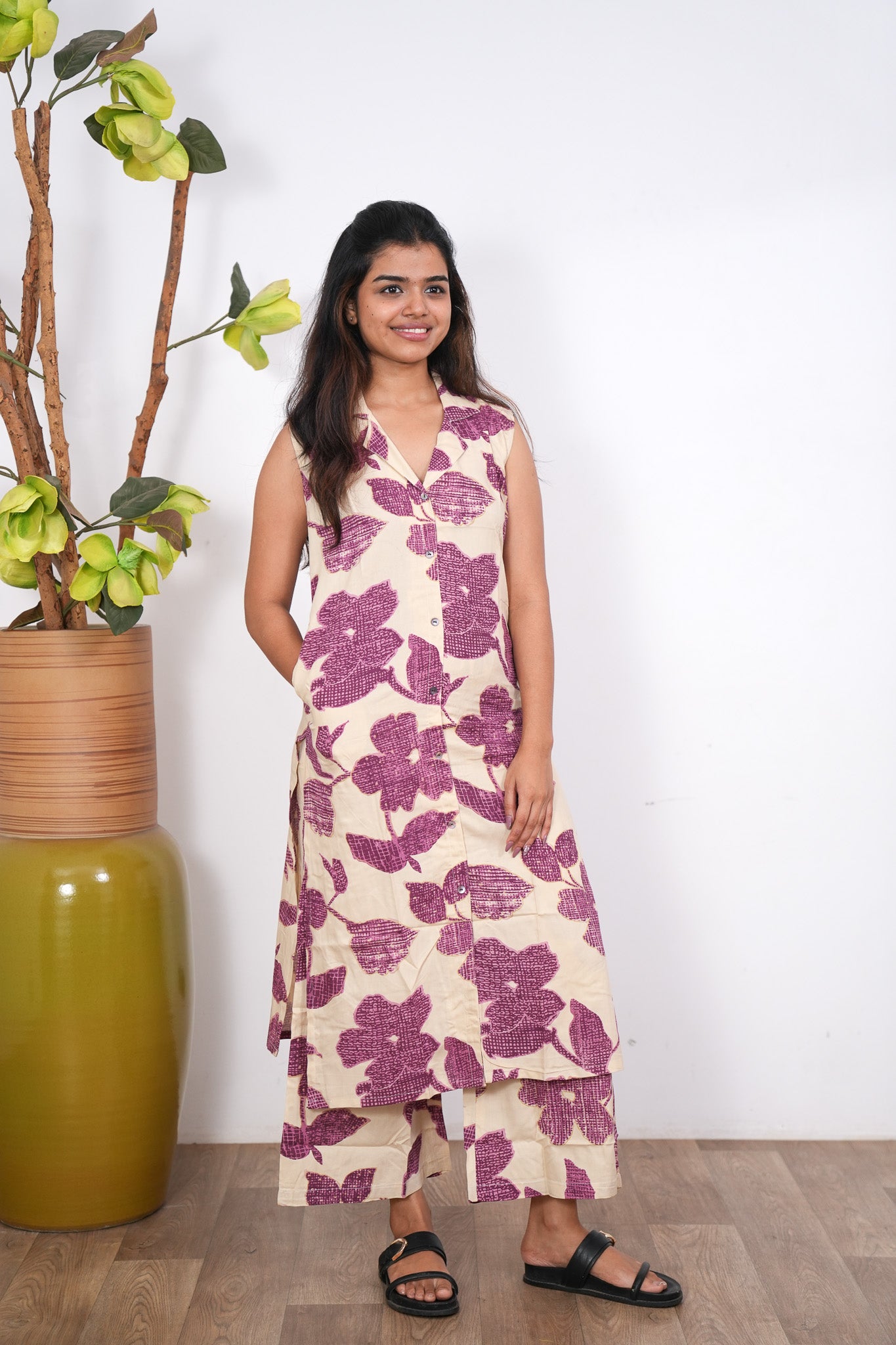Magenta floral cotton co-ords set (attached sleeves)