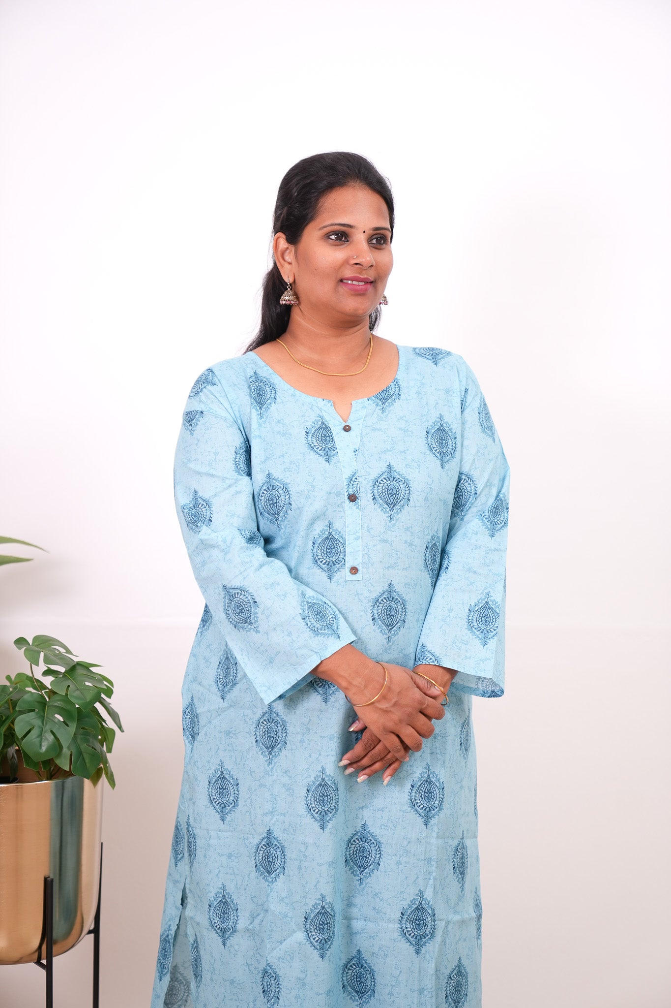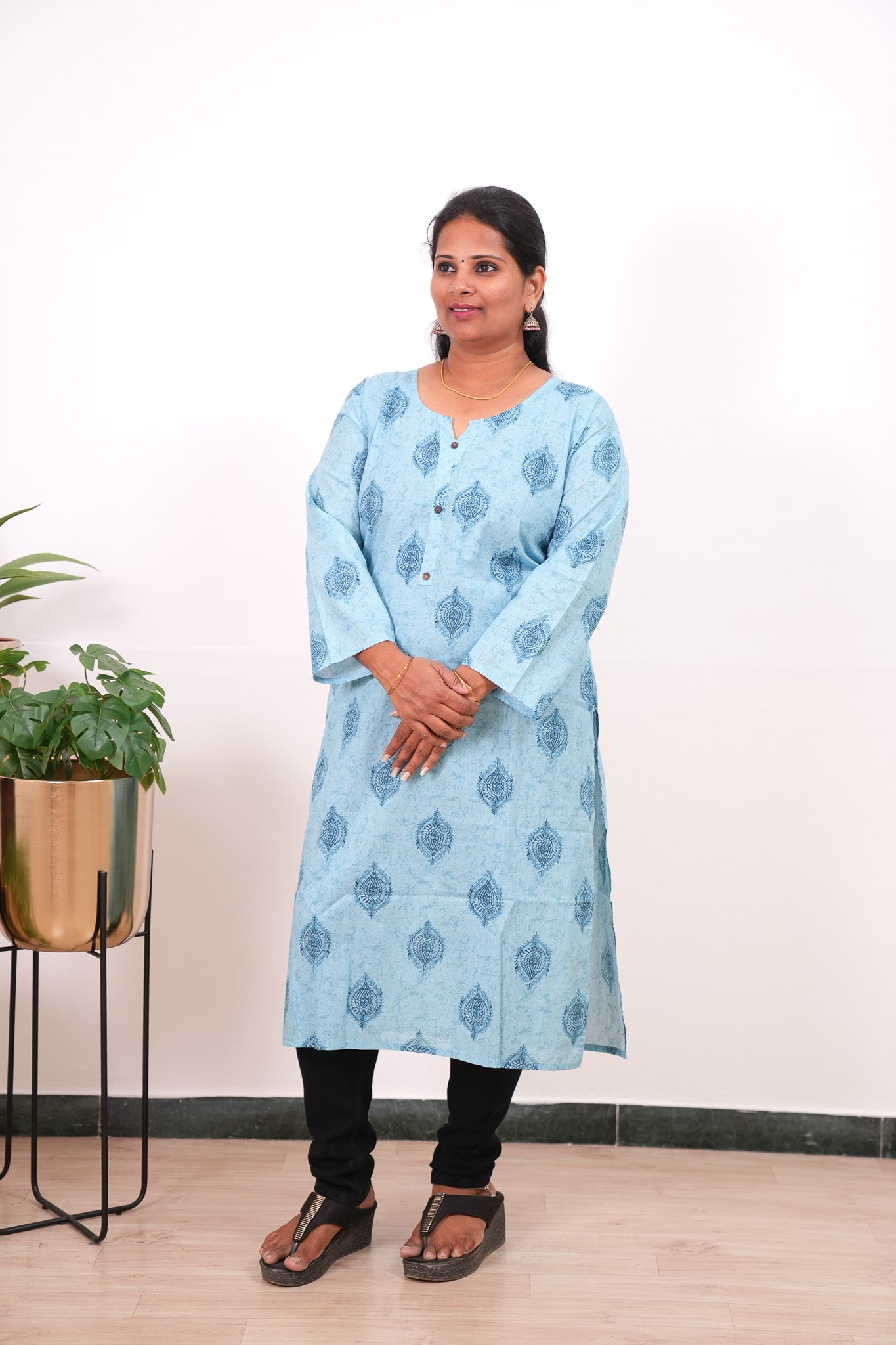 The kurti comes with a floral print all over the kurti with vibrant colour mixtures. It comes with round neck with elbow length sleeves. It can be paired with cotton pants or jeans to pull of that comfortable look!!