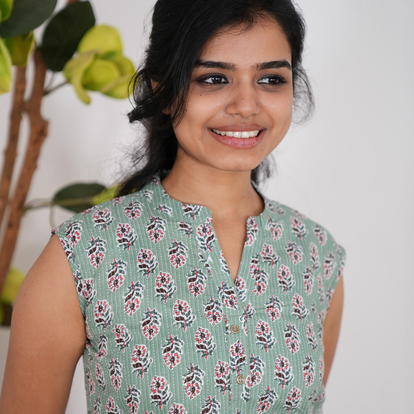 These kurtis are so cozy, comfortable and chic making it perfect for brunch and a girl's day out! The kurta has a mandarin collar and has buttons in the centre.