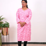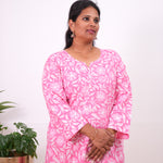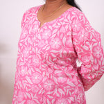 Baby pink floral plus cotton kurti