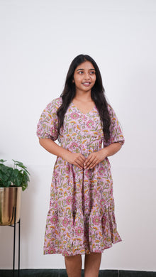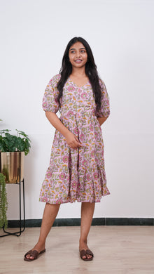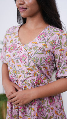 Baby pink V neck cotton dress