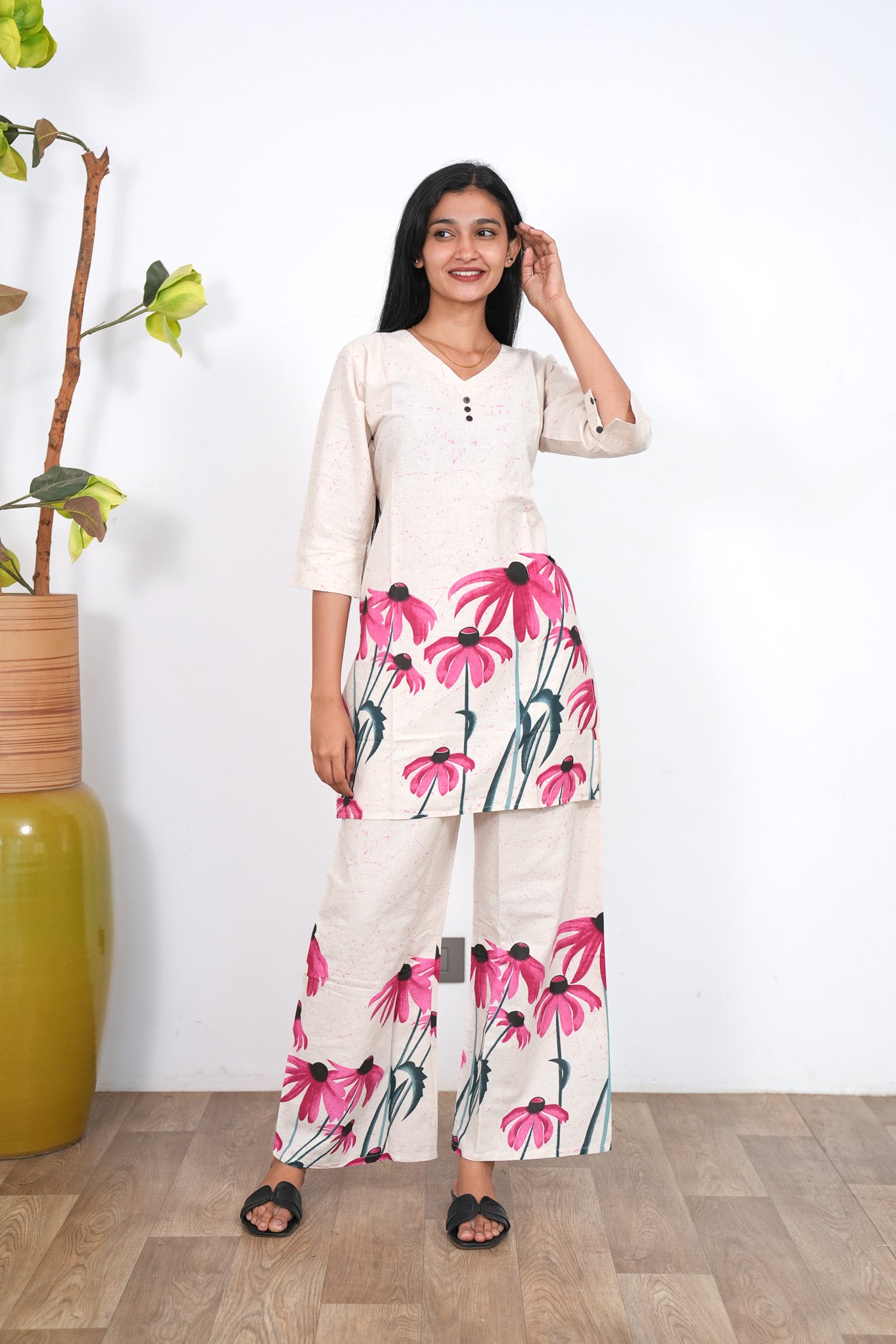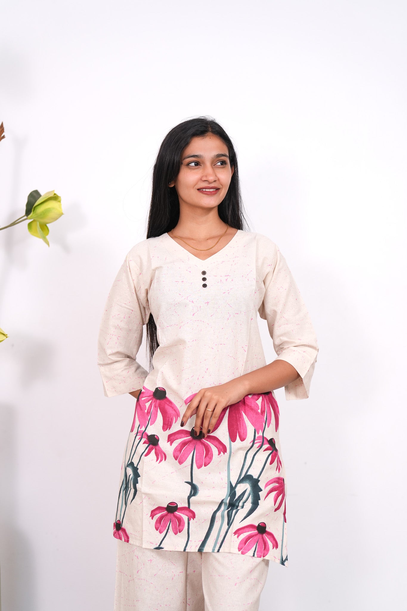 Off white cotton co-ords set which can be paired together or with jeans for a easy breezy summer outfit.