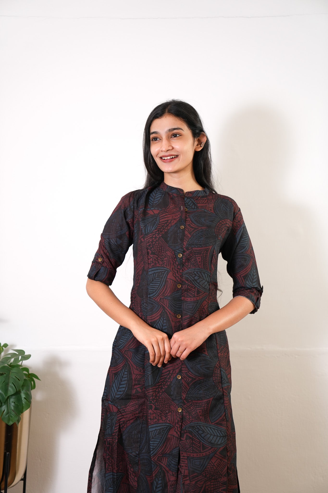 Niraa cotton angrakha kurti-Wine