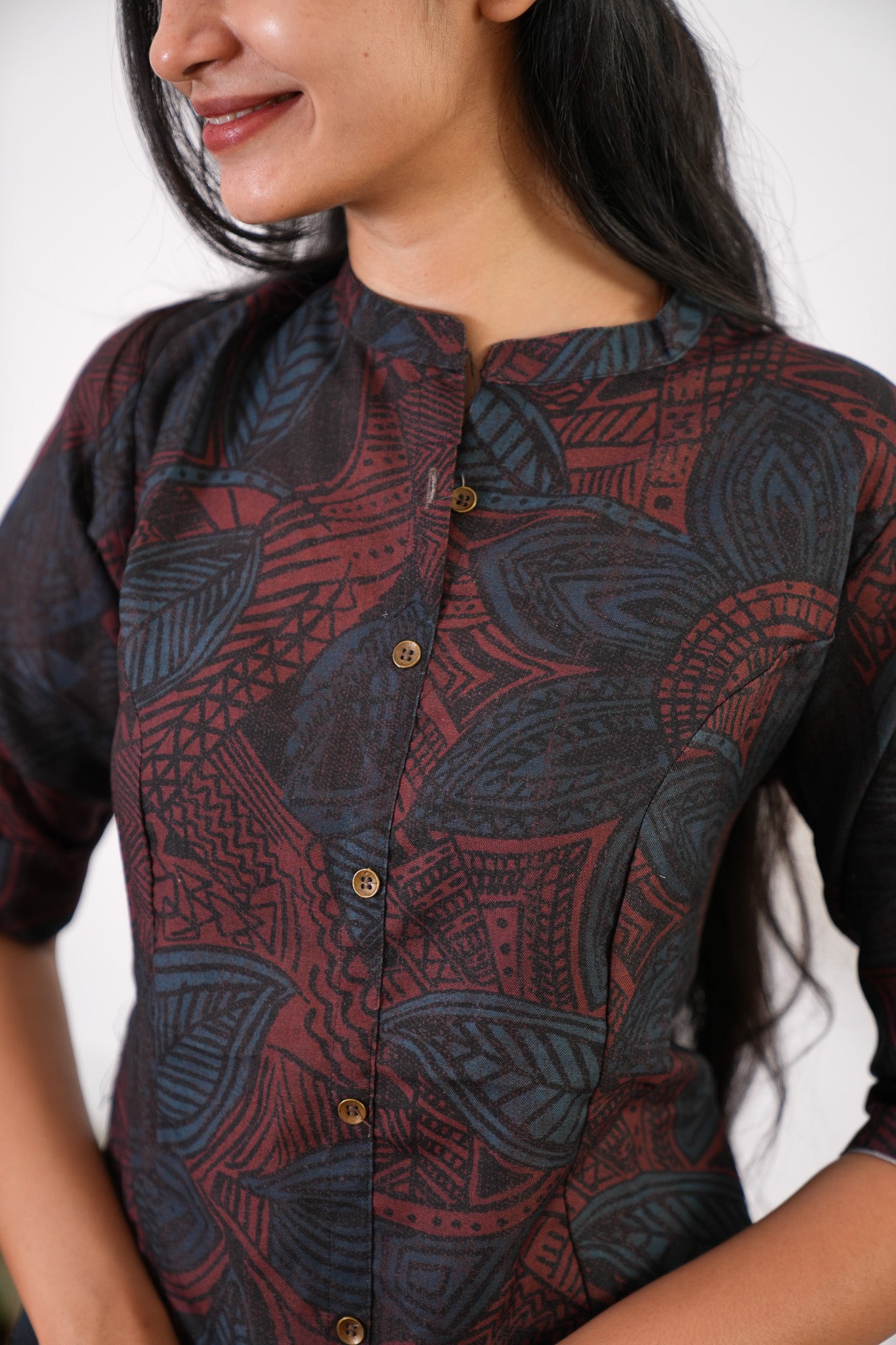 Niraa cotton angrakha kurti- Maroon