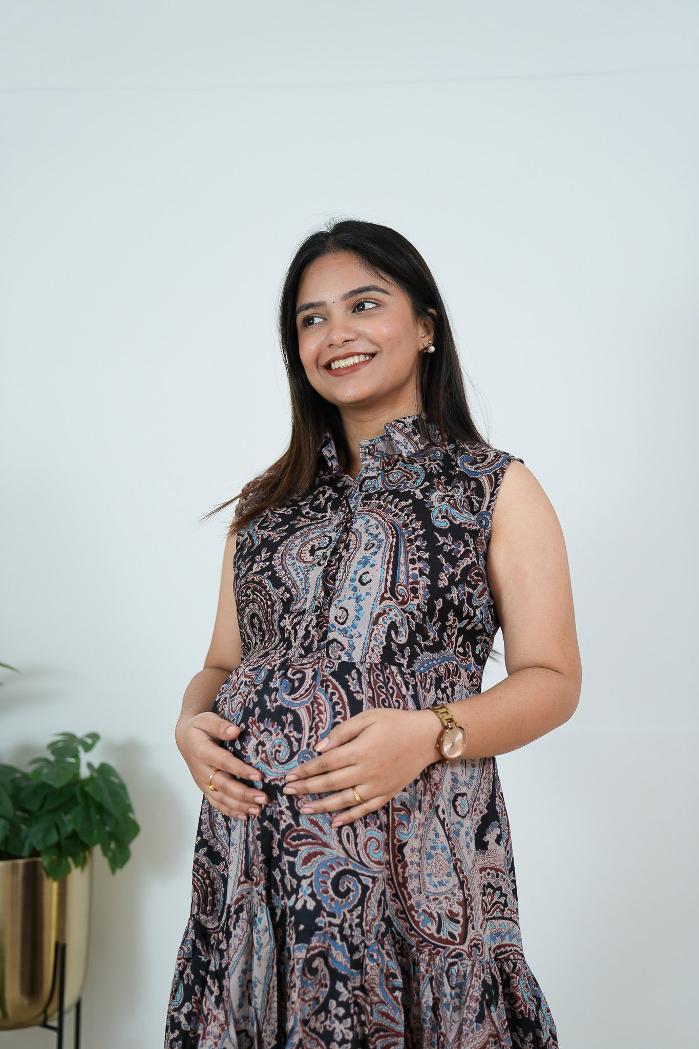 The shirt dress totally amps up your maternity style because why cant moms have all the fun!! It comes with a chic collar with openable buttons for the ease of nursing. There is a flare from waist onwards to fit your bump. It comes with pockets.