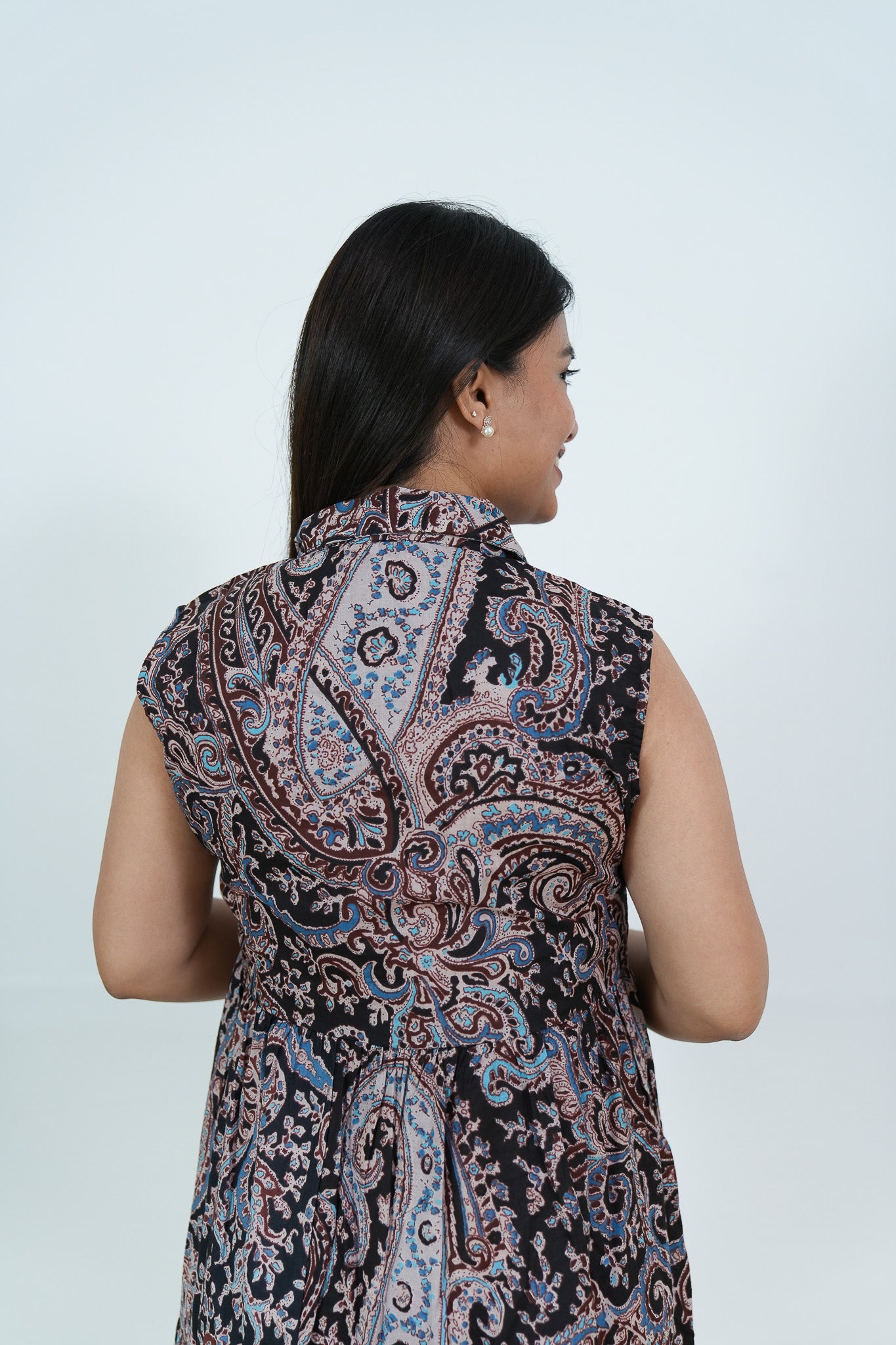 Black paisley cotton maternity nursing shirt dress(attached sleeves)