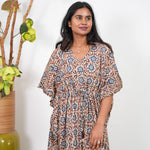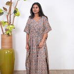 Beige hand block cotton kaftan