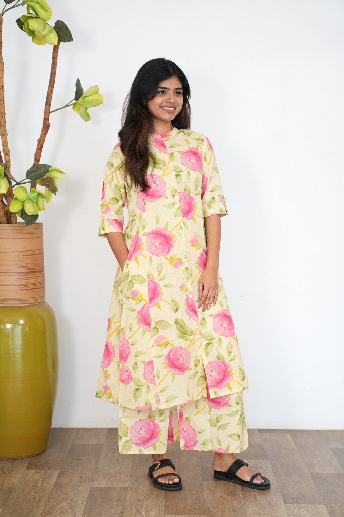 Off white cotton co-ords set which can be paired together or with jeans for a easy breezy summer outfit. It comes with matching palazzo pants.