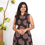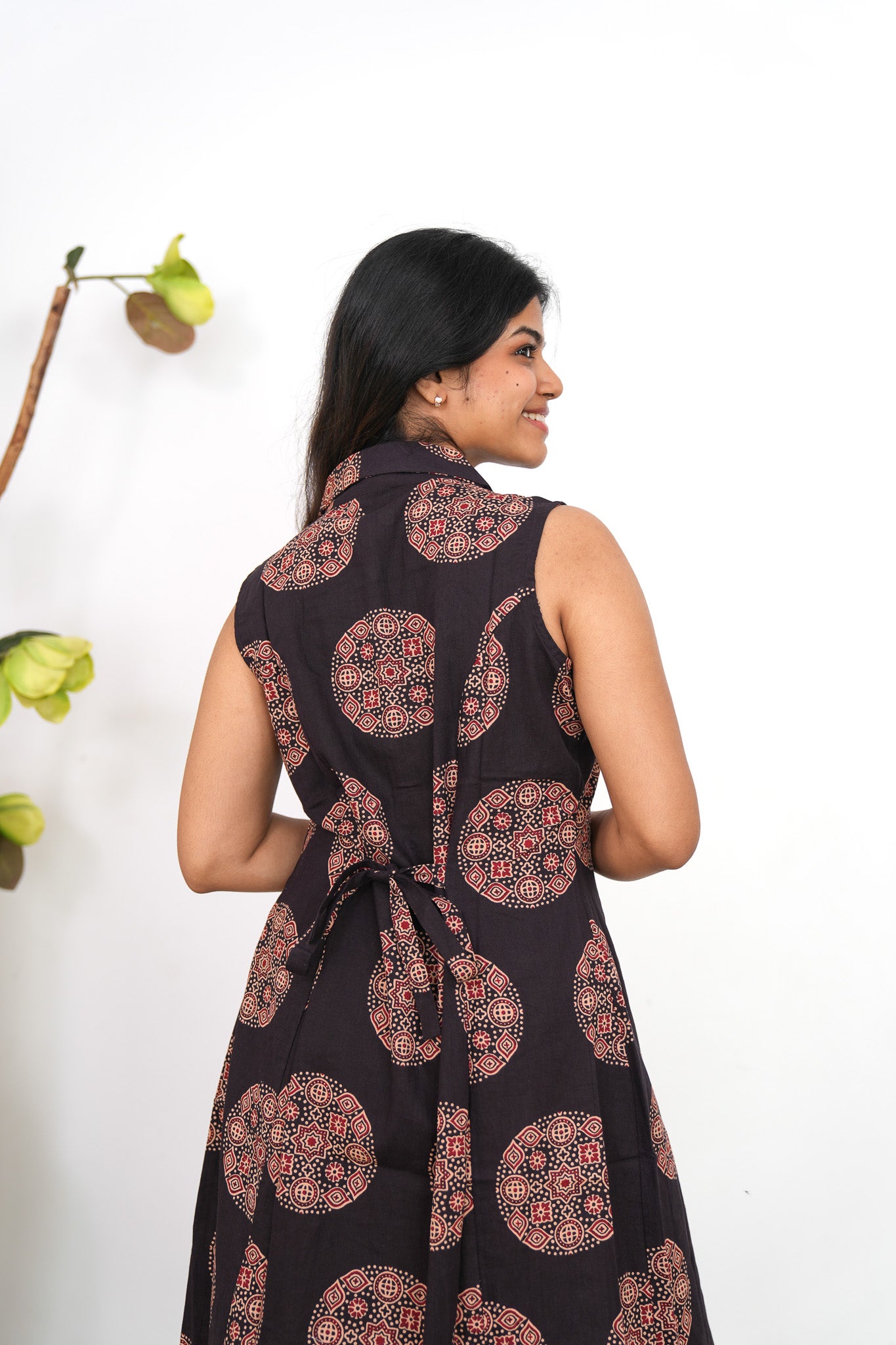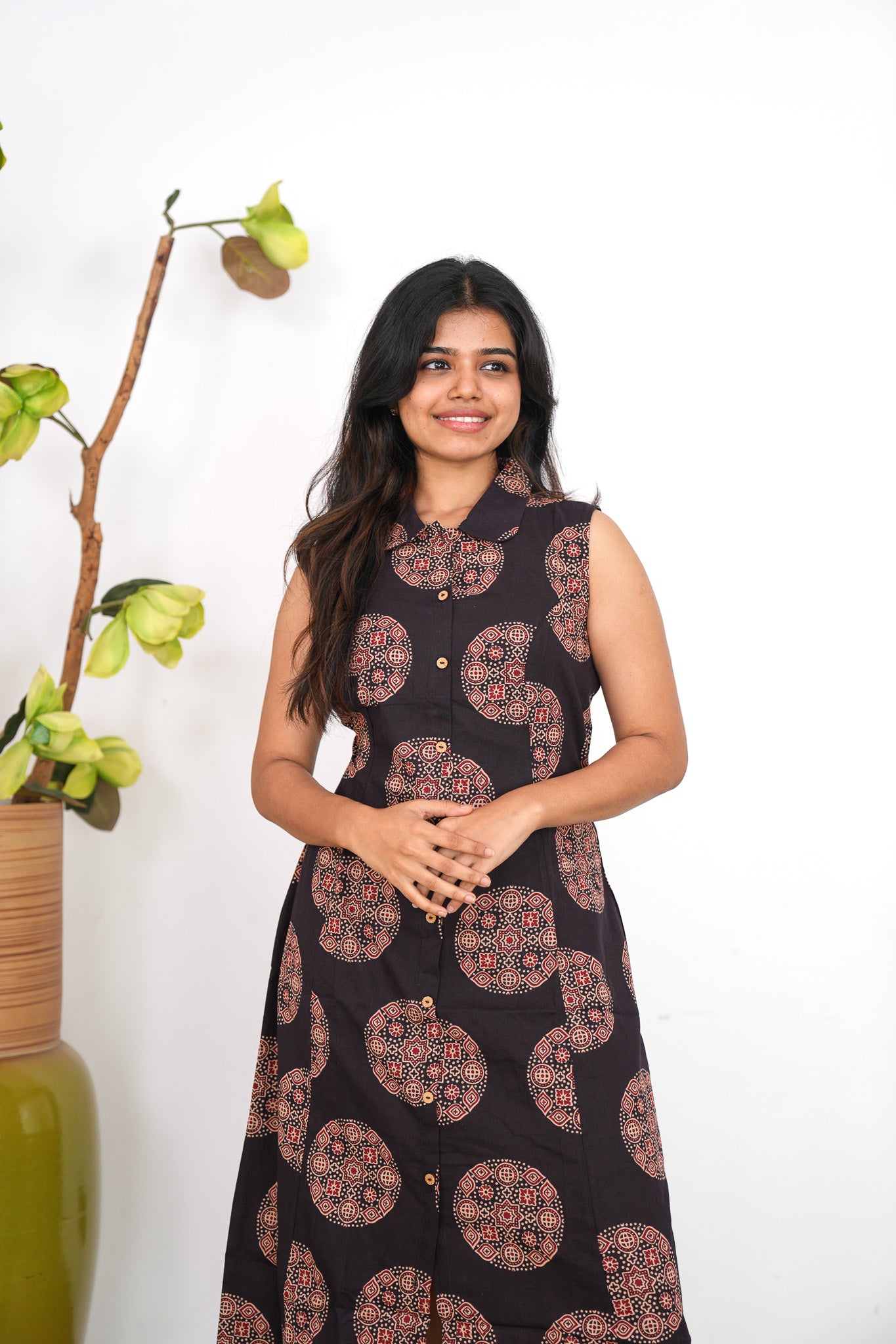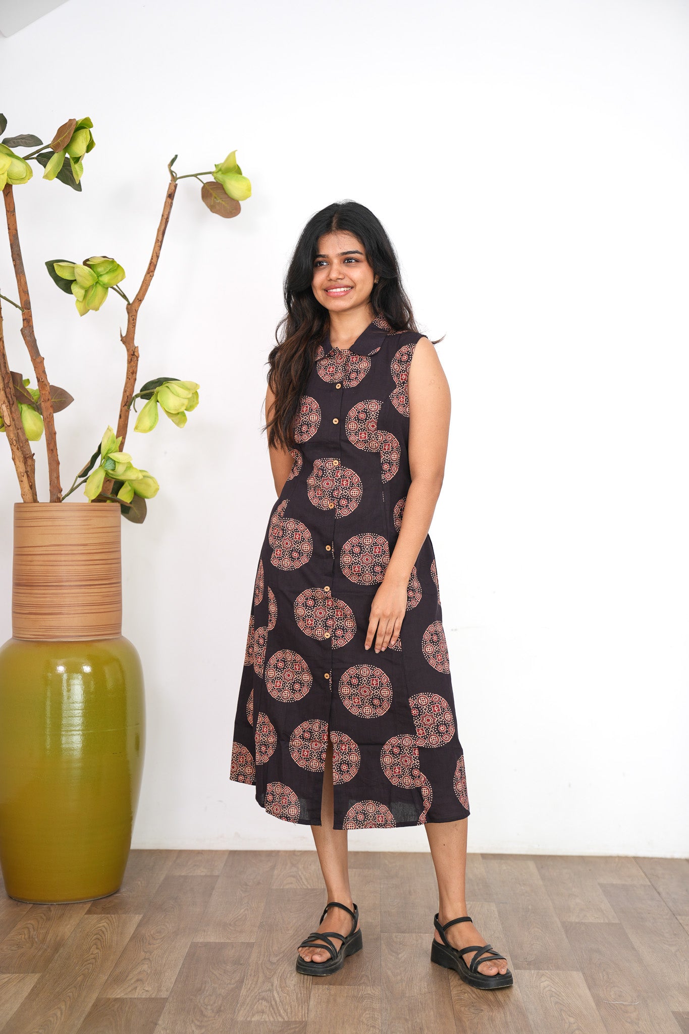 Black bloom cotton shirt dress that exudes elegance and sophistication. It has buttons running down.